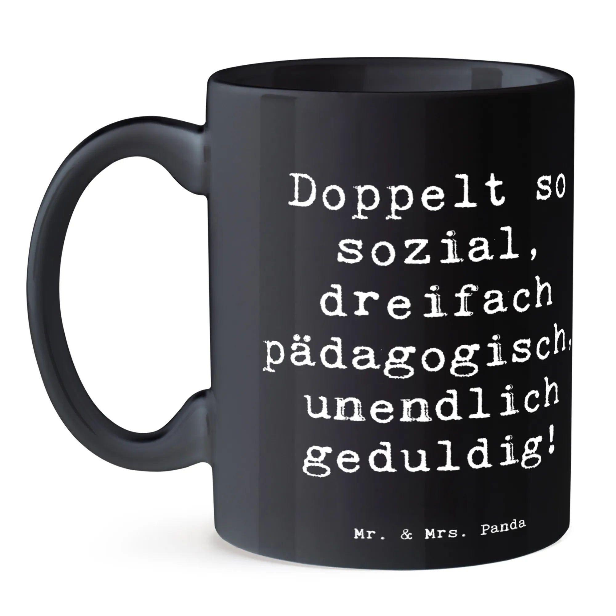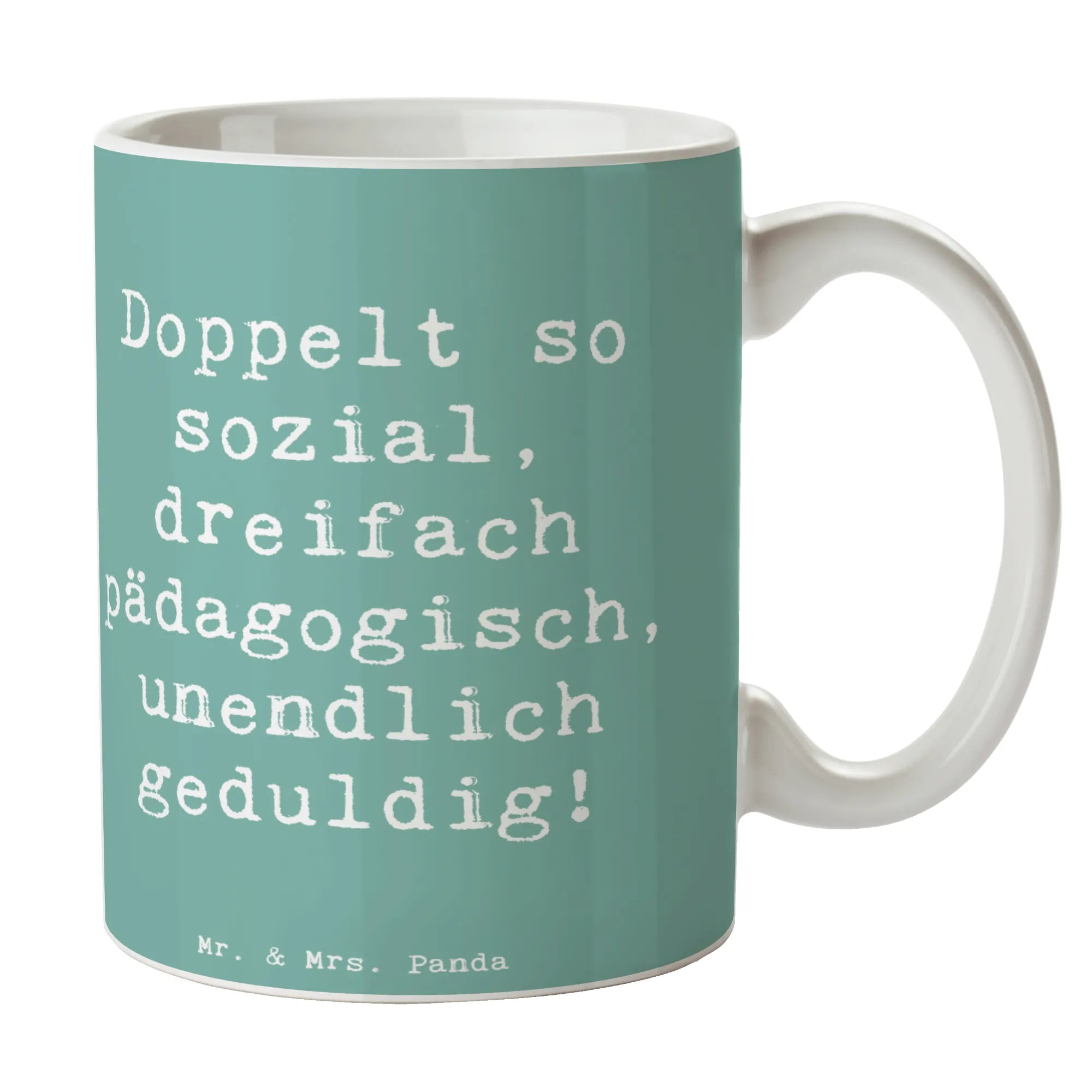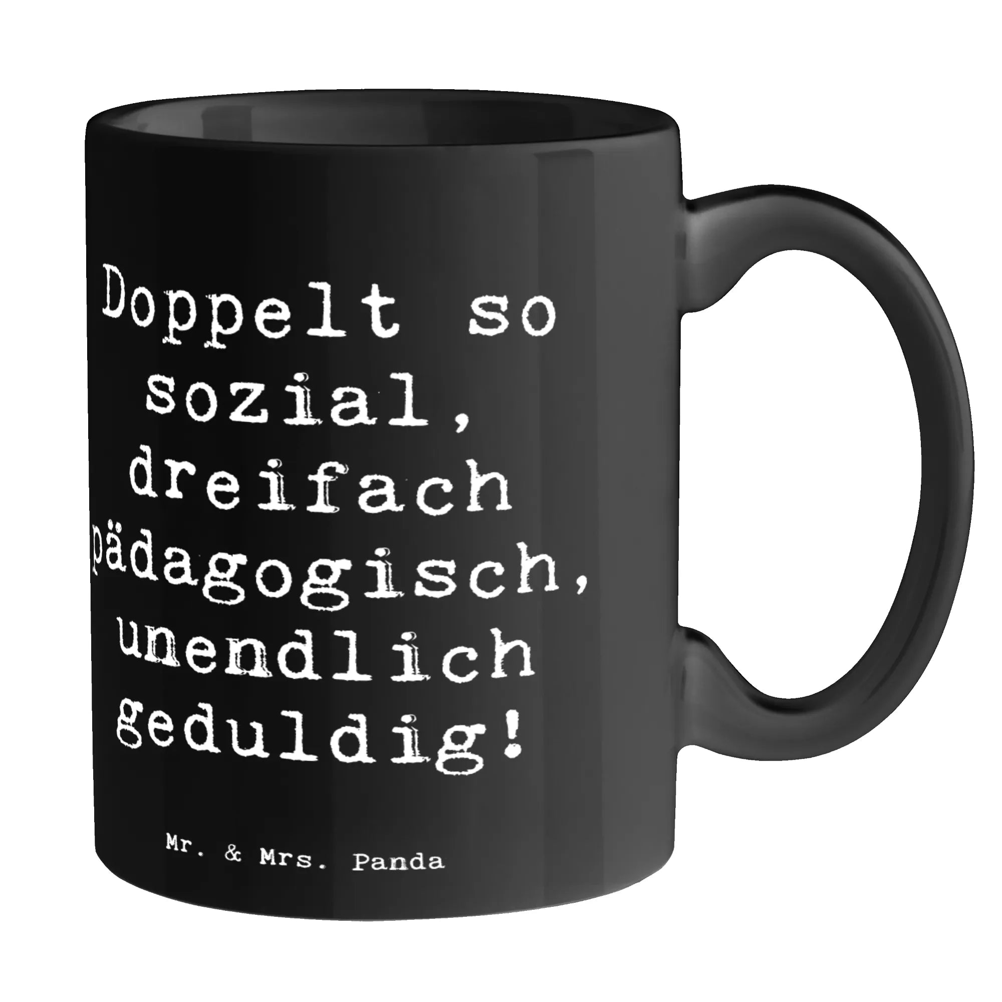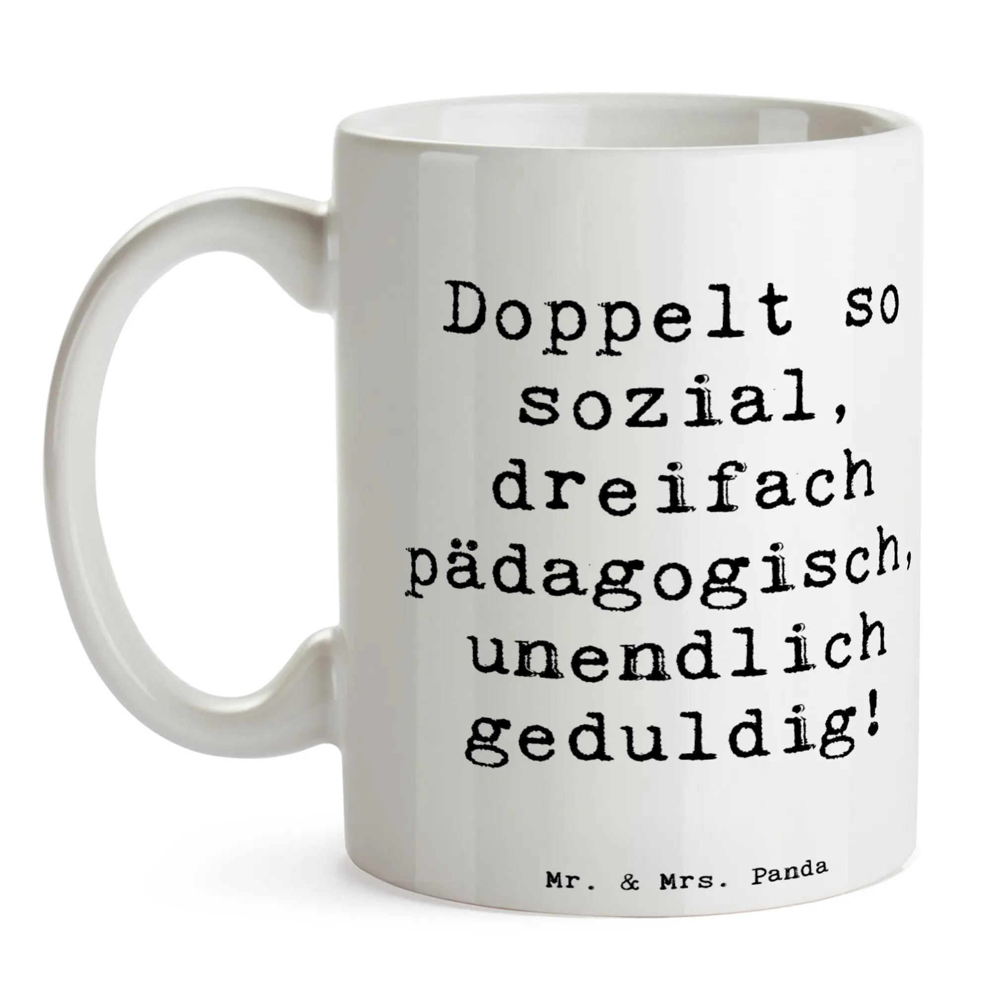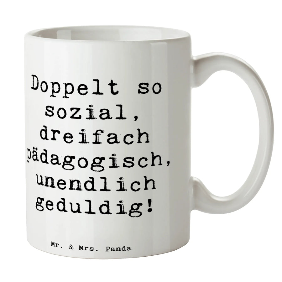 Tasse Spruch Doppelt so sozial, dreifach pädagogisch, unendlich geduldig! - Weiß