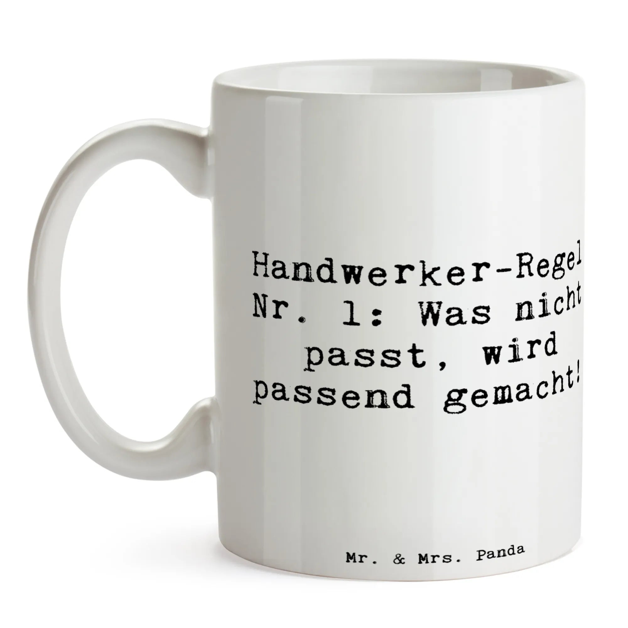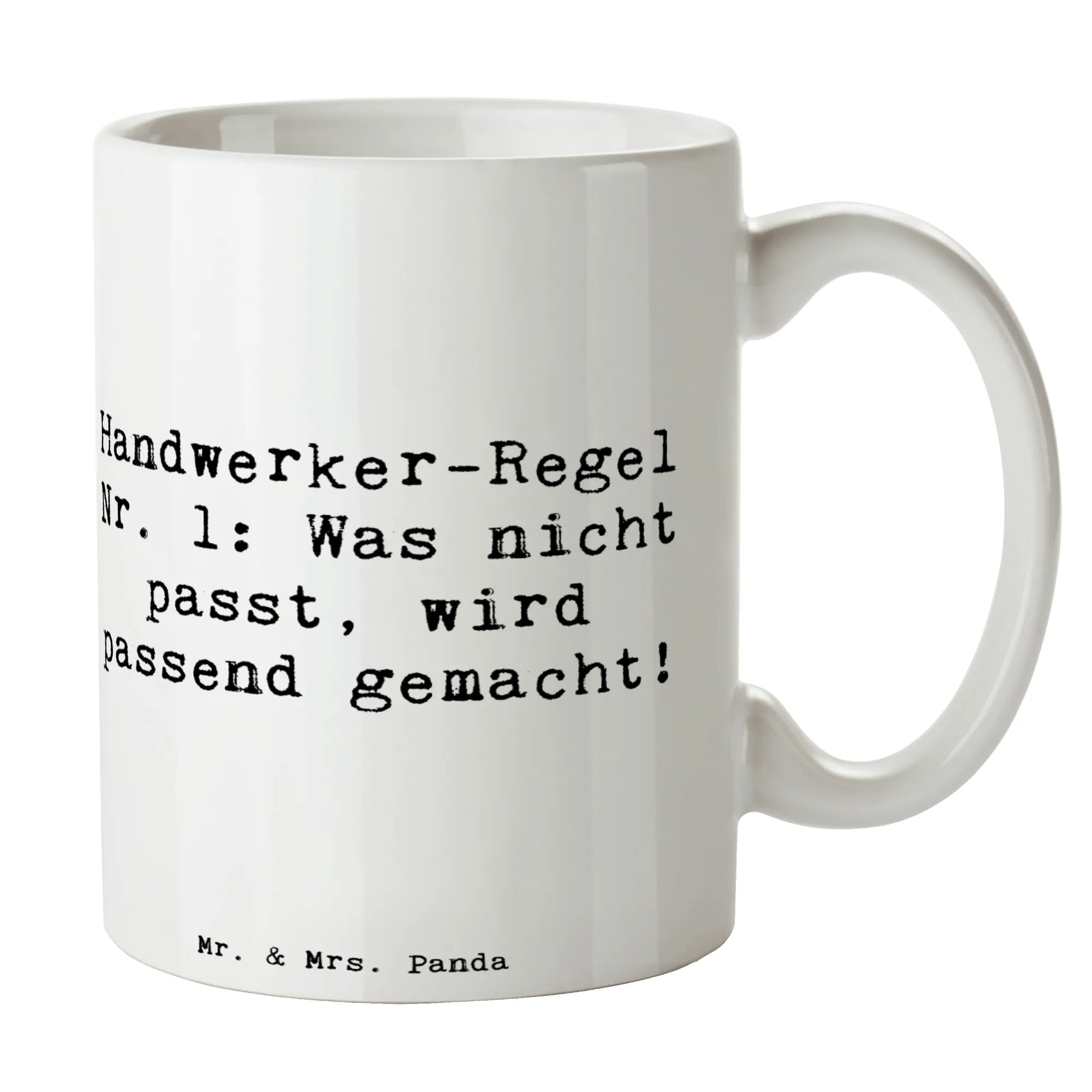 Die wunderschöne Tasse "Handwerker-Regel Nr. 1: Was nicht passt, wird passend gemacht!" von Mr. & Mrs. Panda ist der perfekte Begleiter für alle, die im Handwerk tätig sind oder eine große Leidenschaft dafür haben. Ob du sie als Geschenk für einen Handwerker-Kollegen, als kleine Aufmerksamkeit für deinen Lieblings-Handwerker oder einfach für dich selbst kaufen möchtest, diese Tasse bringt ein Lächeln in jede Kaffeepause.