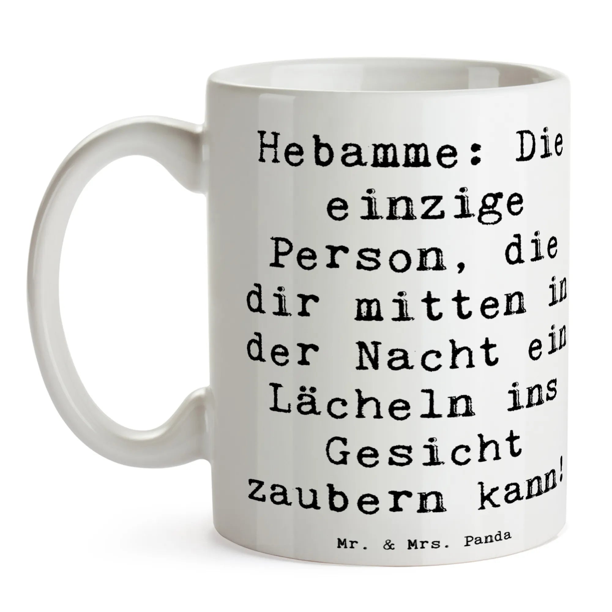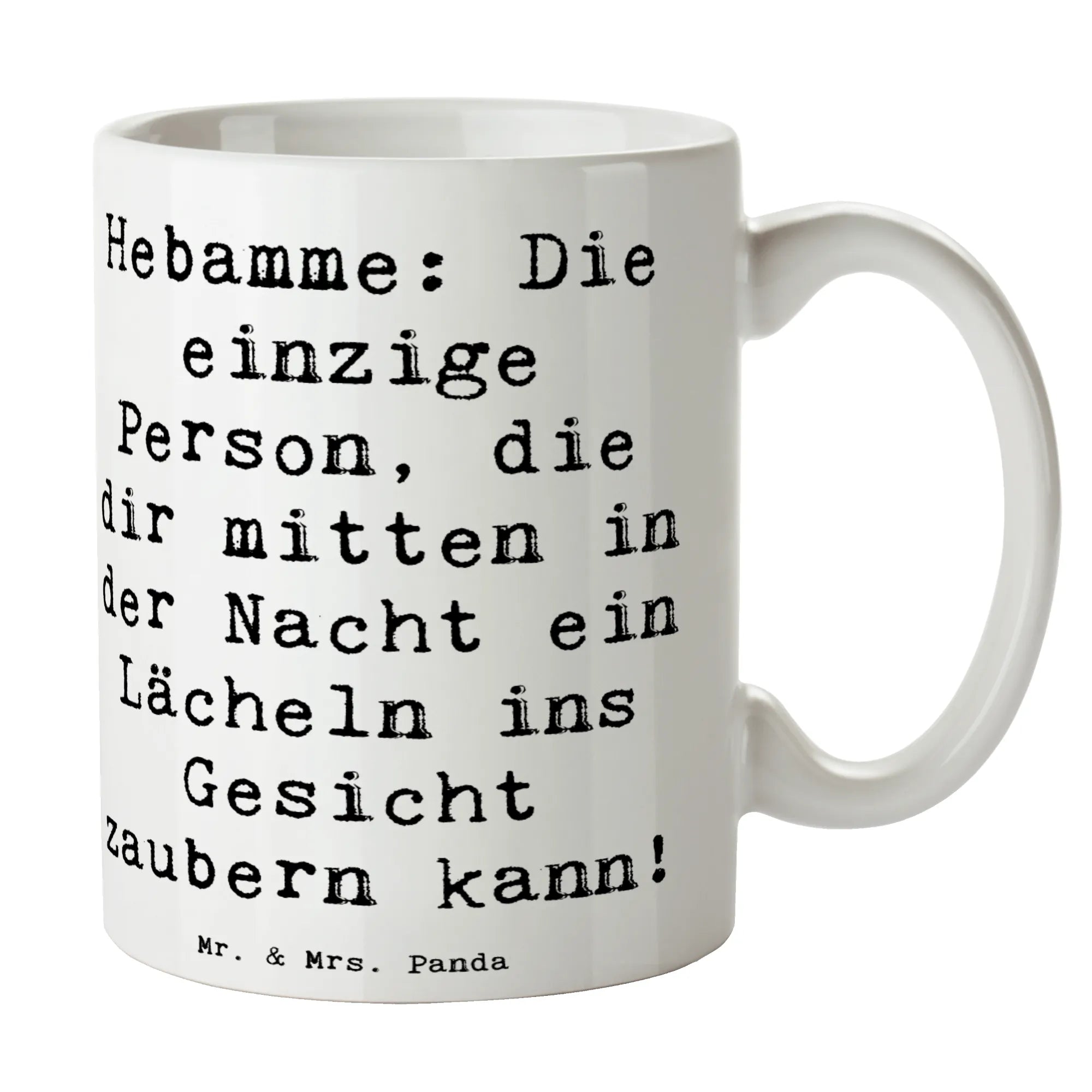 Die wunderschöne Keramiktasse "Hebamme" von Mr. & Mrs. Panda ist das perfekte Geschenk für alle Hebammen, die Tag für Tag ihr Bestes geben! Diese bezaubernde Tasse ziert der Spruch: "Hebamme: Die einzige Person, die dir mitten in der Nacht ein Lächeln ins Gesicht zaubern kann!". Jede Tasse ist mit viel Liebe zum Detail gestaltet und verleiht jedem Schluck Kaffee oder Tee einen besonderen Moment der Freude.