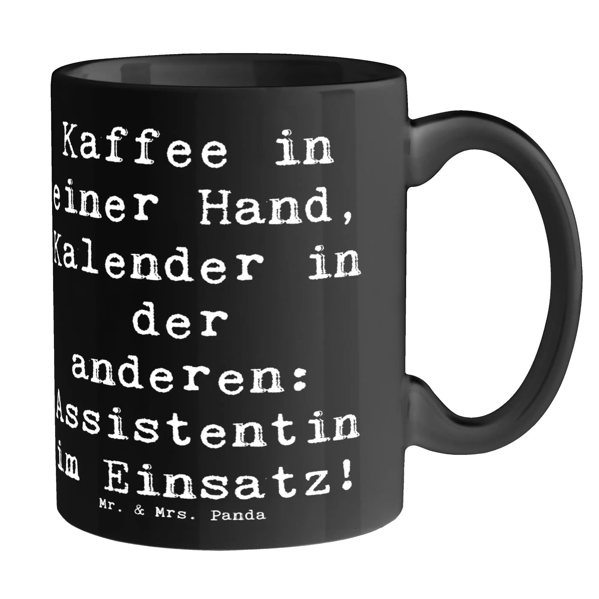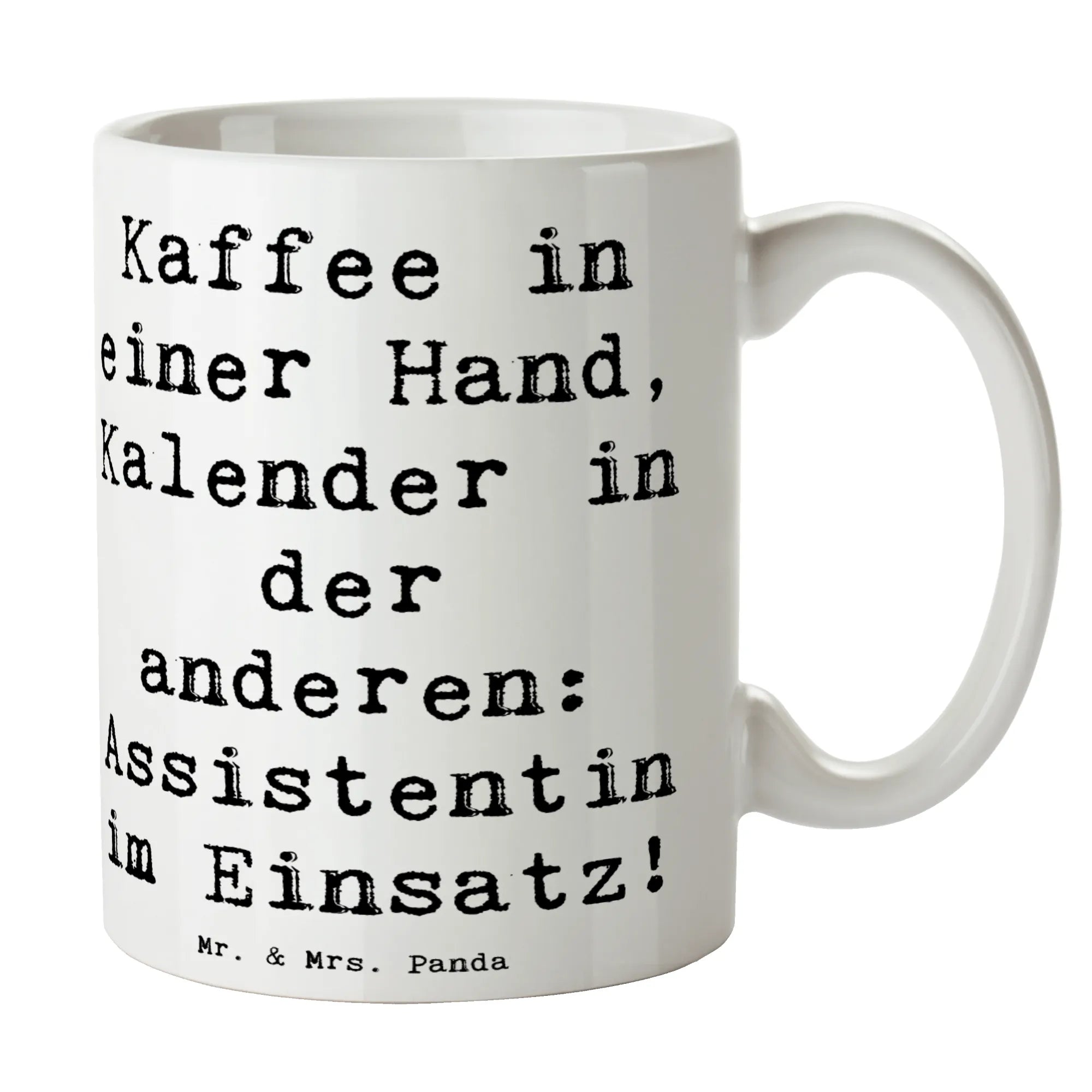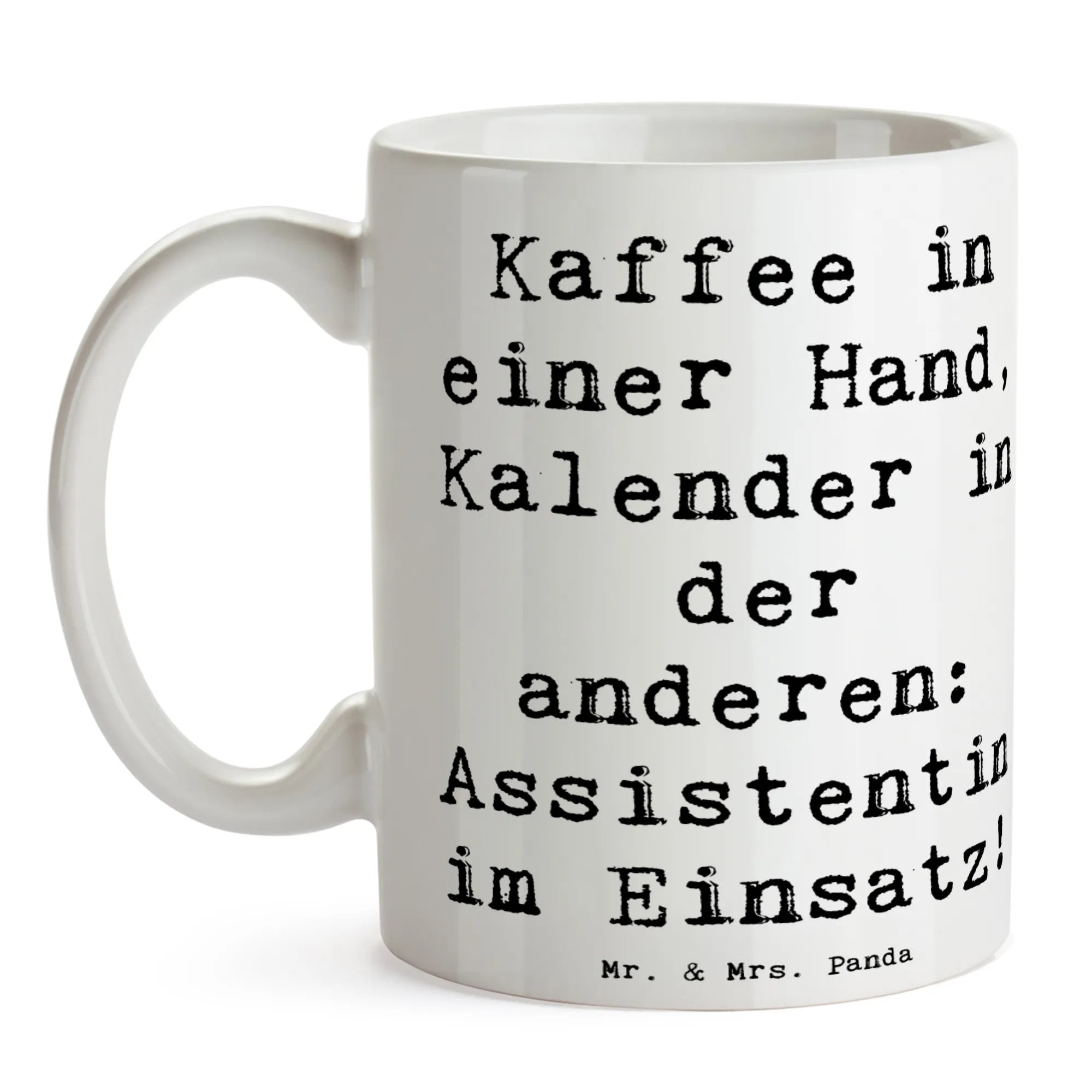 Tasse Spruch Kaffee in einer Hand, Kalender in der anderen: Assistentin im Einsatz! - Weiß