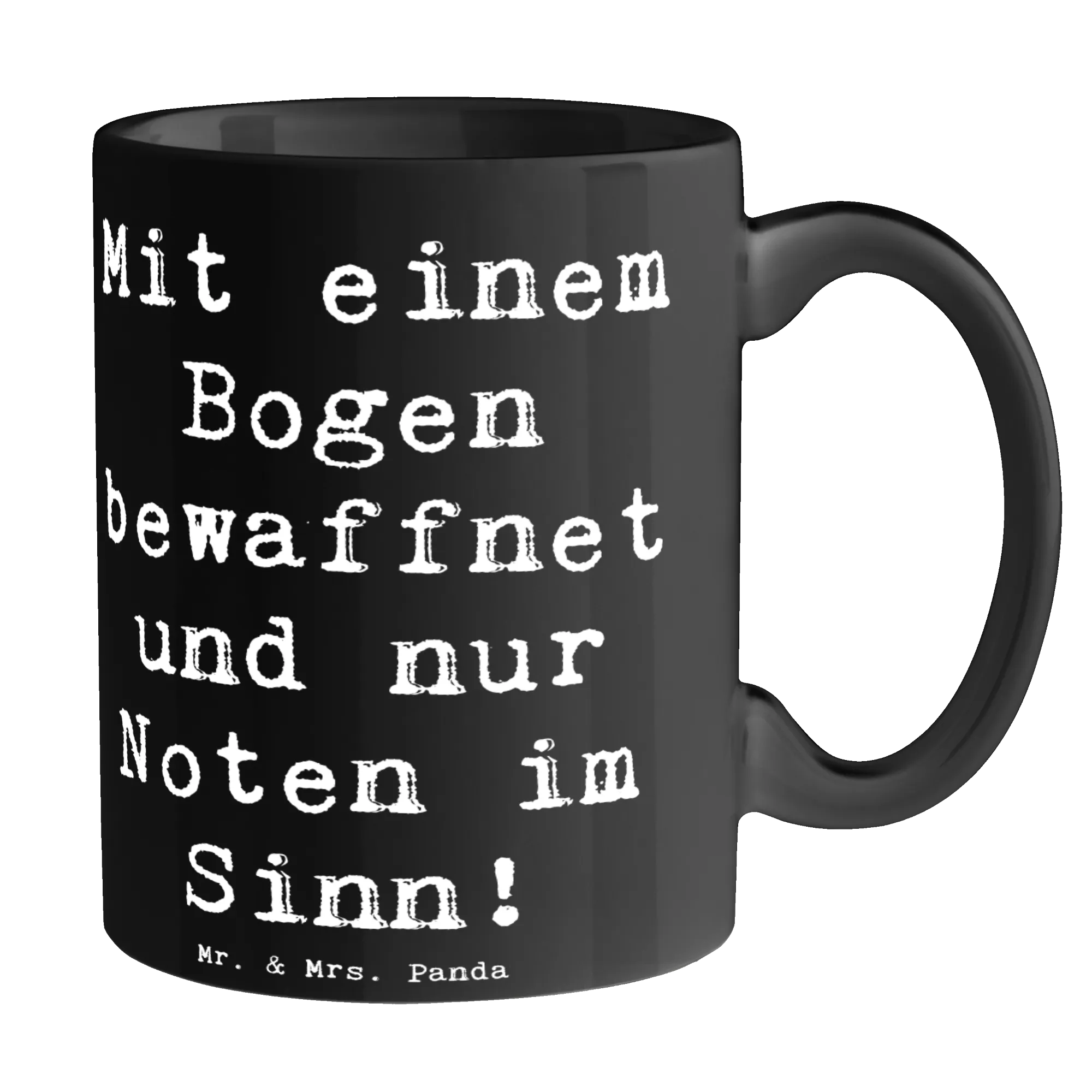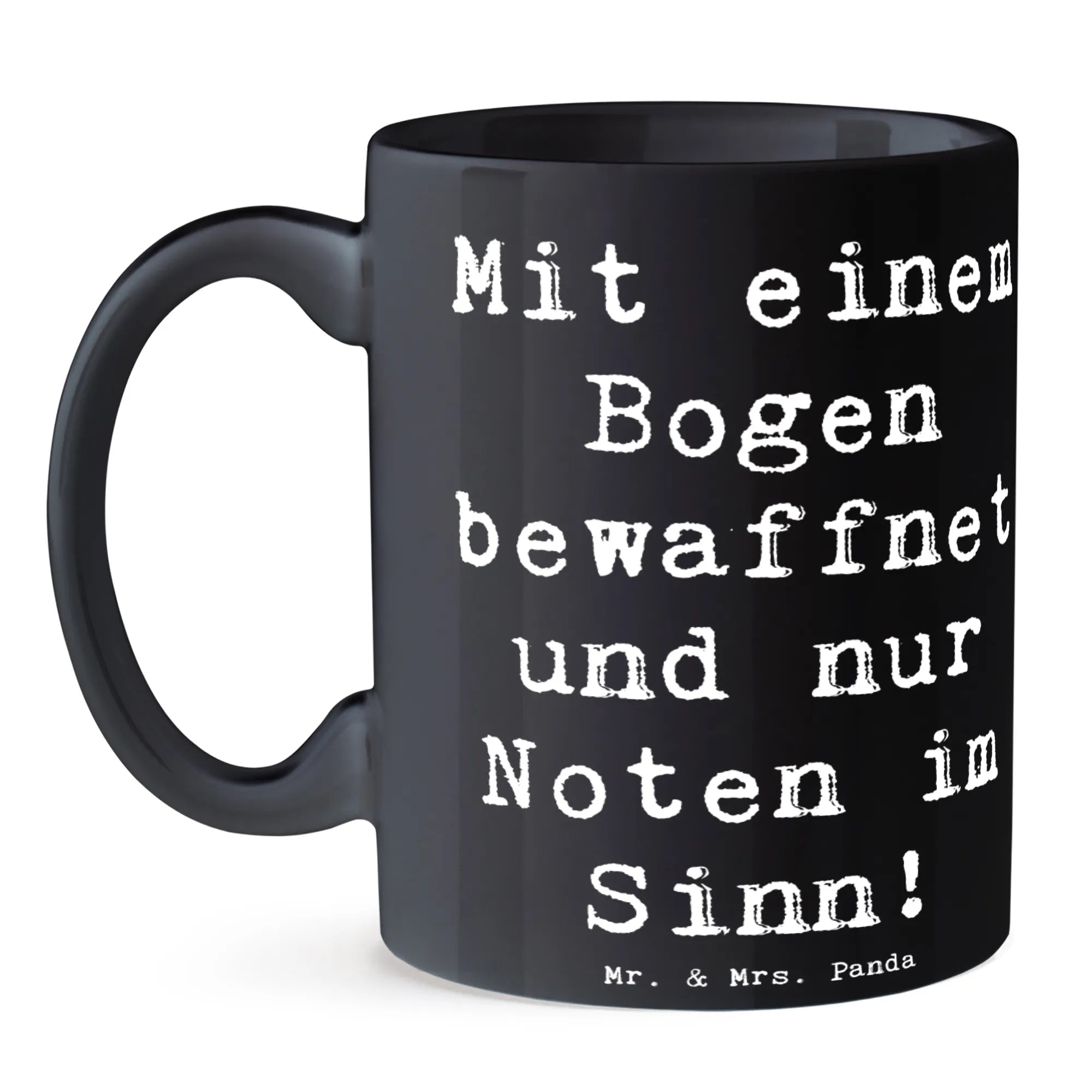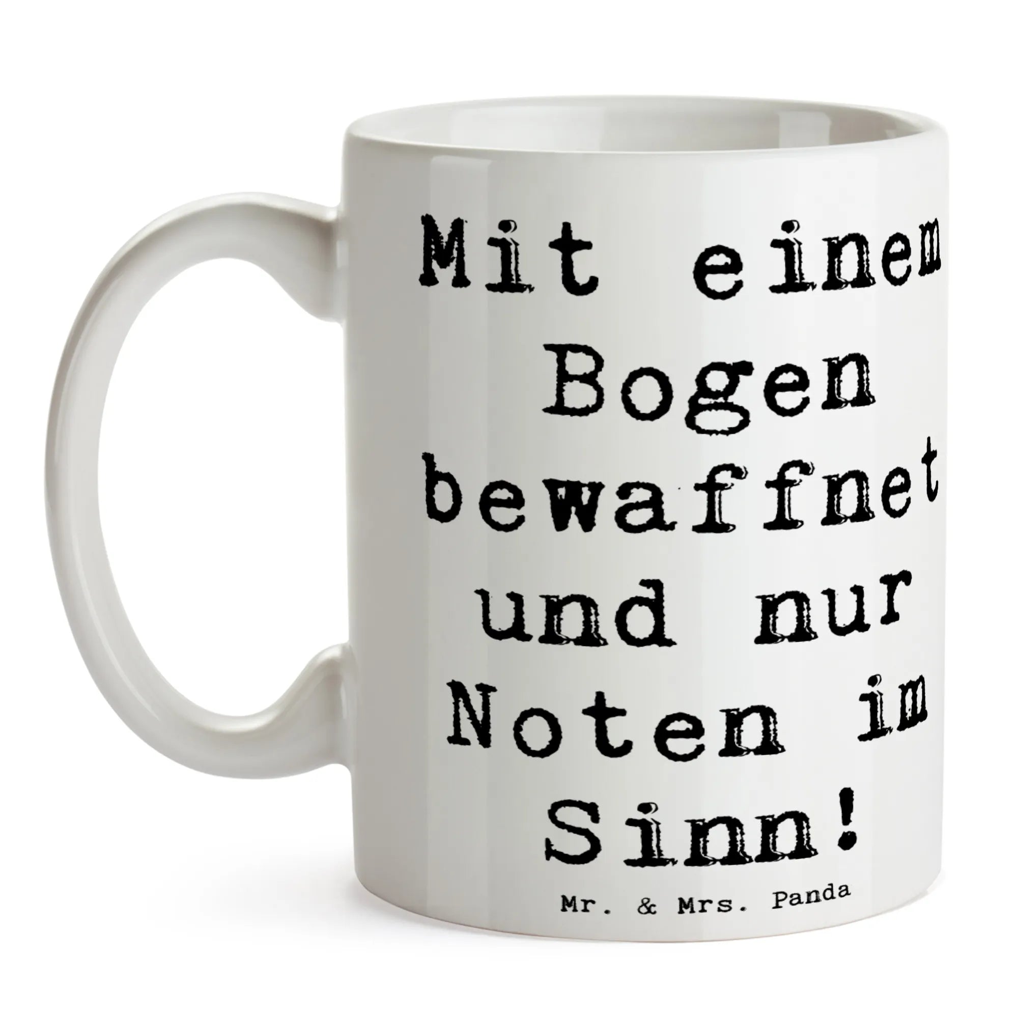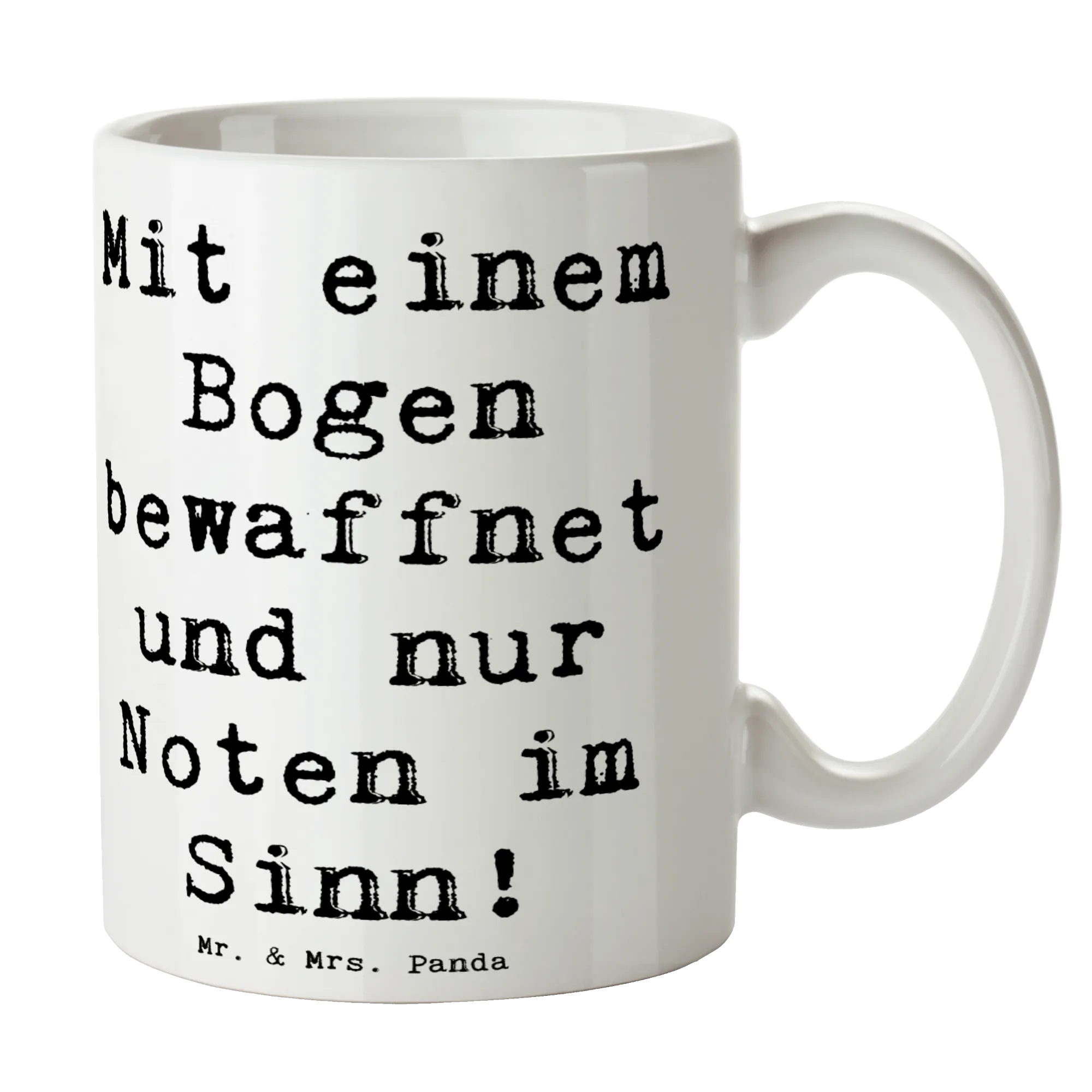 Mit ihrem einzigartigen Slogan "Mit einem Bogen bewaffnet und nur Noten im Sinn!" wird diese Tasse schnell zu einem Lieblingsstück in jeder Sammlung. Ob im Büro bei der Arbeit oder gemütlich zu Hause auf der Couch, diese Tasse ist ein echter Hingucker und erzeugt pure Freude beim Genießen deines Lieblingsgetränks. Sie ist nicht nur ein praktischer Begleiter für deinen Kaffee oder Tee, sondern auch ein wunderbares Geschenk zu Anlässen wie Geburtstagen, Weihnachten oder sogar als kleines Dankeschön für Musiklehrer und professionelle Musiker.