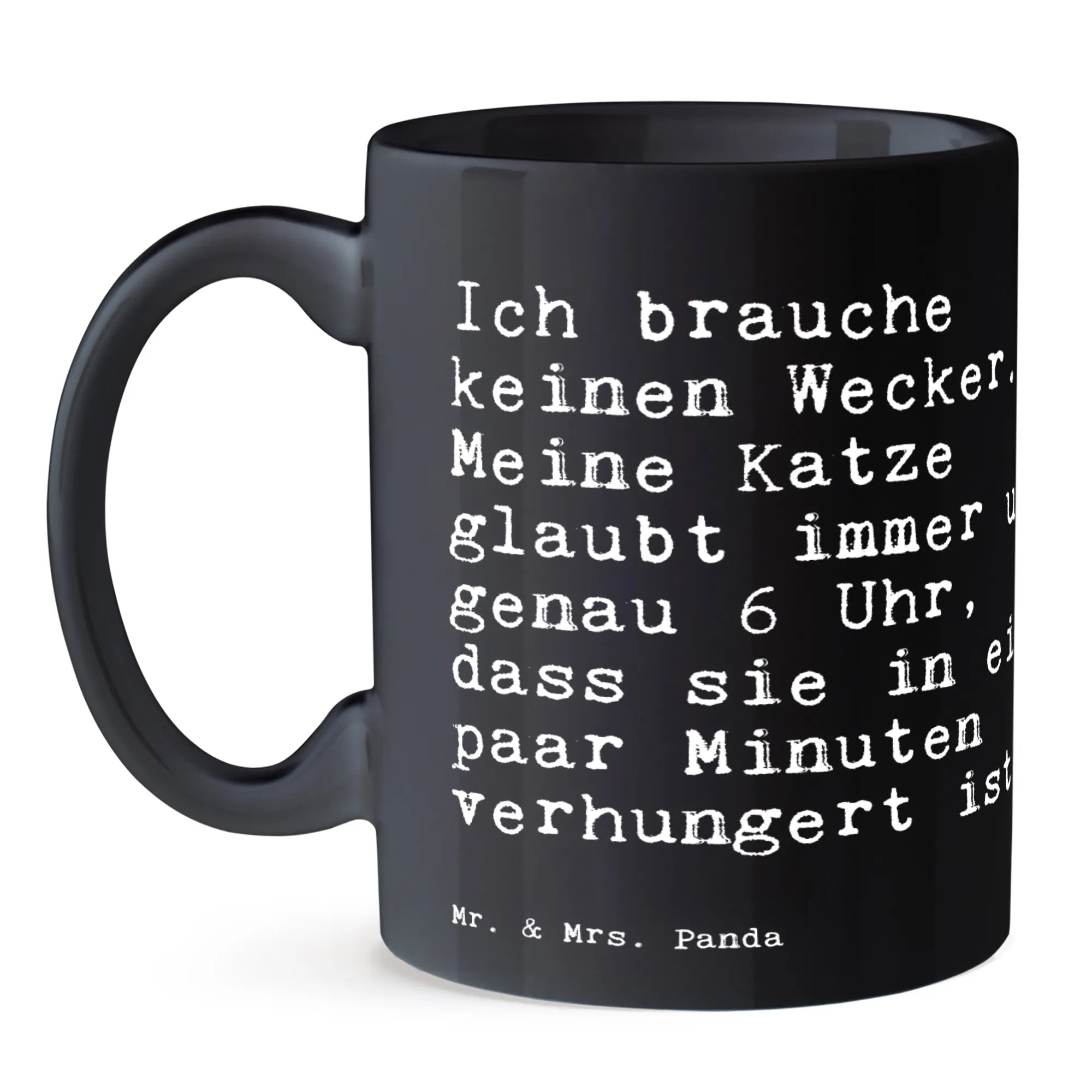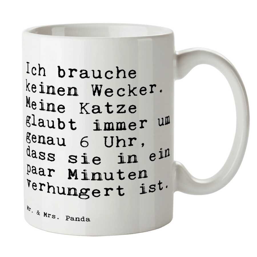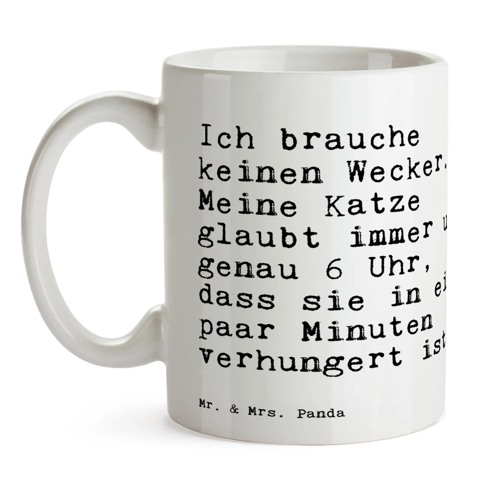 Tasse Sprüche und Zitate Ich brauche keinen Wecker. Meine Katze glaubt immer um genau 6 Uhr, dass sie in ein paar Minuten verhungert ist. - Keramik - Weiß
