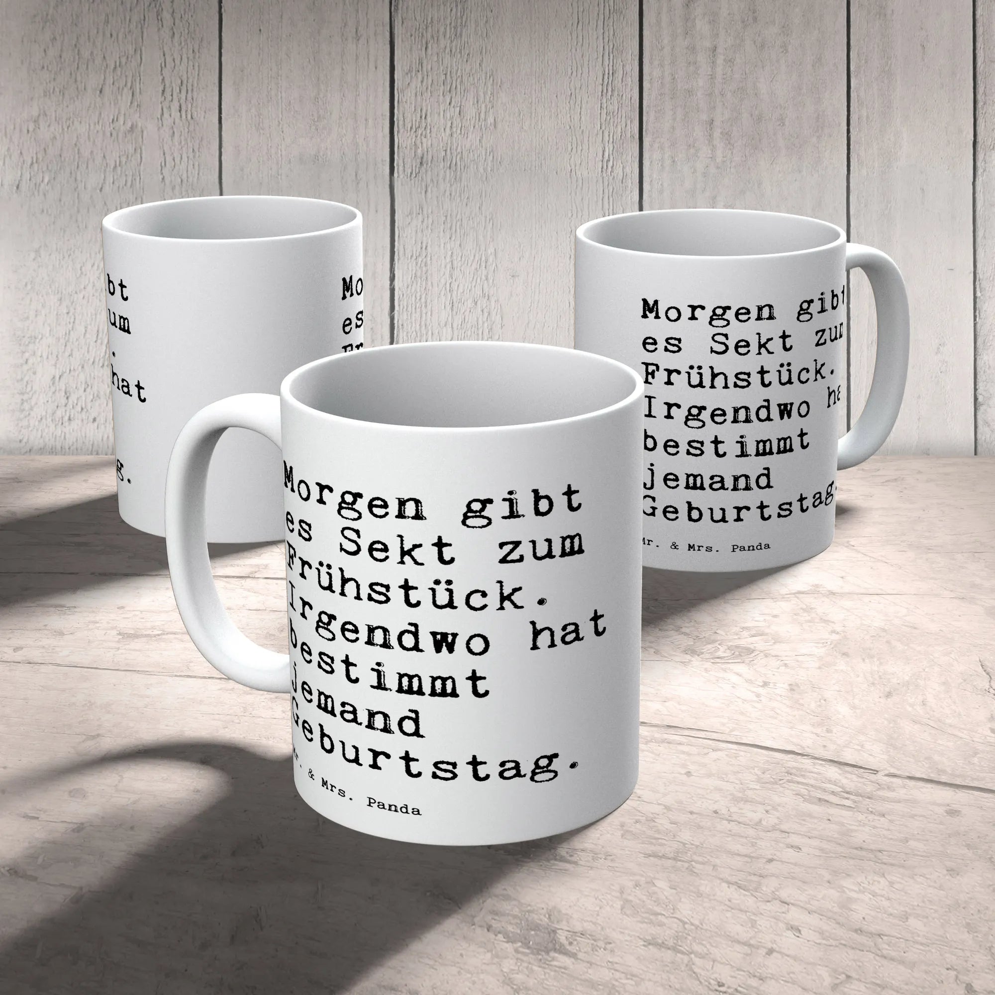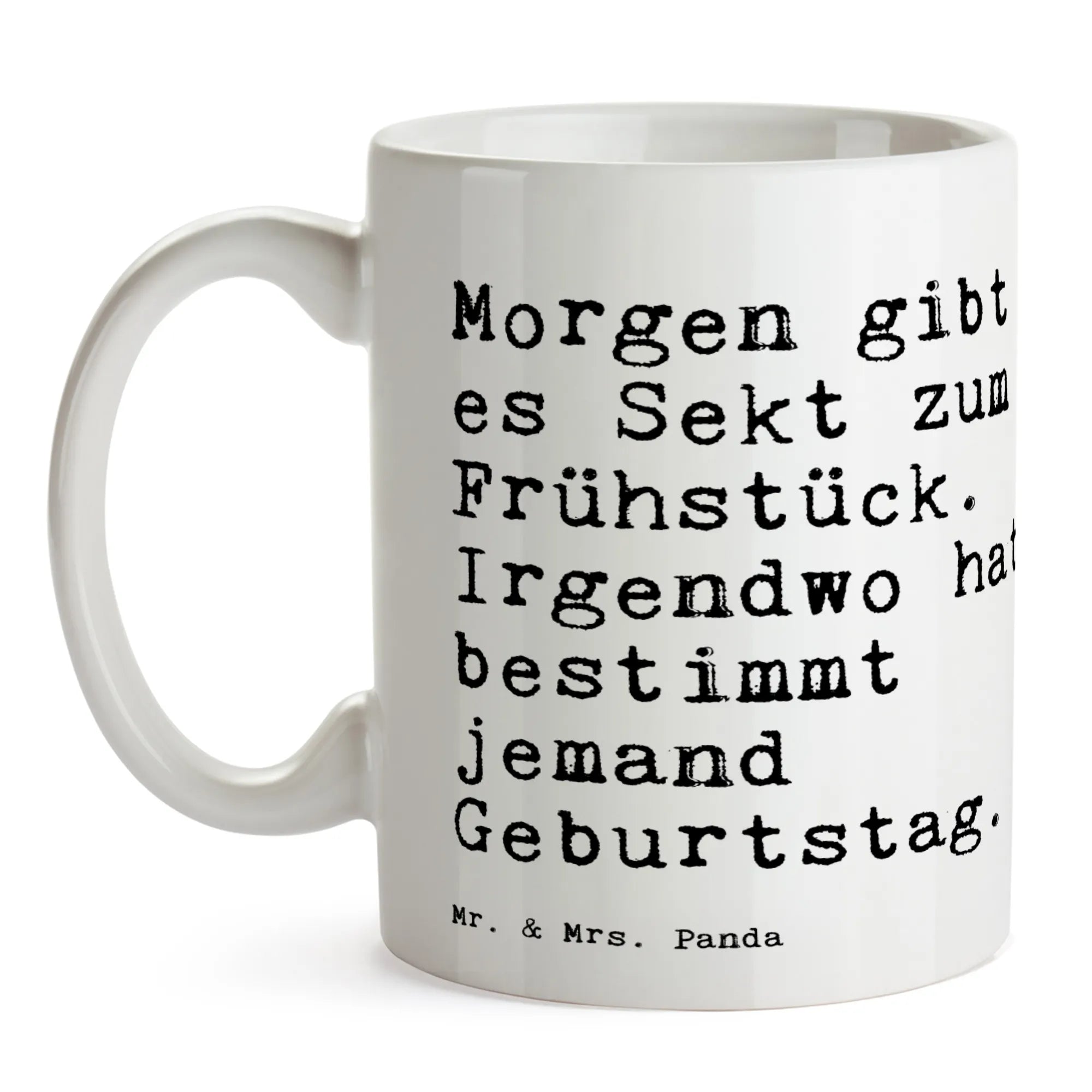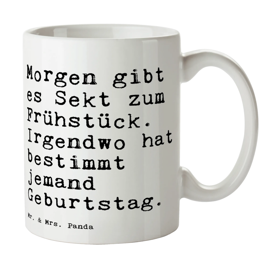 Die Tasse "Morgen gibt es Sekt zum Frühstück. Irgendwo hat bestimmt jemand Geburtstag." von Mr. & Mrs. Panda ist das perfekte Geschenk für all die Menschen, die das Leben mit einem Lächeln genießen. Sie ist nicht nur eine wunderschöne spülmaschinenfeste Keramiktasse, sondern auch ein kleines Stück Lebensfreude, das jeden Morgen ein wenig heller macht.