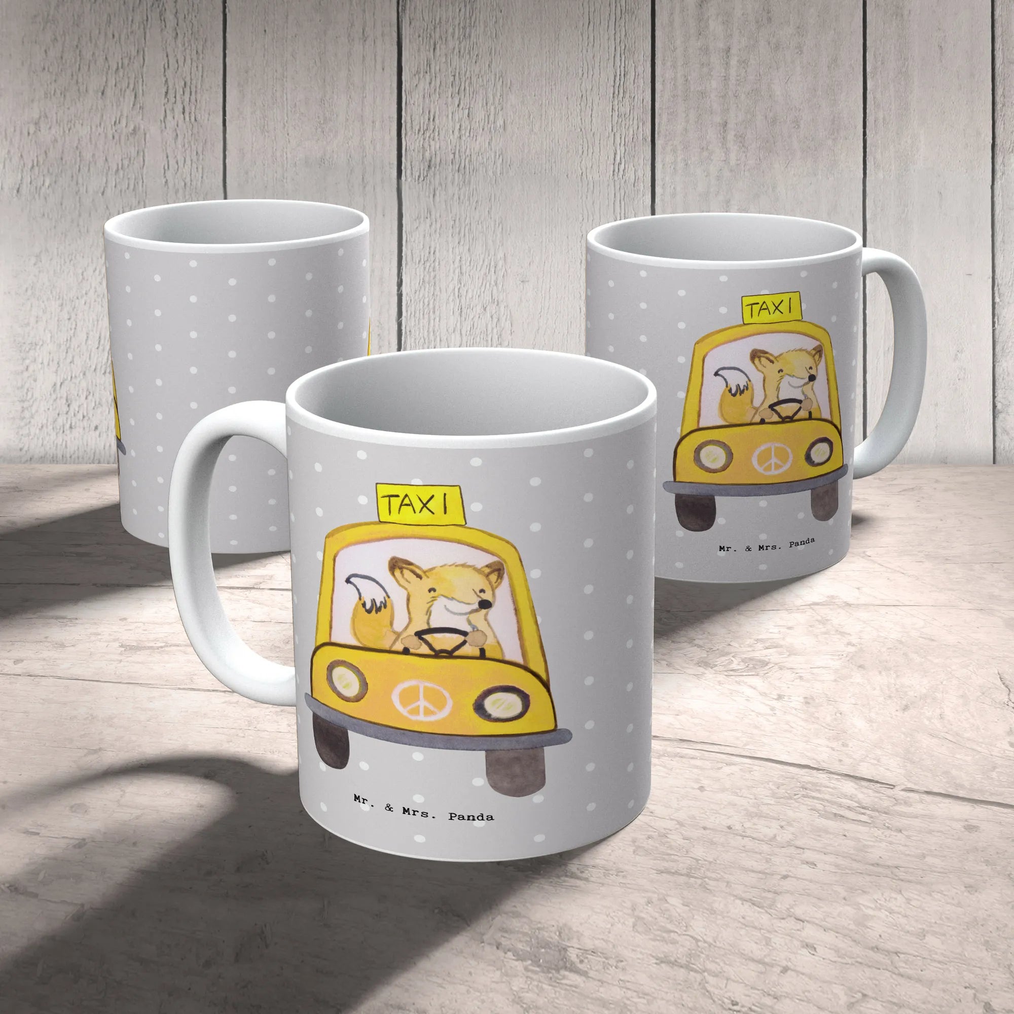 Die perfekte Tasse für alle Taxifahrer und die, die es mit ganzem Herzen sind! Diese wunderschöne spülmaschinenfeste Keramiktasse von Mr. & Mrs. Panda überzeugt mit ihrem einzigartigen Motiv eines süßen Fuchses, der voller Freude in seinem gelben Taxi fährt.