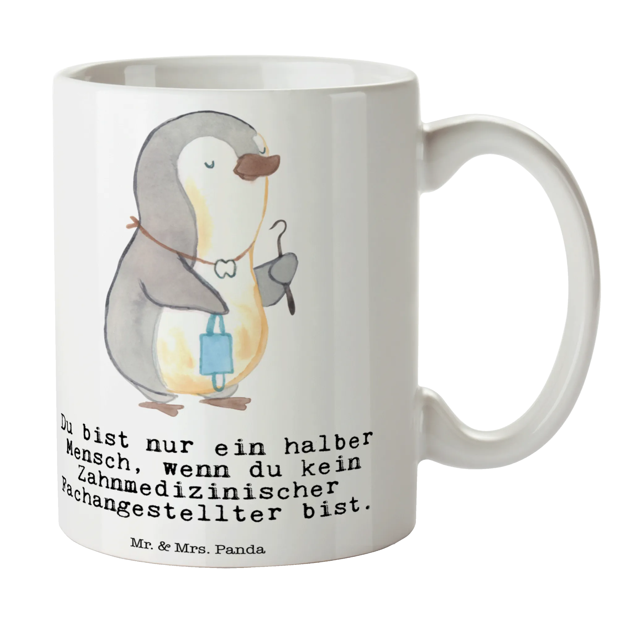Zahnmedizinischer Fachangestellter mit Herz – Pinguin Zahnarzt mit Instrumenten