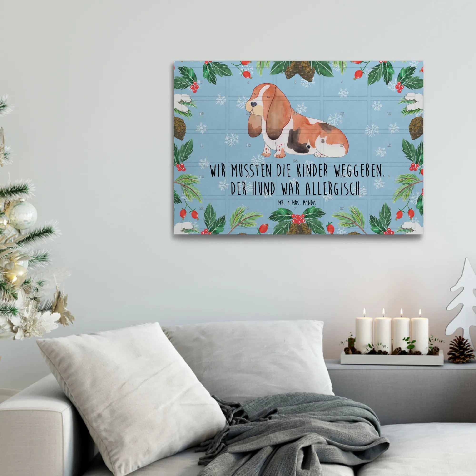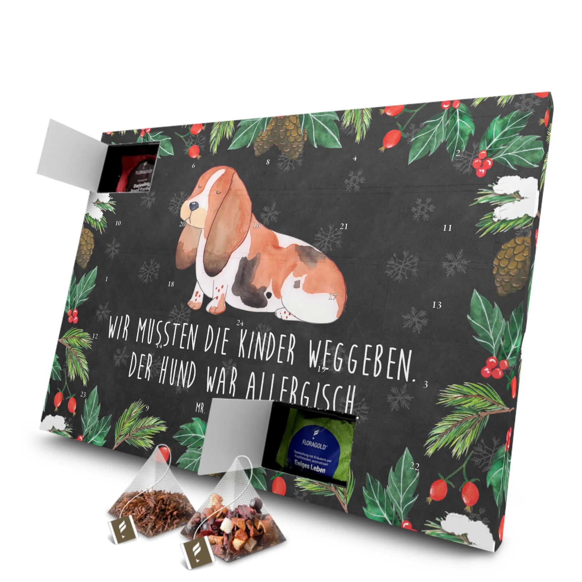 Der Tee Adventskalender mit dem süßen Basset Hound Motiv von Mr. & Mrs. Panda ist das perfekte Geschenk für jeden Tierliebhaber, insbesondere für Hundebesitzer und Basset Hound Fans! Mit seinem humorvollen Spruch "Wir mussten die Kinder weggeben. Der Hund war allergisch." bringt er nicht nur Freude, sondern auch eine ordentliche Portion Spaß in die Vorweihnachtszeit.