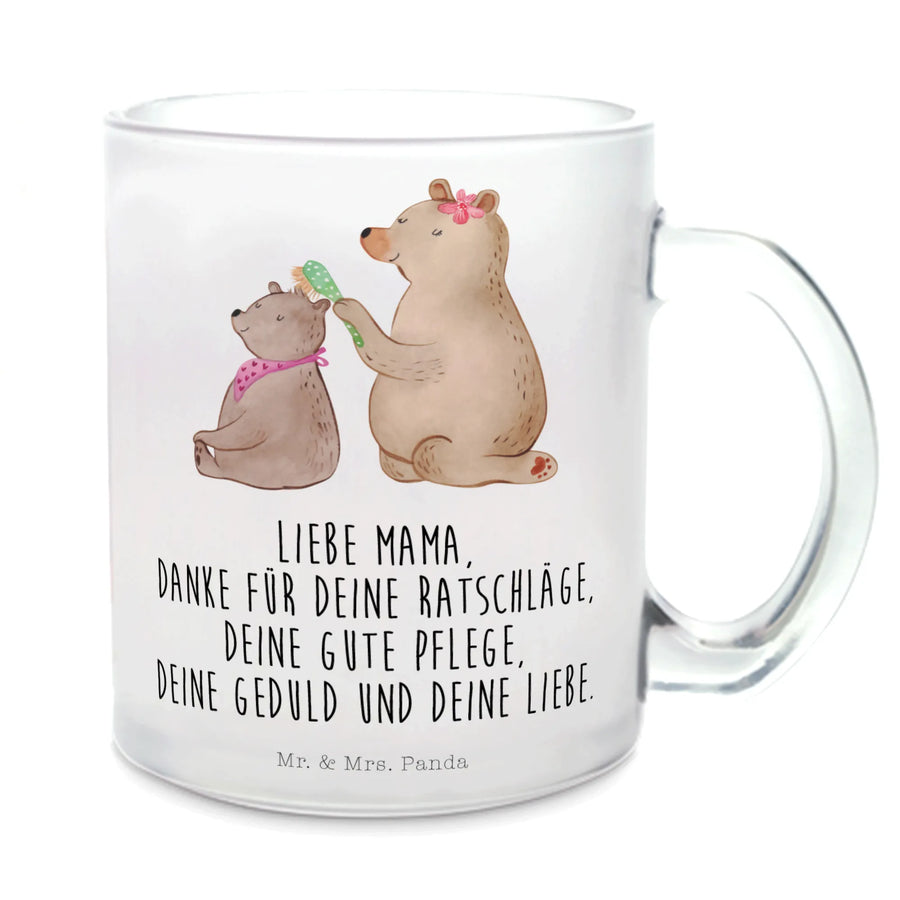 Das Motiv zeigt einen großen Bären, der liebevoll das Fell des kleinen Bären bürstet, während sie in einer warmen und einladenden Atmosphäre von Zuneigung umgeben sind. Diese Darstellung von Fürsorge und bedingungsloser Liebe macht jede Tasse zu einem emotionalen Highlight. Wenn du deiner Mama sagst: "Liebe Mama, danke für deine Ratschläge, deine gute Pflege, deine Geduld und deine Liebe", wird ihr Herz sicher höherschlagen!