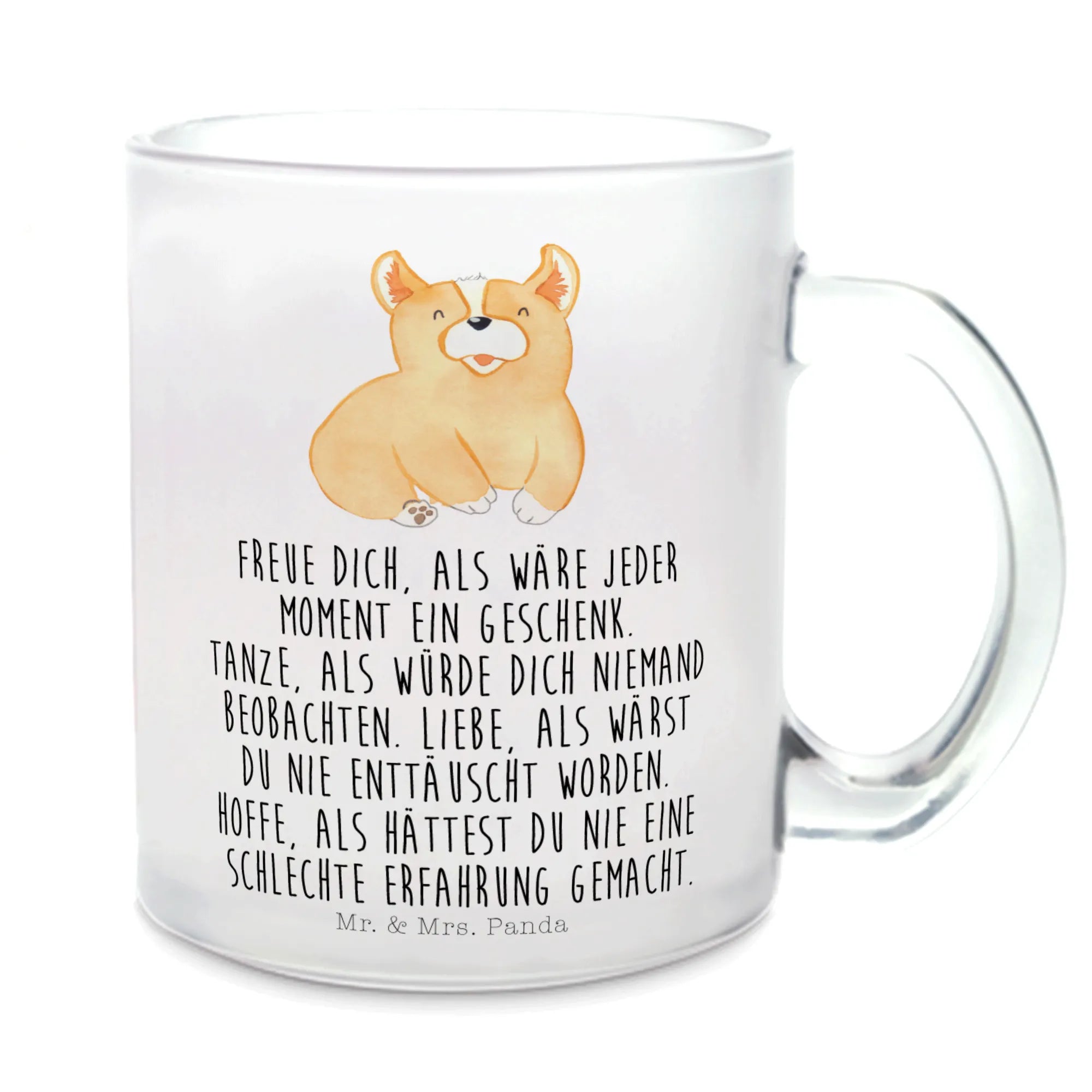 Die wunderschöne Teetasse mit dem niedlichen Corgi-Motiv aus der exklusiven Hunde Kollektion von Mr. & Mrs. Panda ist das perfekte Geschenk für jeden Hundeliebhaber. Egal, ob du einen Kaffee am Morgen, einen beruhigenden Tee am Nachmittag oder einen wärmenden Glühwein am Abend genießen möchtest – diese edle Teetasse aus extra starkem Premiumglas ist für jedes Heißgetränk geeignet.