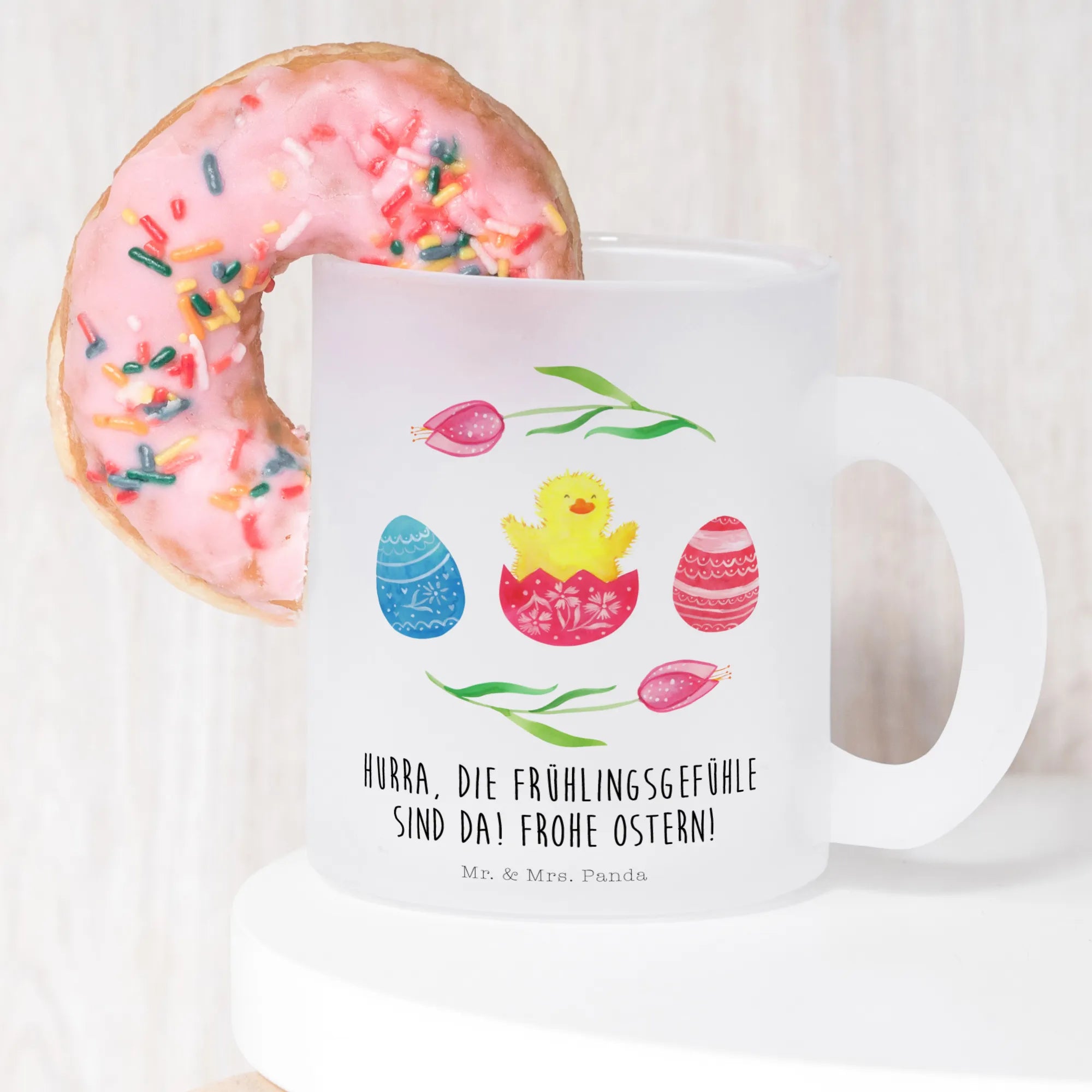 Die Teetasse mit dem niedlichen Küken-Motiv von Mr. & Mrs. Panda ist das perfekte Ostergeschenk für Groß und Klein. Sie strahlt Frühlingsgefühle aus und zaubert jedem ein Lächeln ins Gesicht! Ob für die eigenen Liebsten oder als liebevolle Geste für Freunde – diese Teetasse ist ein wahres Highlight. Das süße Küken, das emporsteigt aus seinem Ei, weiß genau, wie man Freude verbreitet! Mit dem fröhlichen Spruch "Hurra, die Frühlingsgefühle sind da! Frohe Ostern!" wird der Frühling gleich noch ein bisschen schöner!