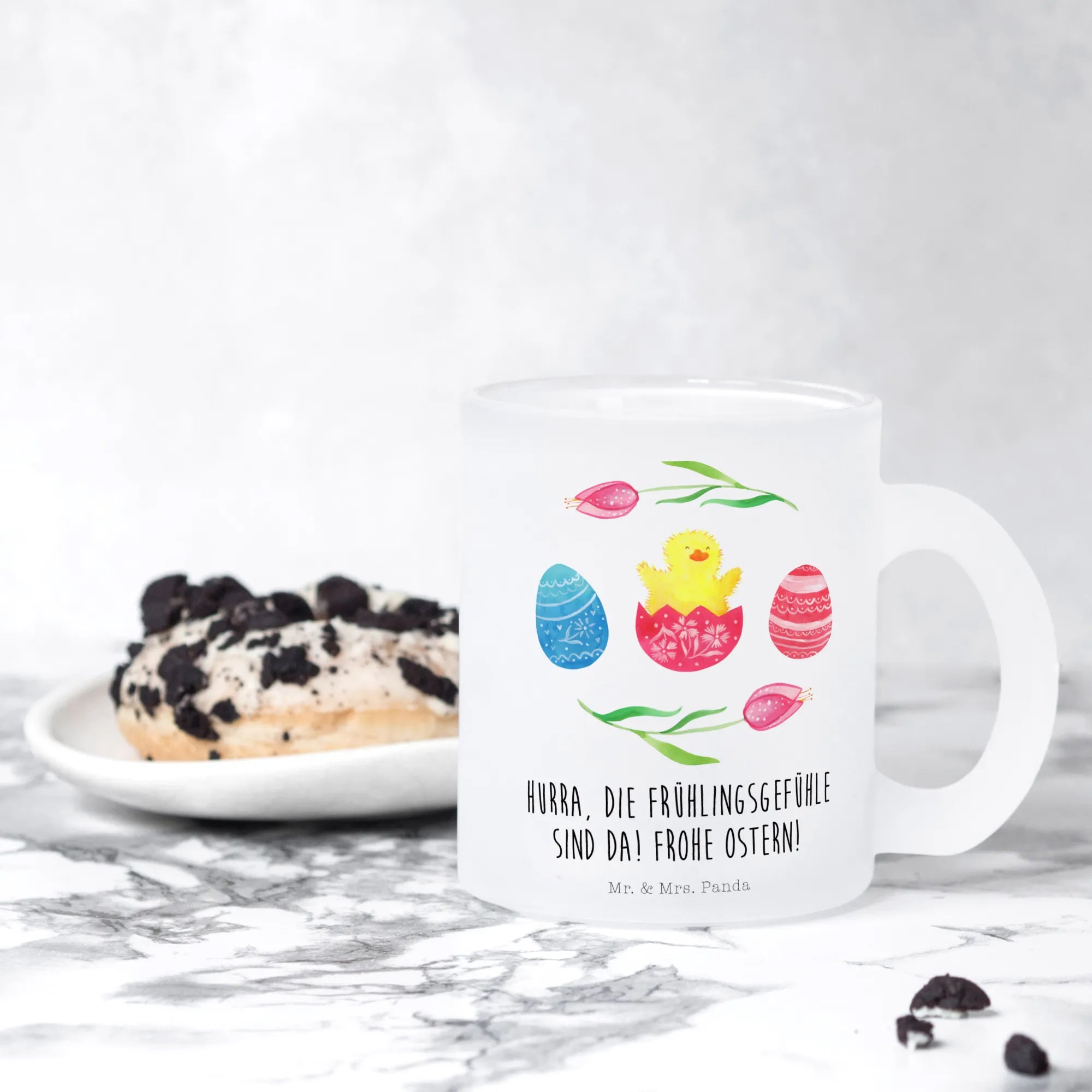 Perfekt für eine gemütliche Teestunde oder als Deko für dein Osterfest, wird sie allen ein strahlendes Lächeln ins Gesicht zaubern. Hergestellt aus robustem, extra starkem Premiumglas und versehen mit einem kratzfesten, hitzebeständigen Aufdruck, begleitet dich diese Teetasse bei jedem heißen Tee, Kaffee oder Glühwein. Die edle, matte Oberfläche und die liebevollen, handgezeichneten Details verleihen ihr einen besonders charmanten Look.