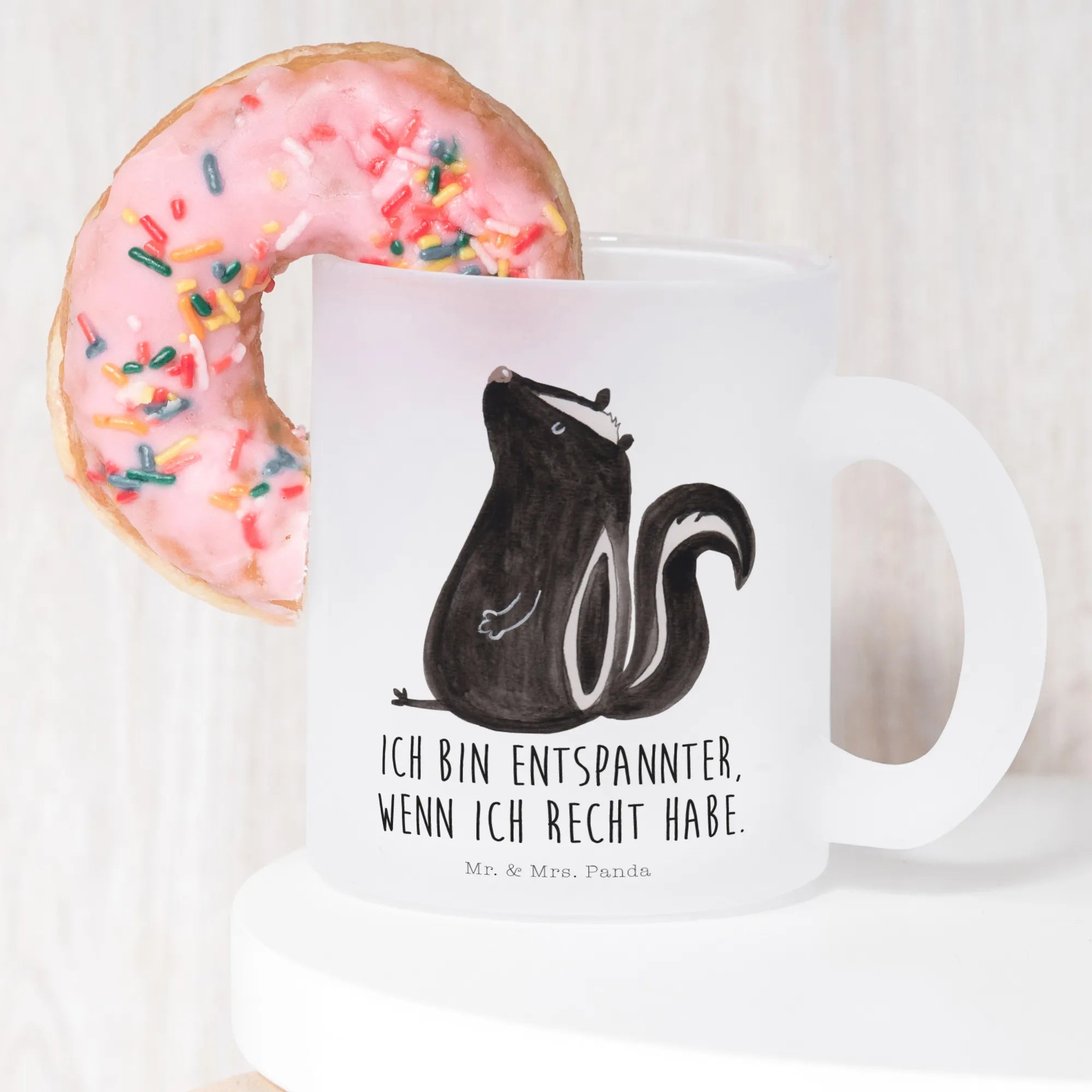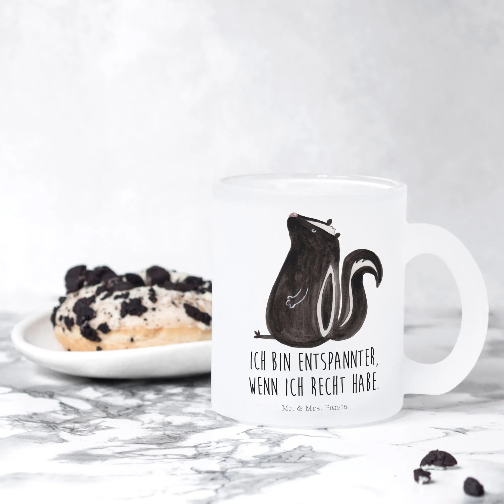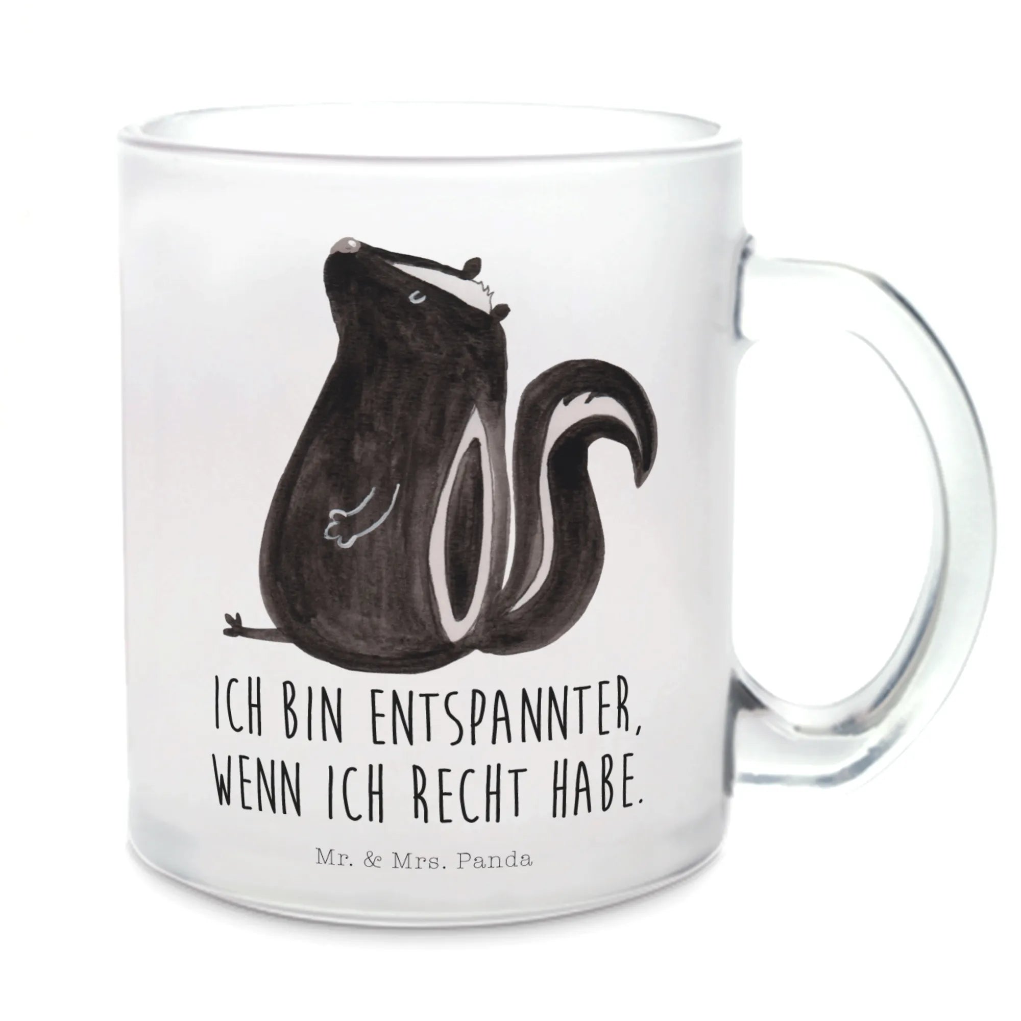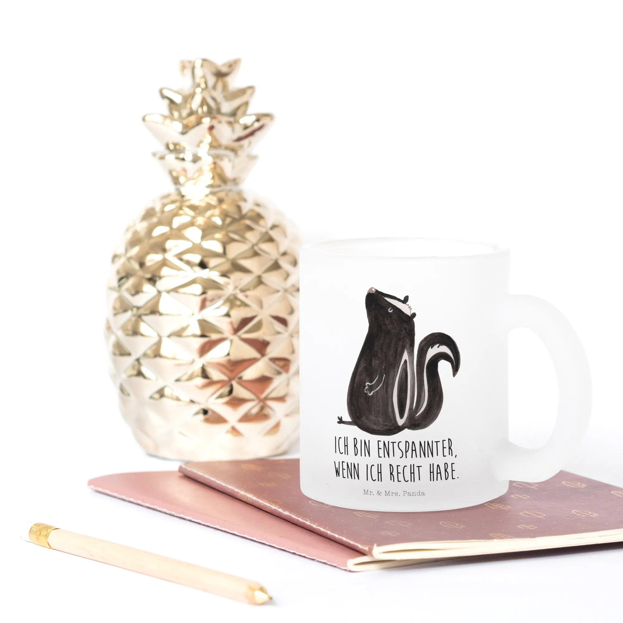 Entdecke die zauberhafte Teetasse mit dem niedlichen Motiv des sitzenden Stinktiers aus der Stinktier-Kollektion von Mr. & Mrs. Panda! Diese edle und einzigartige Teetasse bringt nicht nur einen Hauch von Natur in deinen Alltag, sondern ist auch das perfekte Geschenk für Freunde und Familie, die Tiere lieben und einen besonderen Sinn für Humor haben. Mit dem charmanten Spruch „Ich bin entspannter, wenn ich Recht habe.“ sorgt diese Tasse immer für ein Lächeln beim Teetrinken.