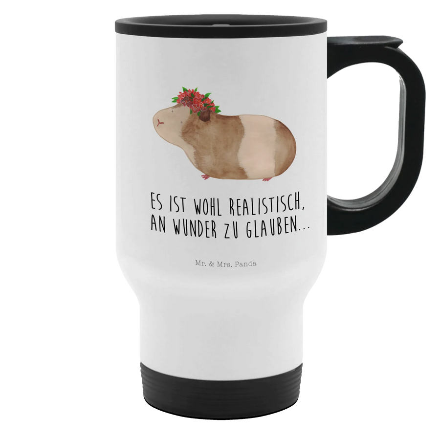Der einzigartige Thermobecher mit dem niedlichen Meerschweinchen-Motiv von Mr. & Mrs. Panda ist das perfekte Geschenk für Tierliebhaber und alle, die eine positive Einstellung zum Leben haben. Mit einem inspirierenden Spruch – 'Es ist wohl realistisch, an Wunder zu glauben...' – bringt diese Tasse gute Laune, egal ob beim morgendlichen Kaffee, beim heißen Tee unterwegs oder bei deinem Feierabendgetränk.