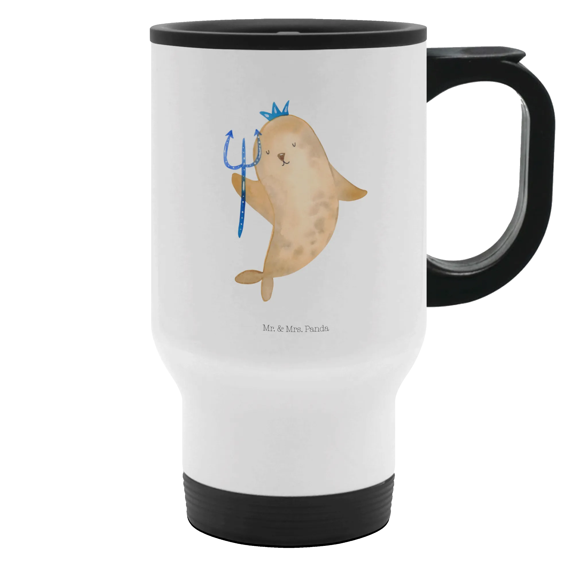 Der wunderschöne Thermobecher Sternzeichen Wassermann von Mr. & Mrs. Panda ist der perfekte Begleiter für alle Wassermann-Geborenen. Mit einem liebevoll handgezeichneten Motiv einer Krone tragenden Robbe und dem Motto "Spontan und grandios wie ein Wassermann" bringt dieser Isolierbecher nicht nur Farbe in den Alltag, sondern auch ein Lächeln auf die Gesichter der Beschenkten.
