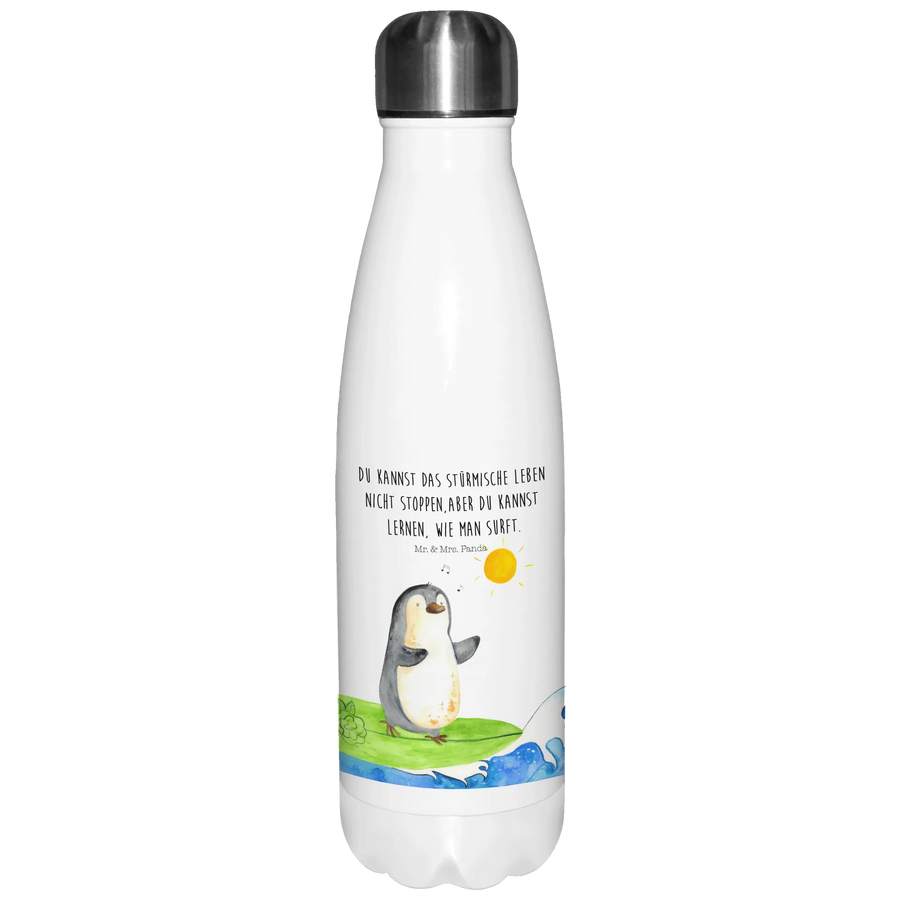 Der Slogan "Du kannst das stürmische Leben nicht stoppen, aber du kannst lernen, wie man surft." inspiriert dich und deine Liebsten, die Herausforderungen des Lebens mit Leichtigkeit zu meistern. Entdecke die magische Welt der Pinguine mit der Pinguin-Kollektion von Mr. & Mrs. Panda – die Thermosflasche für alle, die das Leben in vollen Zügen genießen wollen! 🌊🐧