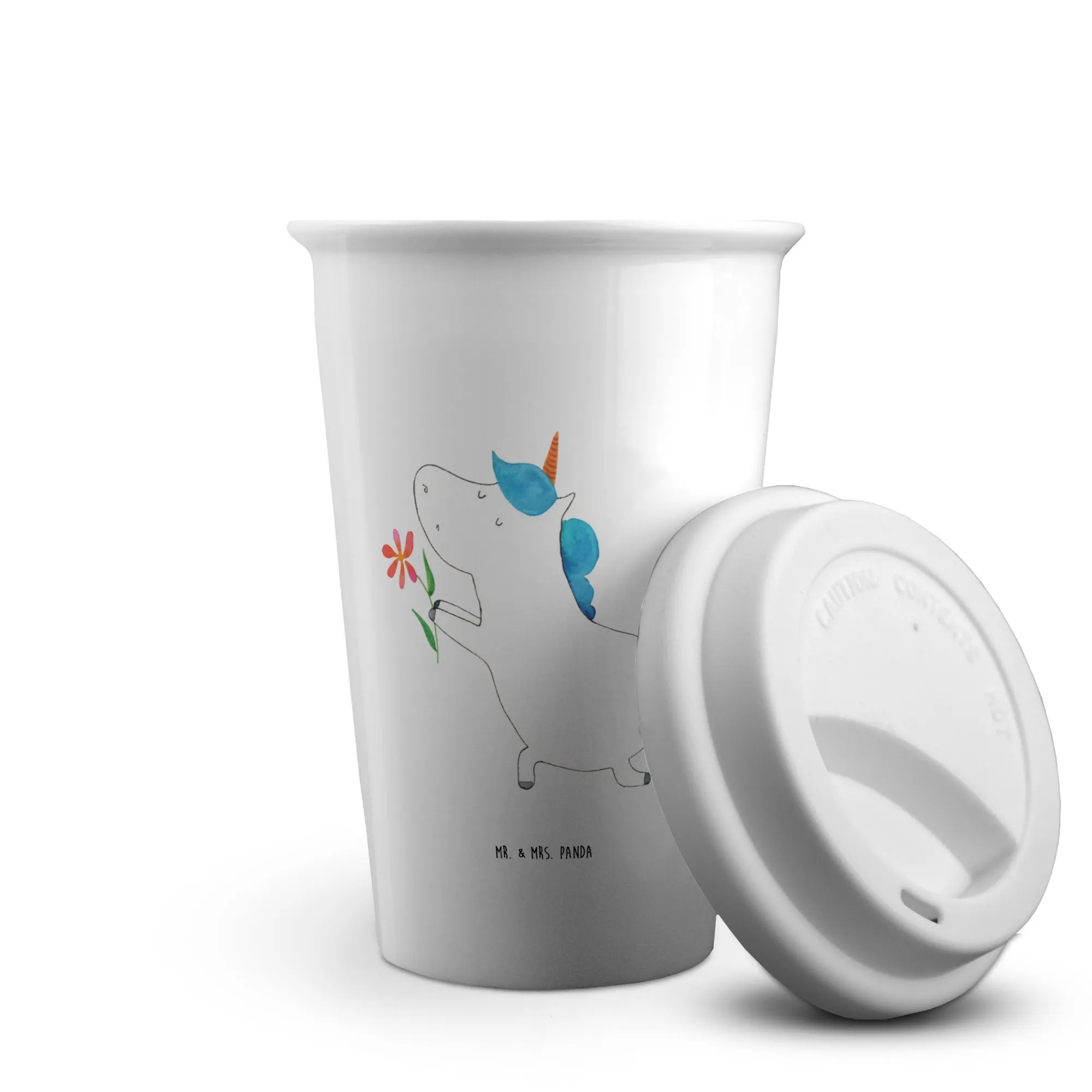 Entdecke den zauberhaften To Go Becher "Einhorn Blume" aus der Einhorn-Kollektion von Mr. & Mrs. Panda, der das perfekte Geschenk für alle Einhornliebhaber ist! 🌈