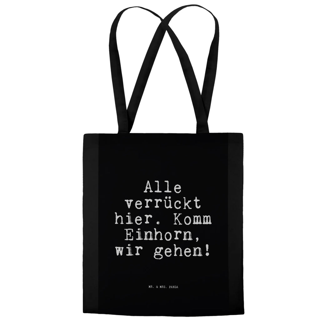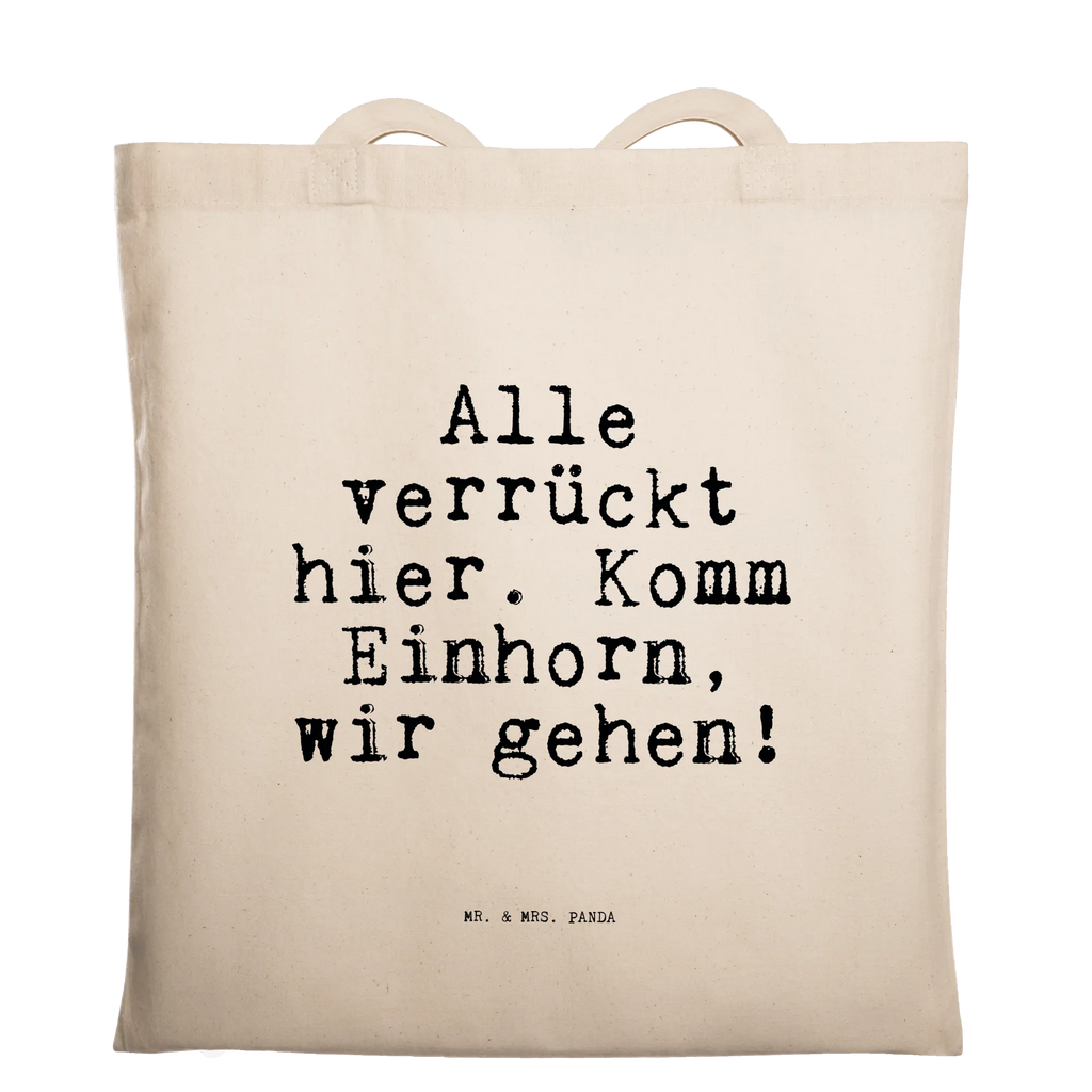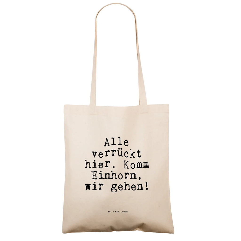 Tragetasche Sprüche und Zitate Alle verrückt hier. Komm Einhorn, wir gehen! - Transparent