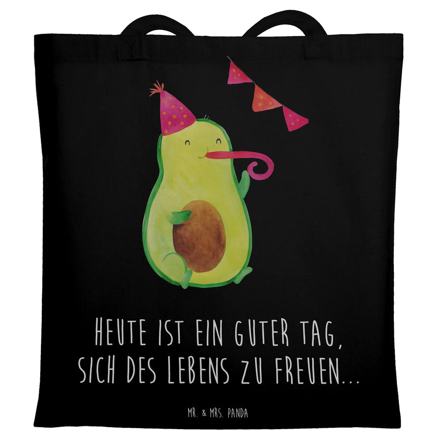 Avocado Party Tragetasche von Mr. & Mrs. Panda – die fröhliche Geschenkidee für Avocado-Fans, Veggies und Feierfreudige! Die niedliche Avocado mit Partyhut und Partypfeife wurde liebevoll von Mrs. Panda handgezeichnet und verbreitet gute Laune bei jedem Einsatz. Perfekt als Geschenk Geburtstag, Mitbringsel zur Party oder nachhaltige Einkaufstasche.