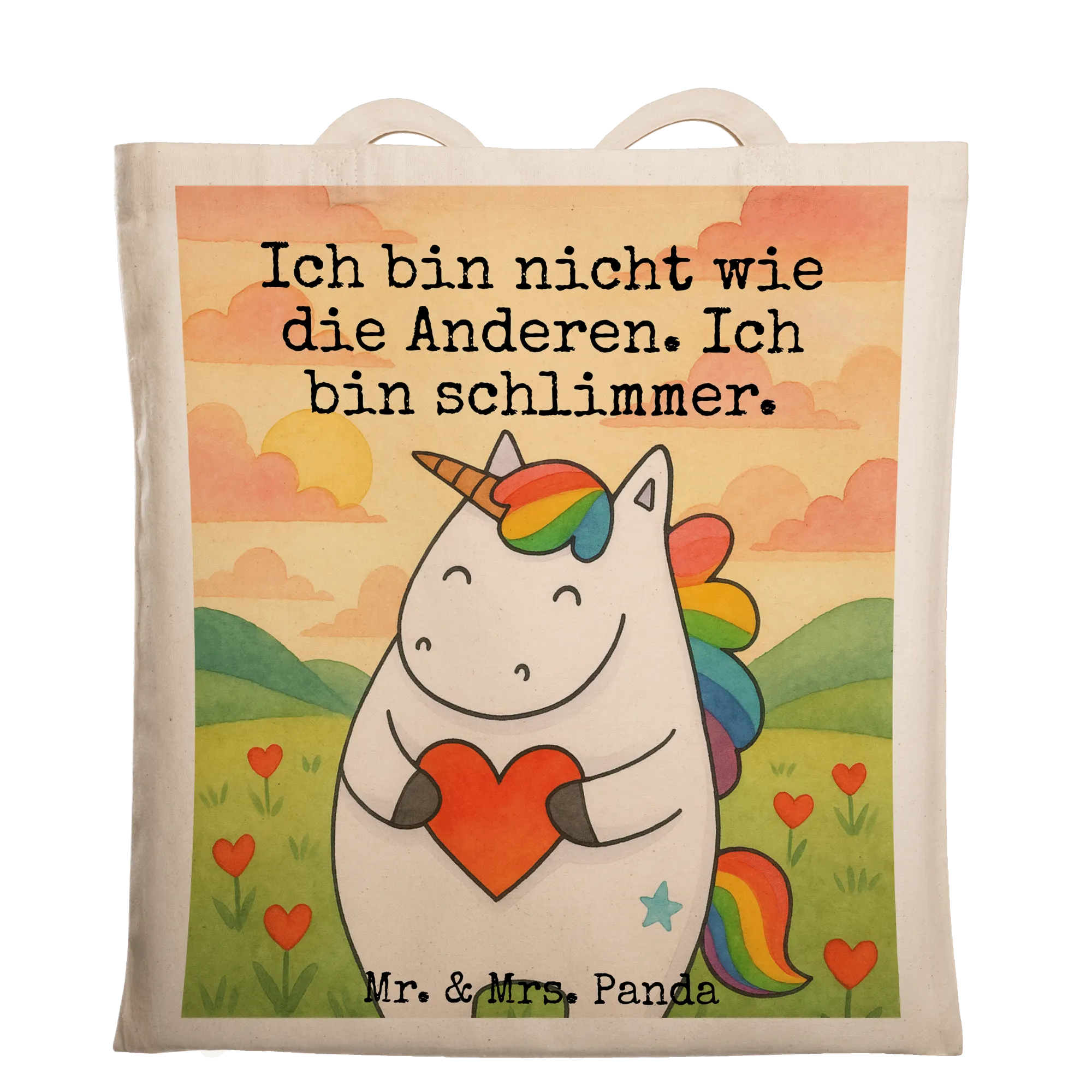 Süß und funktional – die Tragetasche von Mr. & Mrs. Panda ist ein absolutes Must-Have! Mit den Abmessungen von 420 mm x 380 mm bietet sie viel Platz für alles, was du benötigst. Aus 100% Baumwolle (140g/m²) gefertigt, zeigt sie sich formbeständig dank der umsäumten und eingeschlagenen Innennähte. Die langen Tragegriffe (70 cm) machen das Tragen super bequem. Sie eignet sich hervorragend als Shopper, Umhängetasche oder Strandtasche und die zauberhaften Motive und Sprüche machen sie zu einem echten Hingucker! Pflege sie durch lauwarme Handwäsche und genieße ihre zauberhafte Optik jeden Tag!