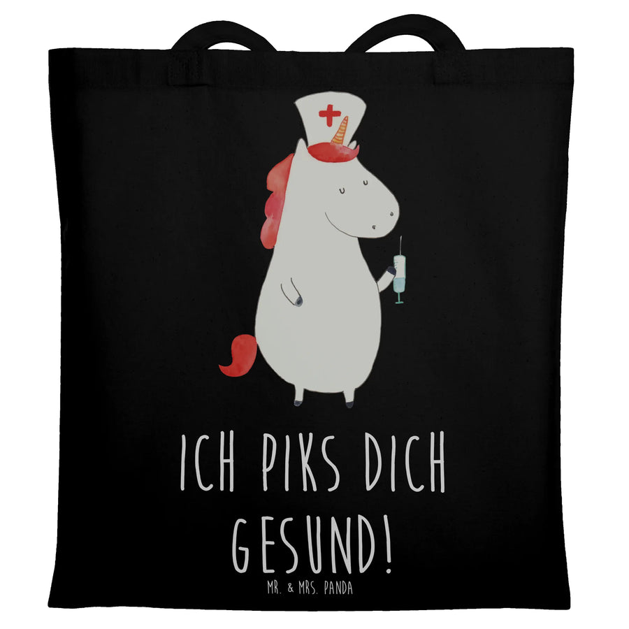 Die süße Krankenschwester als sympathisches Einhorn mit dem Slogan 'Ich piks dich gesund!' ist der ideale Begleiter für jeden Einkauf, zur Arbeit oder einfach für einen Ausflug zum Strand. Mit einer Größe von 420 mm x 380 mm bietet die Tasche ausreichend Platz für alle wichtigen Dinge des Alltags.