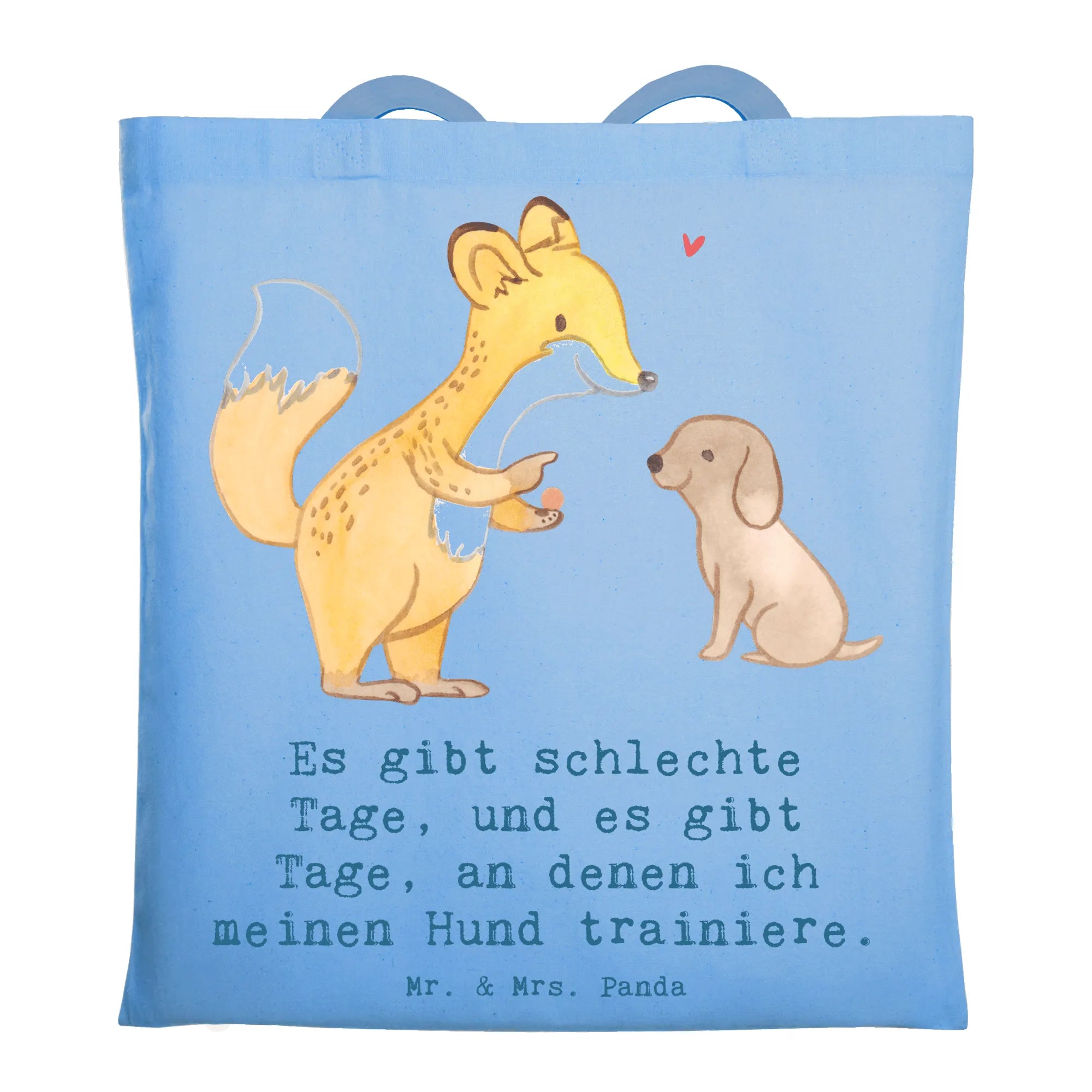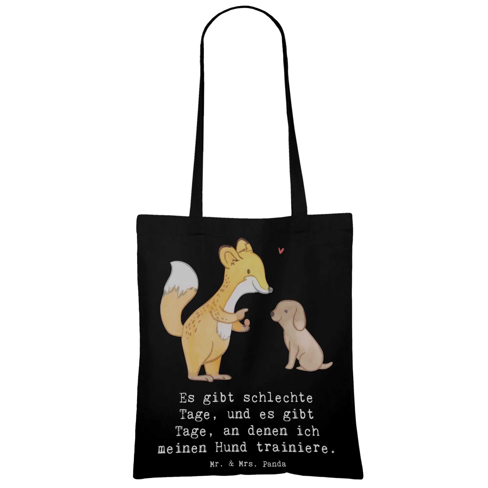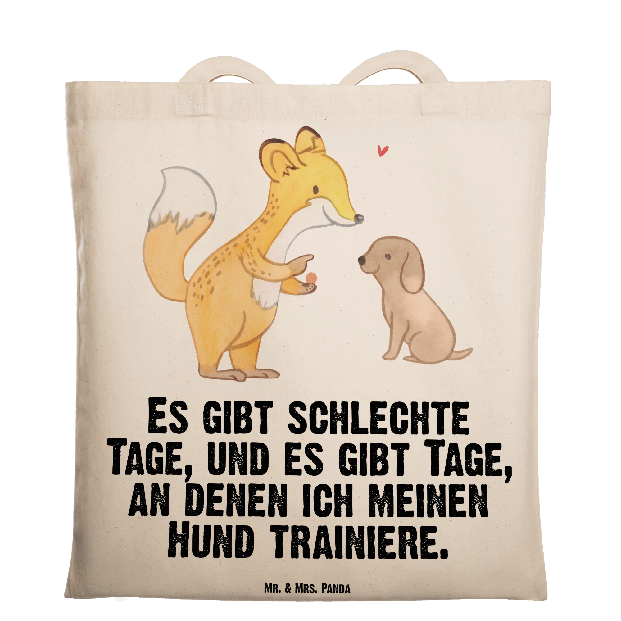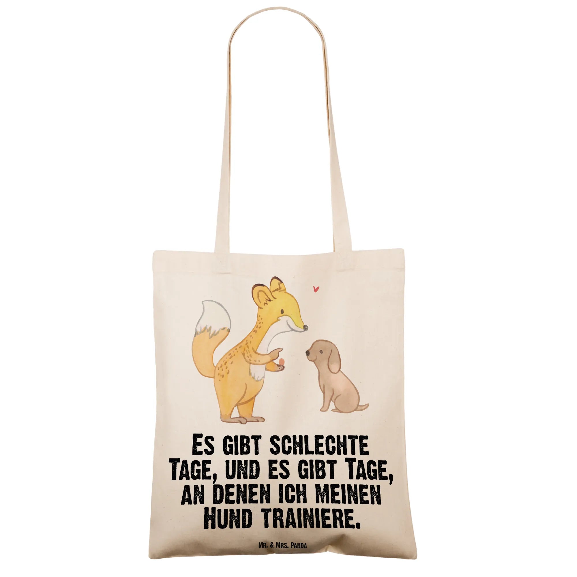 Entdecke die niedliche Tragetasche mit dem Motiv 'Fuchs Hundetraining Tage' von Mr. & Mrs. Panda! Diese wunderschöne Tragetasche ist nicht nur ein praktisches Accessoire, sondern auch das perfekte Geschenk für Hundeliebhaber und Sportbegeisterte. Der süße Fuchs, der einem kleinen Hund Kommandos gibt, bringt Freude und Motivation für alle, die sich mit Hundetraining beschäftigen. Egal, ob du deinen Hund zur Hundeschule bringst oder einfach nur mit ihm spielst, diese Tragetasche ist ideal, um alles Nötige mitzunehmen.