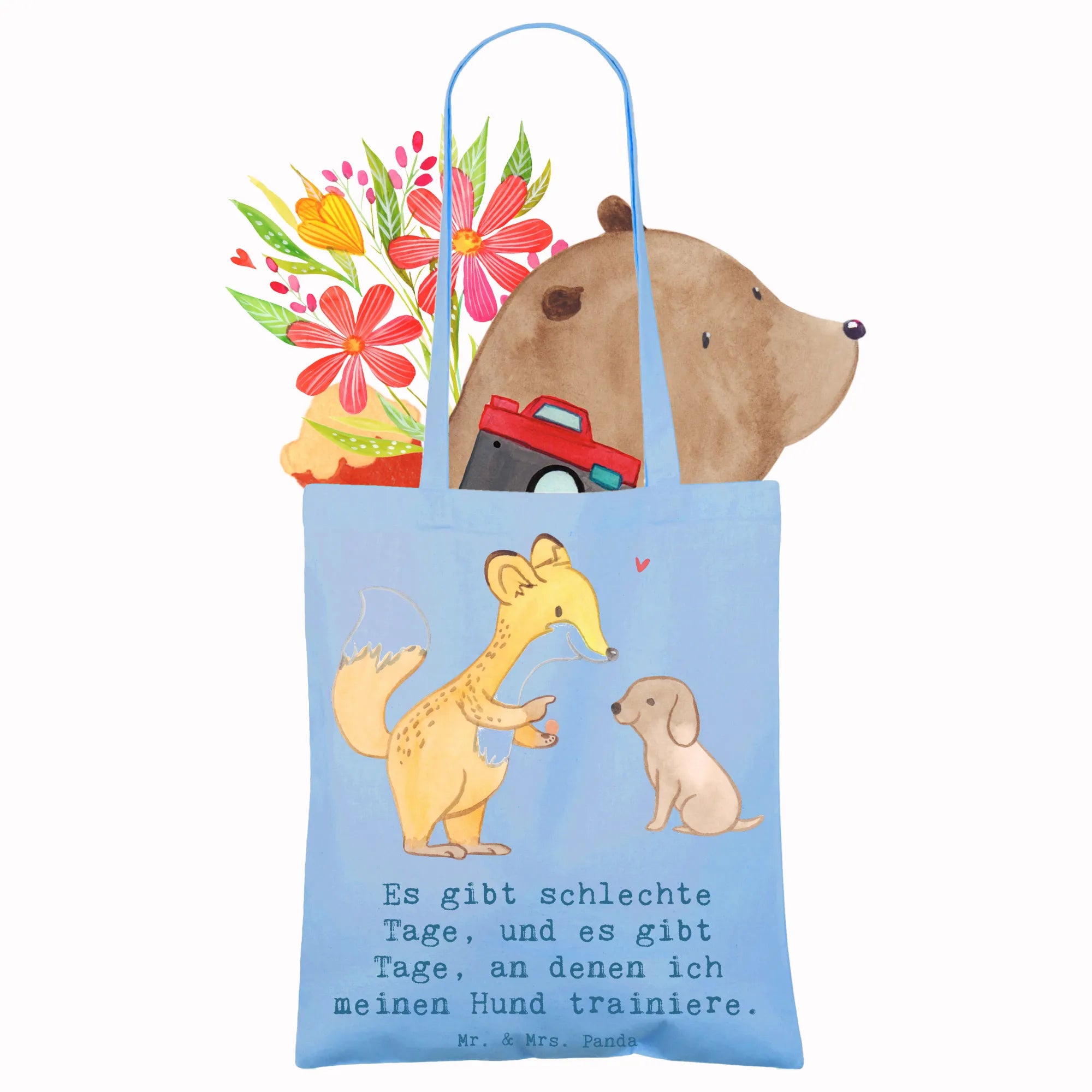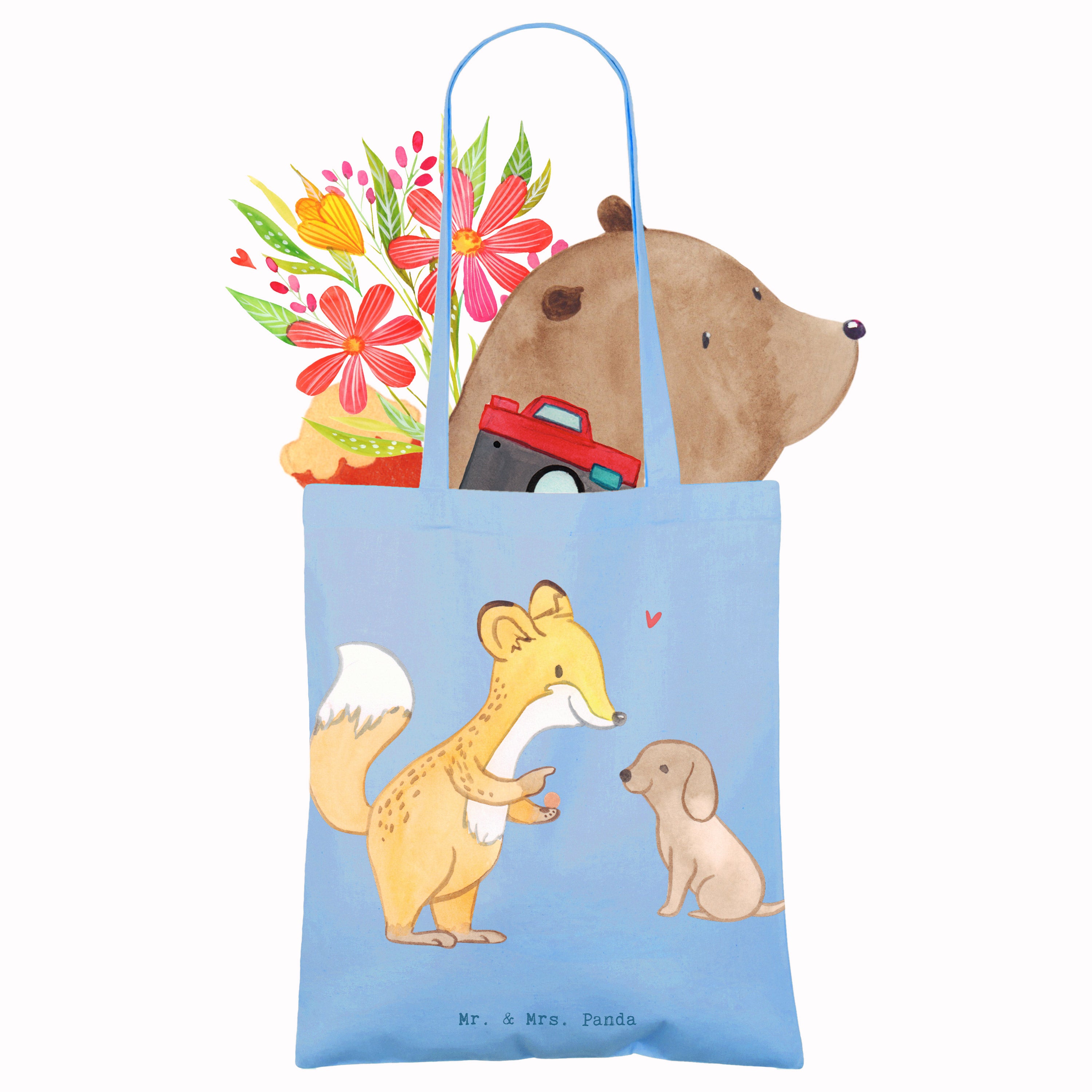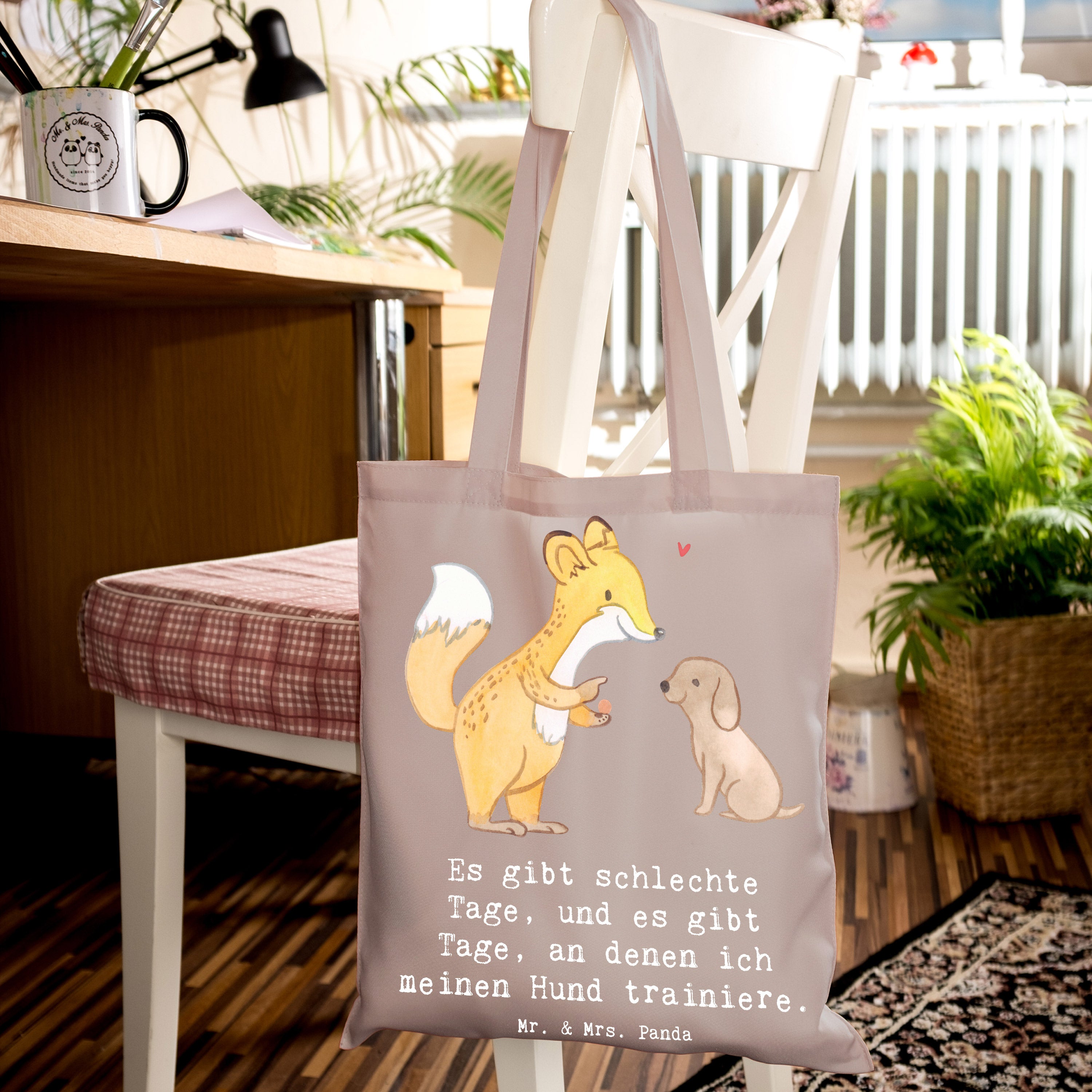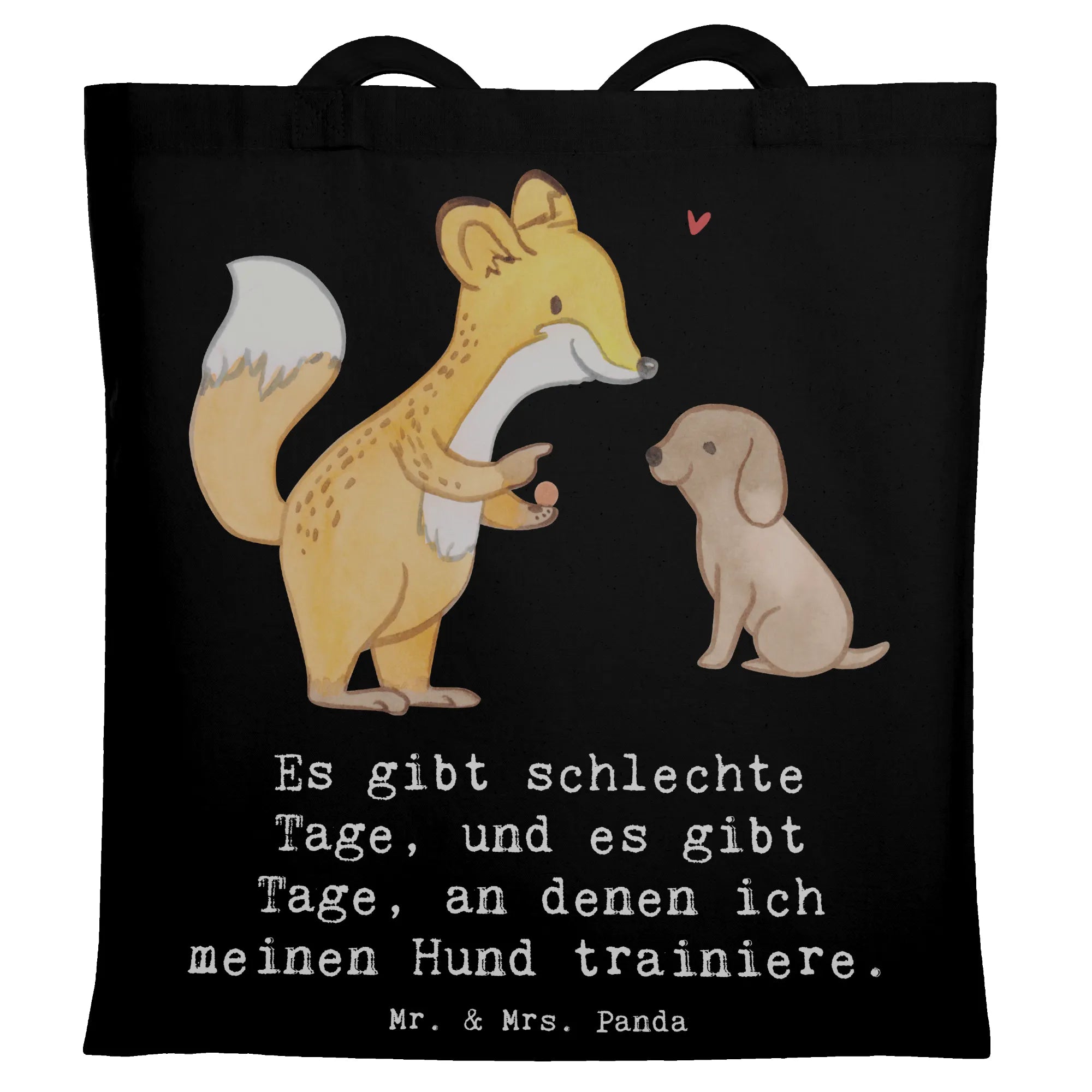 Entdecke die niedliche Tragetasche mit dem Motiv 'Fuchs Hundetraining Tage' von Mr. & Mrs. Panda! Diese wunderschöne Tragetasche ist nicht nur ein praktisches Accessoire, sondern auch das perfekte Geschenk für Hundeliebhaber und Sportbegeisterte. Der süße Fuchs, der einem kleinen Hund Kommandos gibt, bringt Freude und Motivation für alle, die sich mit Hundetraining beschäftigen. Egal, ob du deinen Hund zur Hundeschule bringst oder einfach nur mit ihm spielst, diese Tragetasche ist ideal, um alles Nötige mitzunehmen.