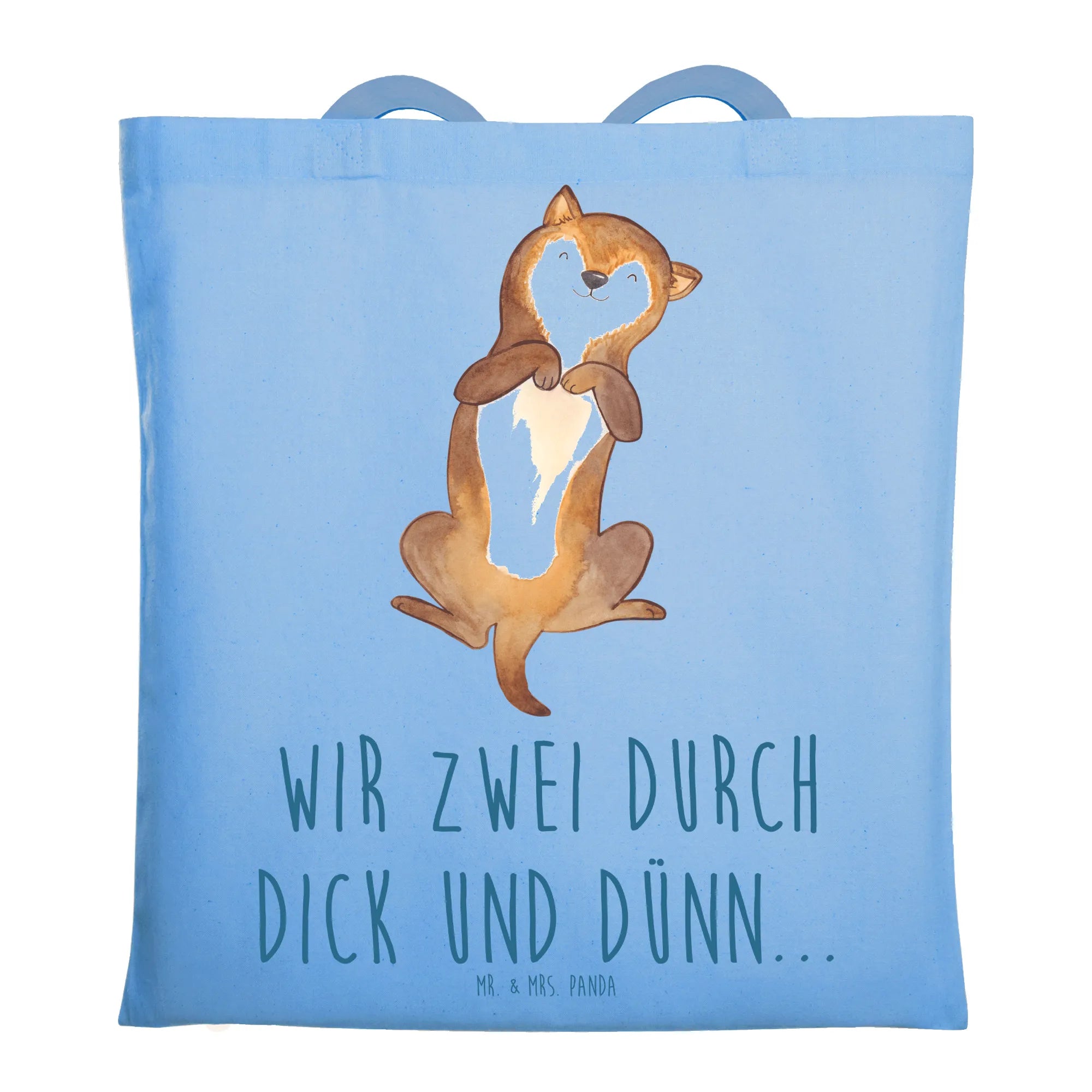 Mit dem Slogan „Wir zwei durch dick und dünn…“ zeigst Du Deine Hingabe und Loyalität zu Deinem Vierbeiner. Die Tragetasche ist pflegeleicht und kann bei lauwarmem Wasser von Hand gewaschen werden, damit sie immer strahlend schön bleibt! In der Hunde Kollektion von Mr. & Mrs. Panda findest Du noch viele weitere liebevoll gestaltete Produkte, die das Herz eines jeden Tierliebhabers höher schlagen lassen.