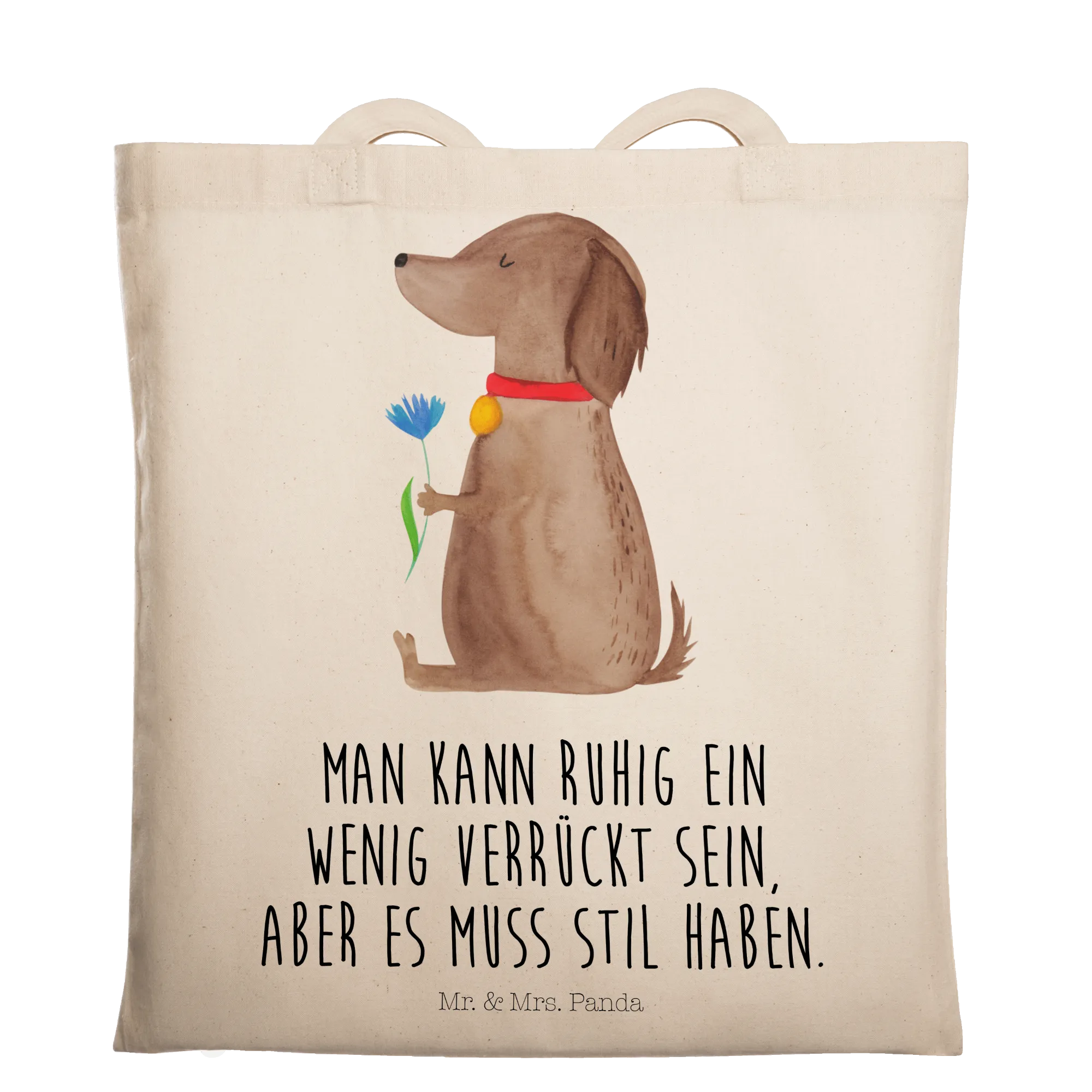 Entdecke die perfekte Tragetasche für alle Hunde-Liebhaber! Unsere Tragetasche mit dem süßen Motiv "Hund Blume" aus der Hunde Kollektion von Mr. & Mrs. Panda ist nicht nur wunderschön, sondern auch praktisch.