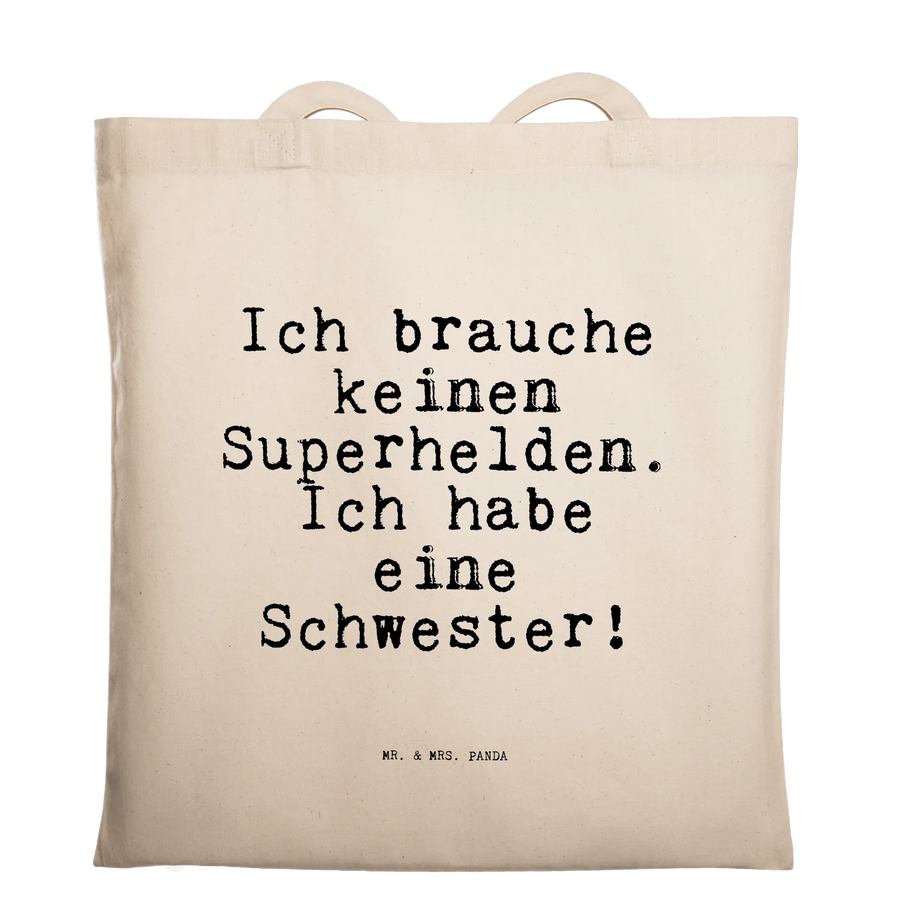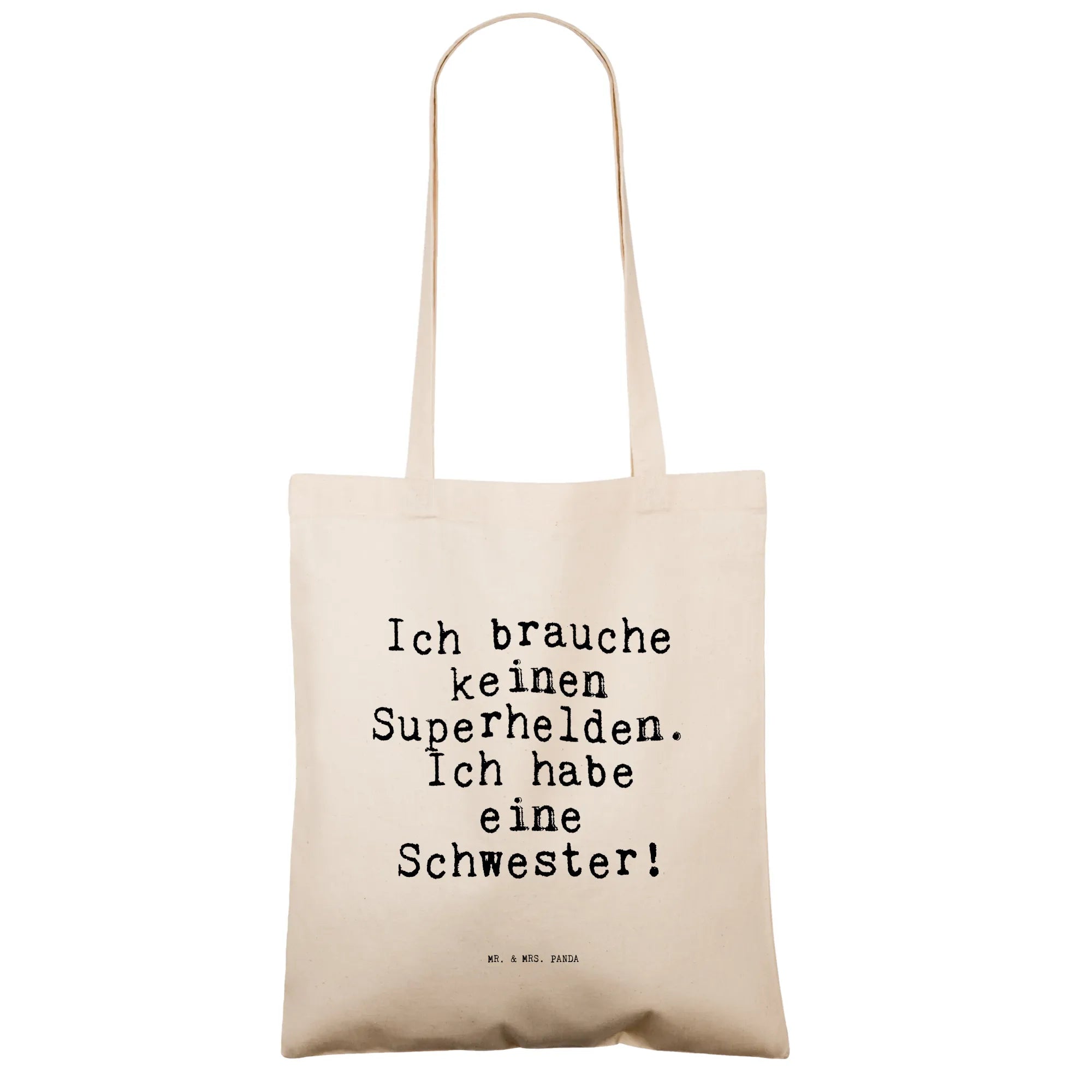 Tragetasche Sprüche und Zitate Ich brauche keinen Superhelden. Ich habe eine Schwester! - Transparent