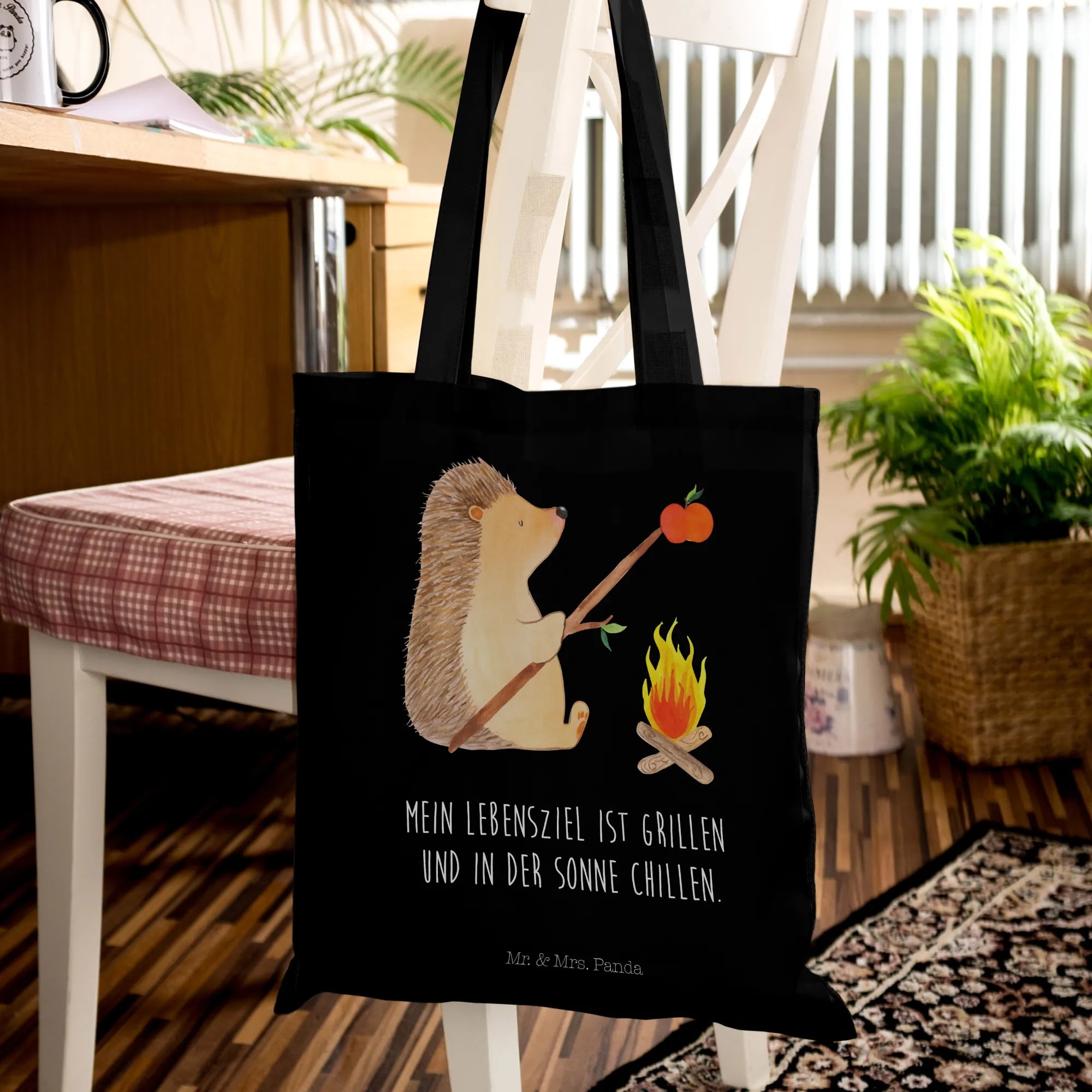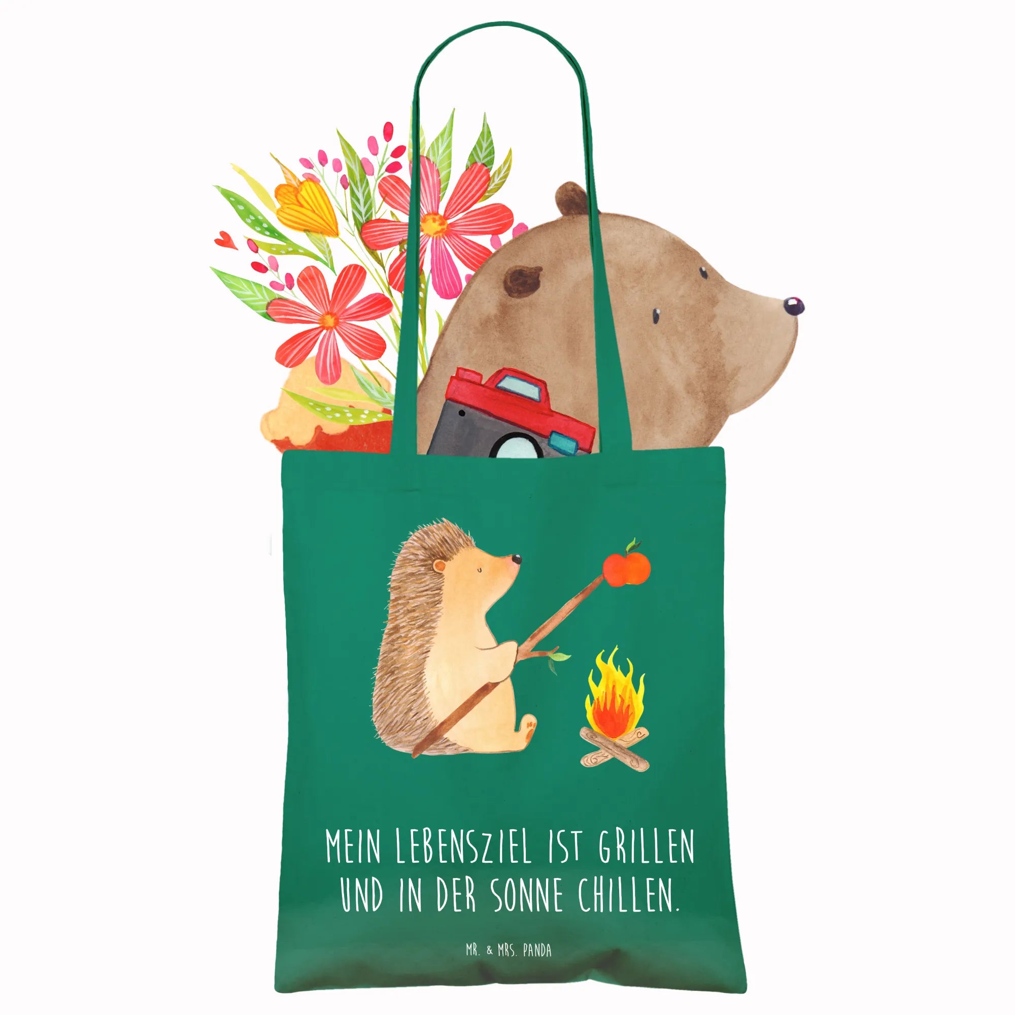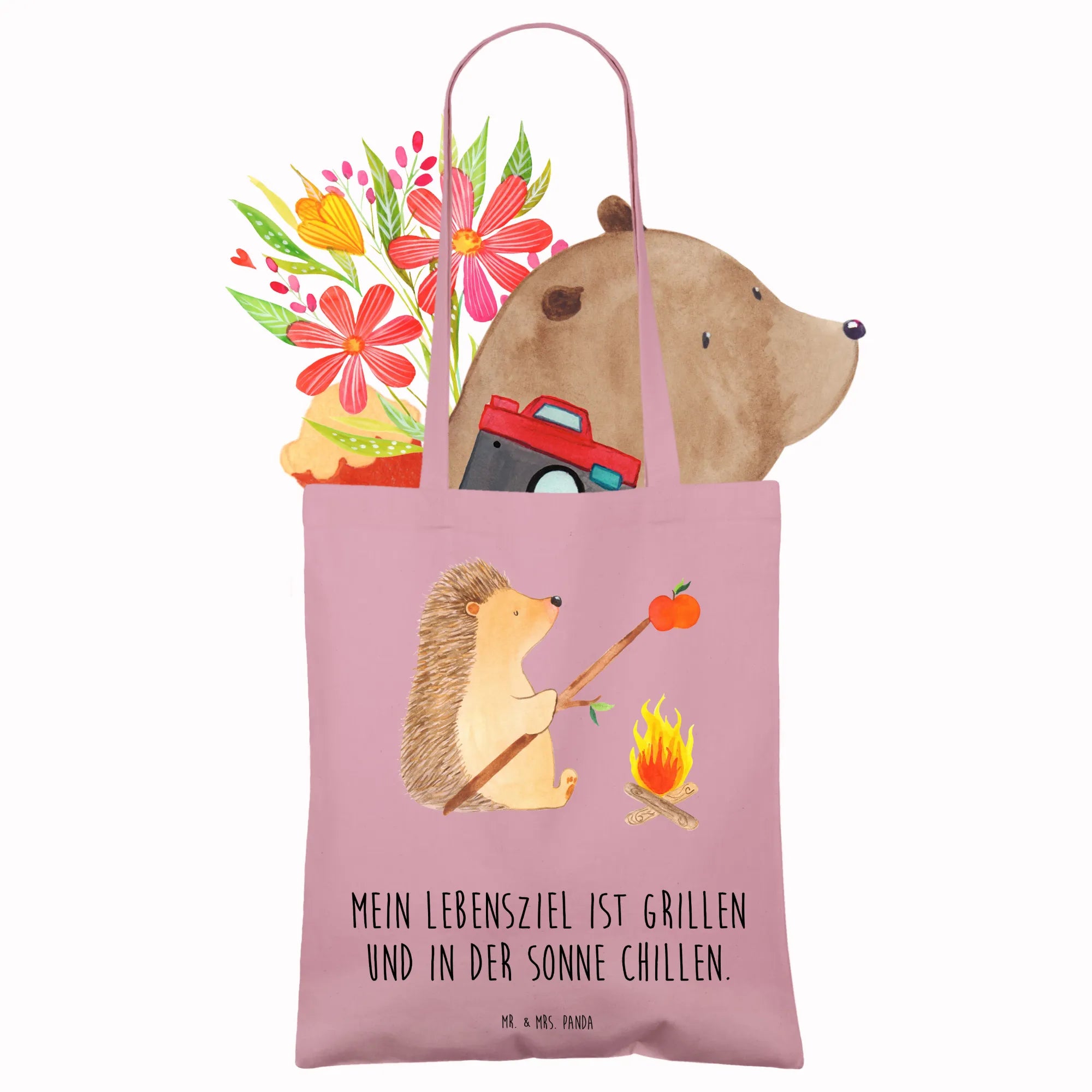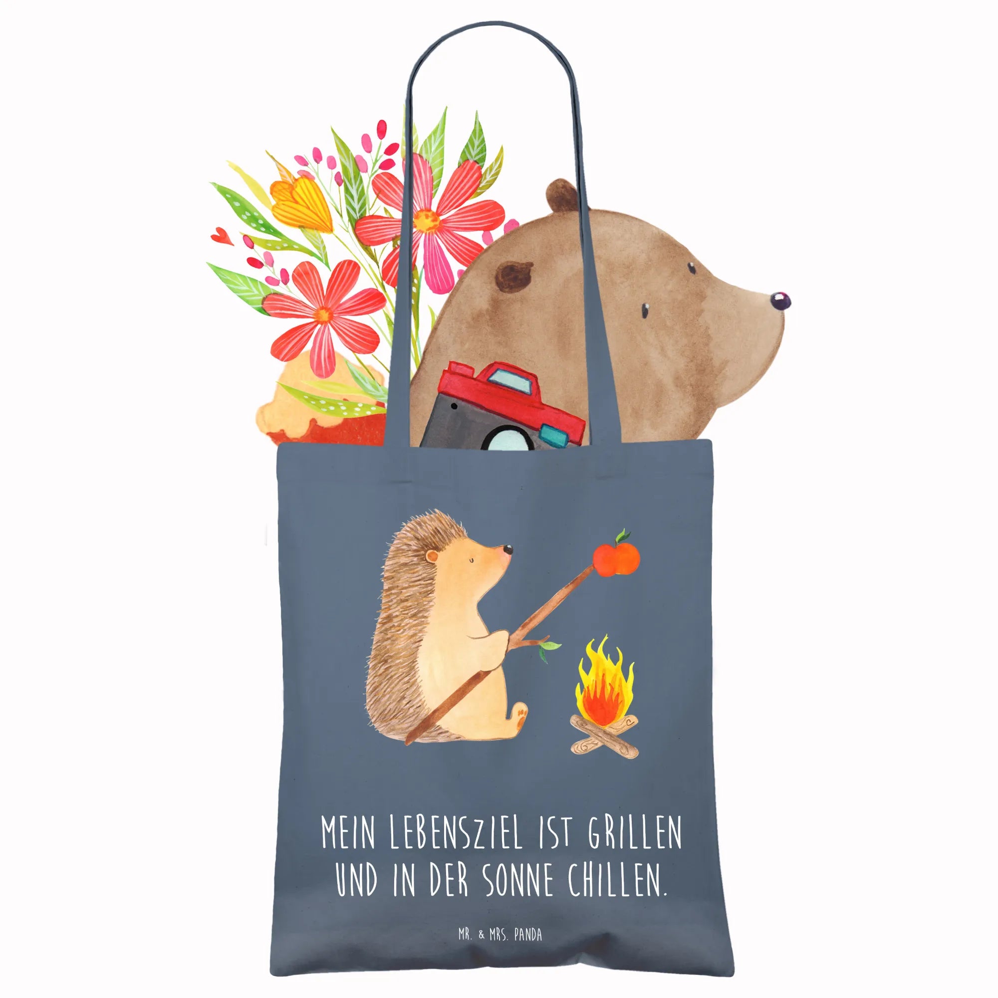 Suchst du das perfekte Geschenk für einen Freund, der die Natur liebt und gerne grillt? Dann ist die Tragetasche "Igel grillt" aus der liebevollen Small World Kollektion von Mr. & Mrs. Panda genau das Richtige!