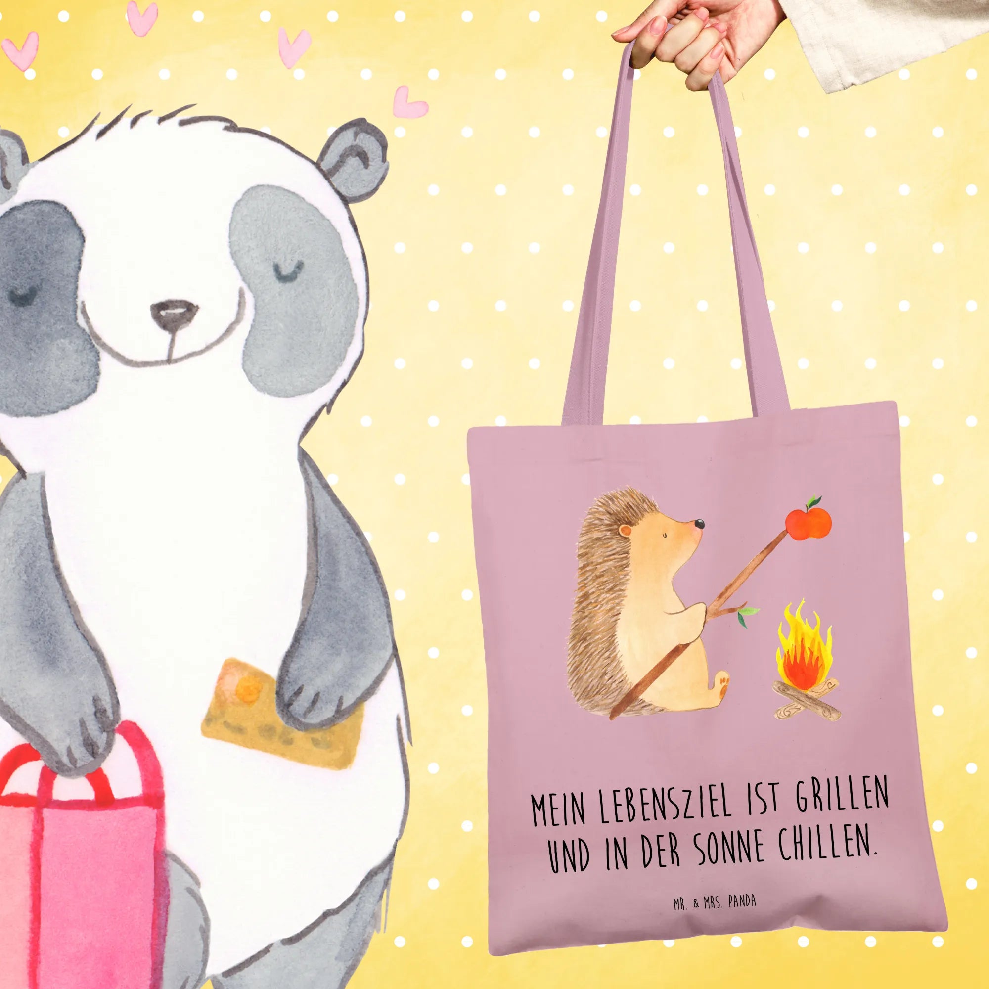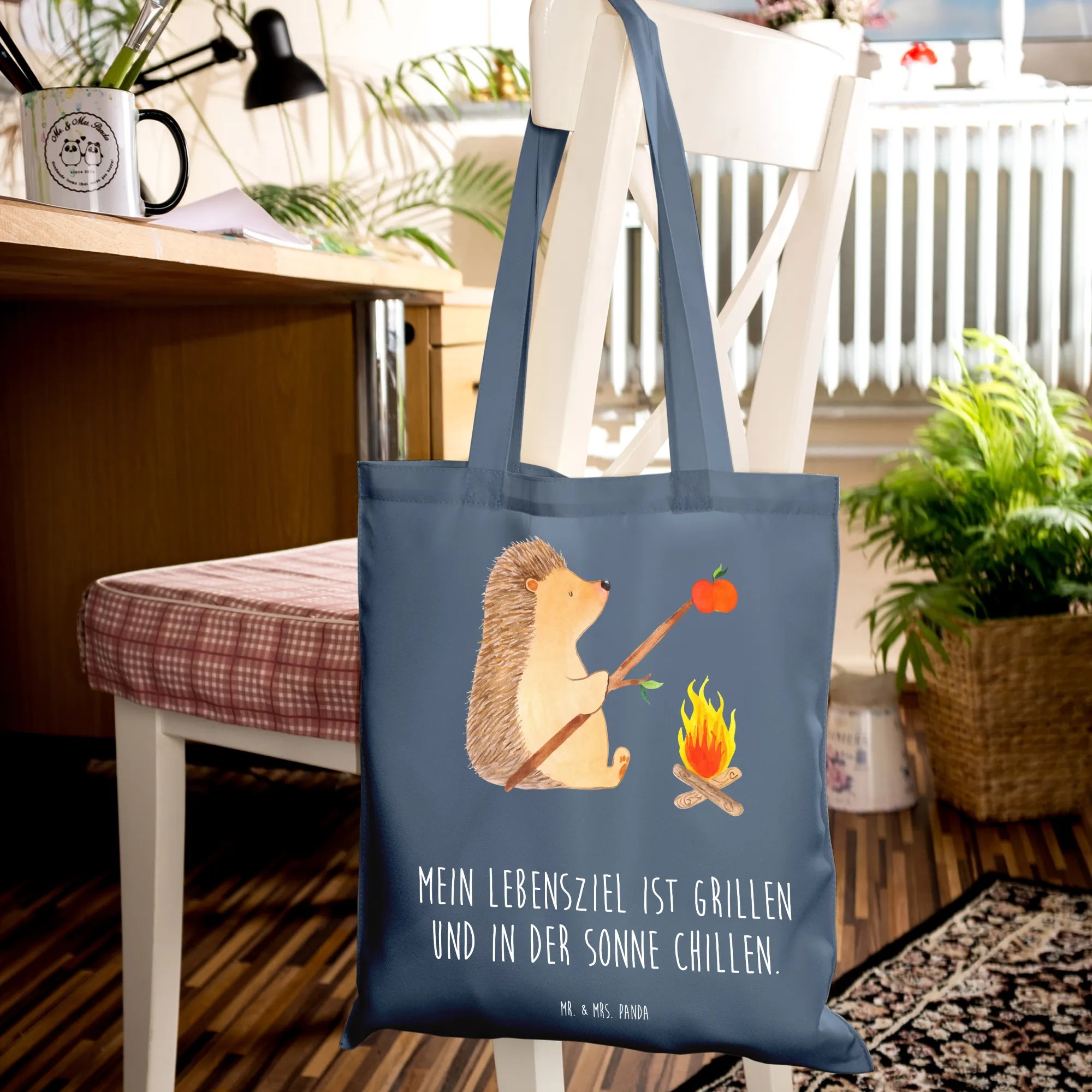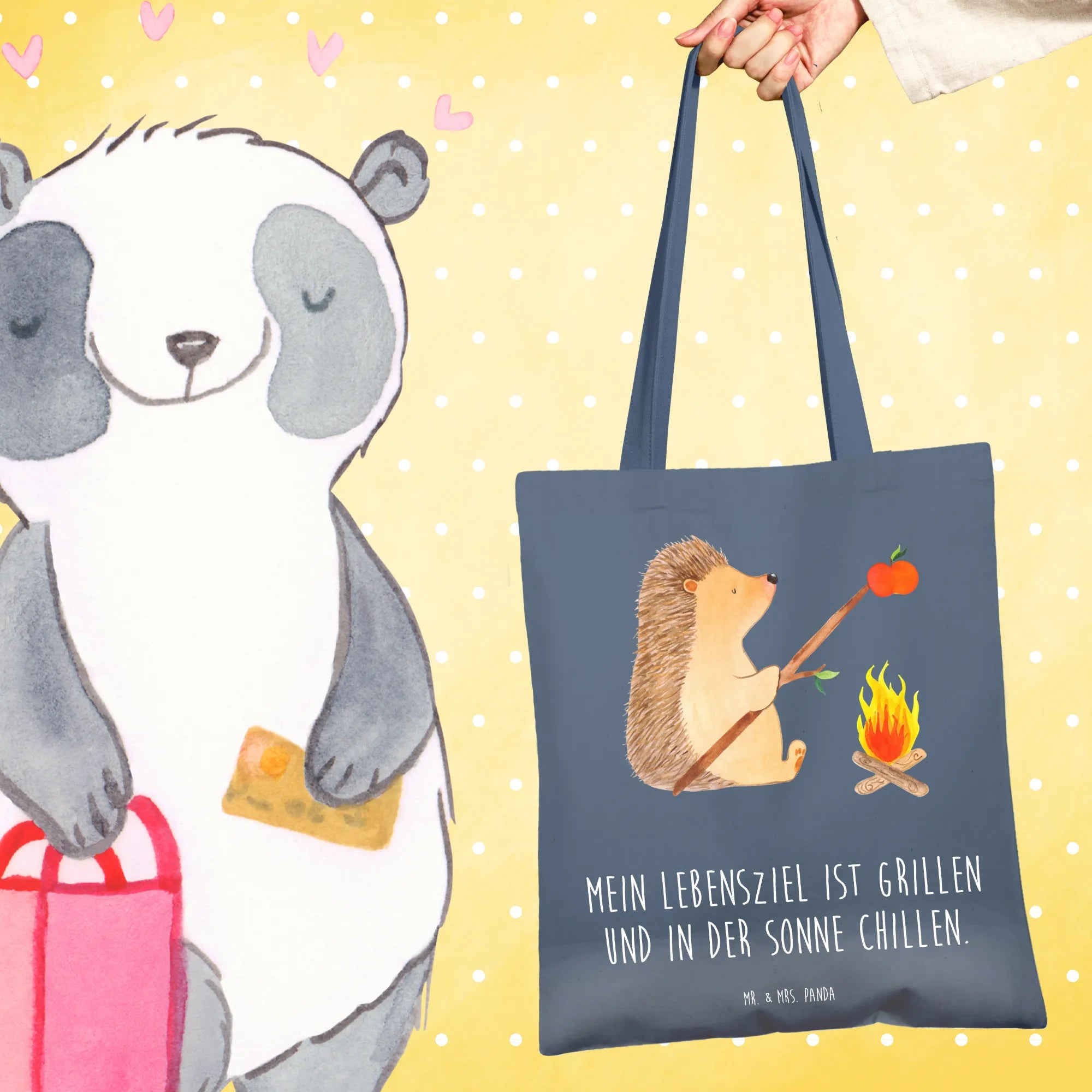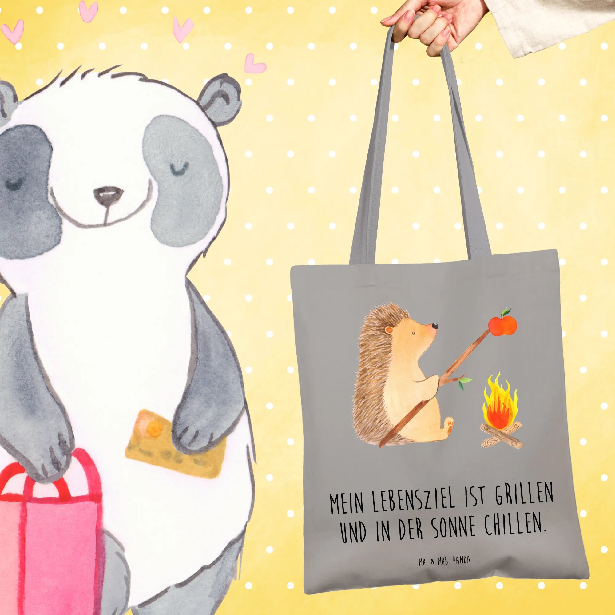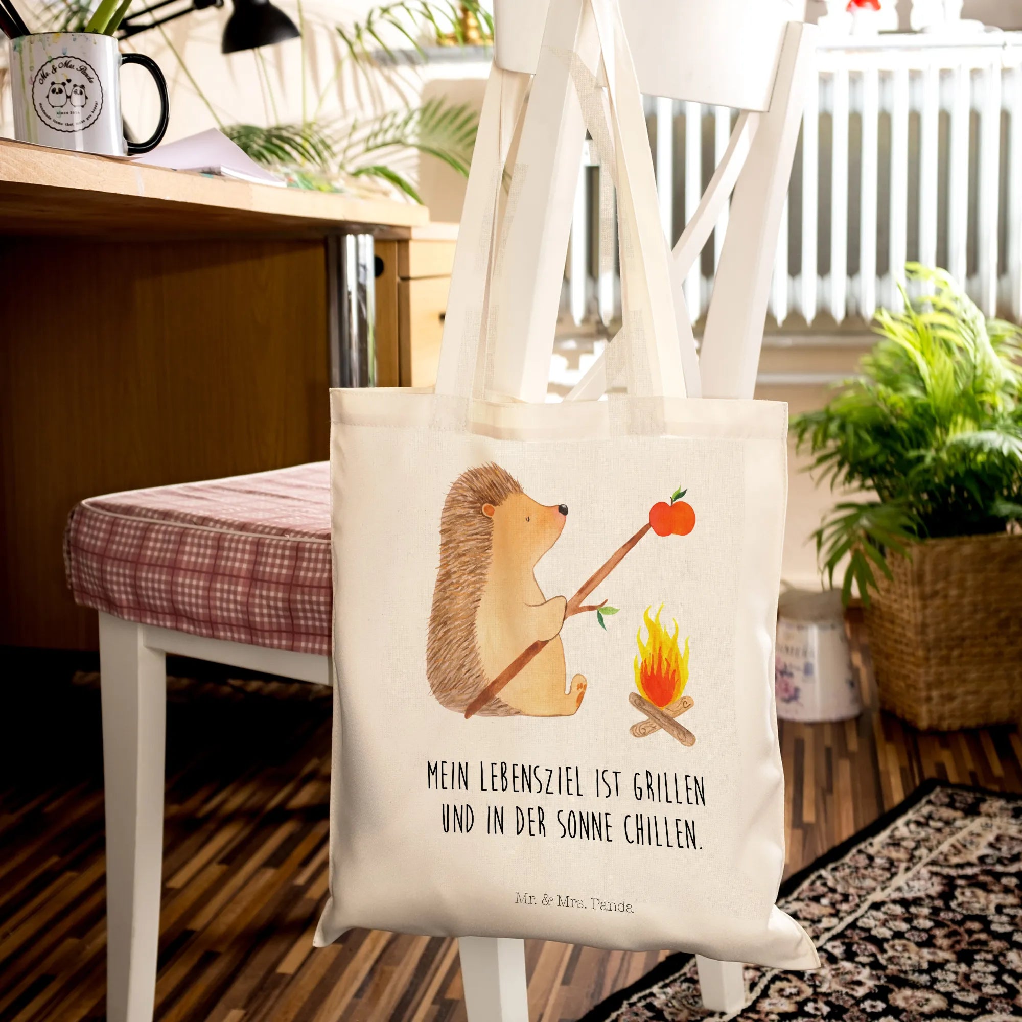 Suchst du das perfekte Geschenk für einen Freund, der die Natur liebt und gerne grillt? Dann ist die Tragetasche "Igel grillt" aus der liebevollen Small World Kollektion von Mr. & Mrs. Panda genau das Richtige!