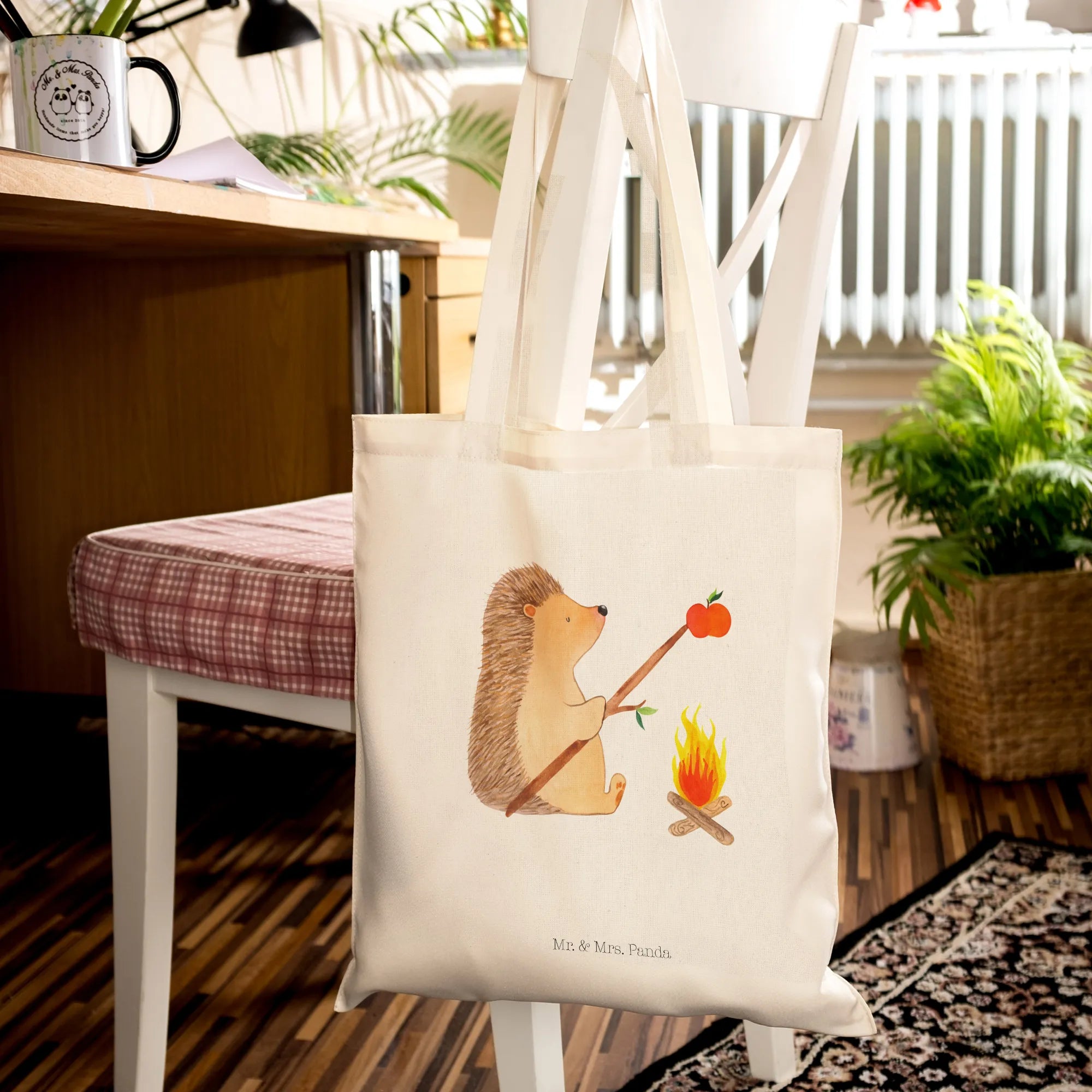 Diese Tragetasche aus hochwertiger, 100% Baumwolle ist nicht nur praktisch, sondern bringt auch gute Laune und ein Lächeln ins Gesicht. Der niedliche Igel, der am Lagerfeuer sitzt und einen Apfel grillt, erinnert uns daran, wie schön die einfachen Dinge im Leben sind. Egal, ob für einen entspannten Tag am Strand, beim Einkaufen oder beim Picknick im Park - diese Tragetasche ist ein treuer Begleiter!