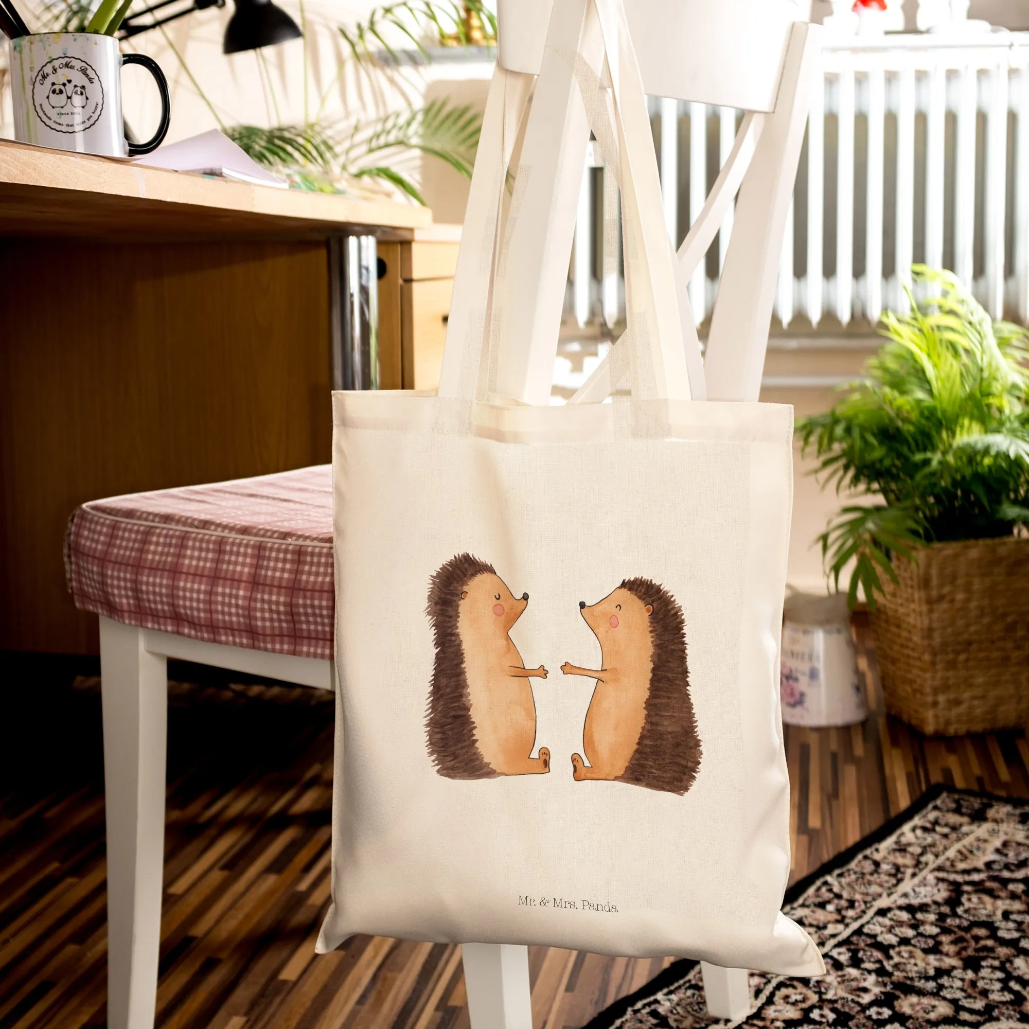 Die wunderschöne Tragetasche mit dem Motiv 'Igel Liebe' aus der Kollektion Liebe von Mr. & Mrs. Panda ist der perfekte Begleiter für Verliebte! Diese Tasche zeigt ein zauberhaftes Bild von zwei sich gegenüberstehenden Igeln, die mit geschlossenen Augen und hochgehobenen Händen Zuneigung ausdrücken. Ihr rosiges Wangenpaar strahlt Wärme und Liebe aus, genau das richtige für alle, die den ganz besonderen Liebesbeweis suchen.