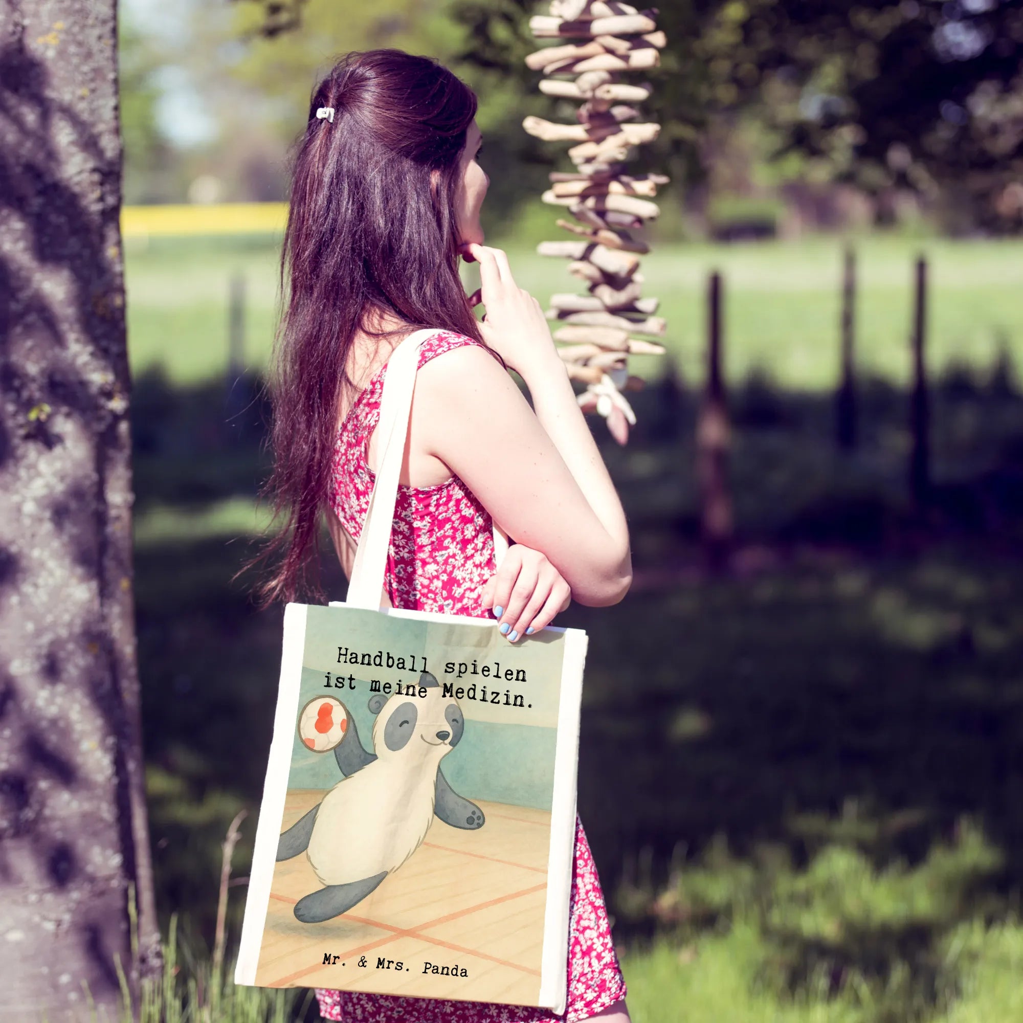 Tragetasche Panda Handball spielen Design - mit Spruch