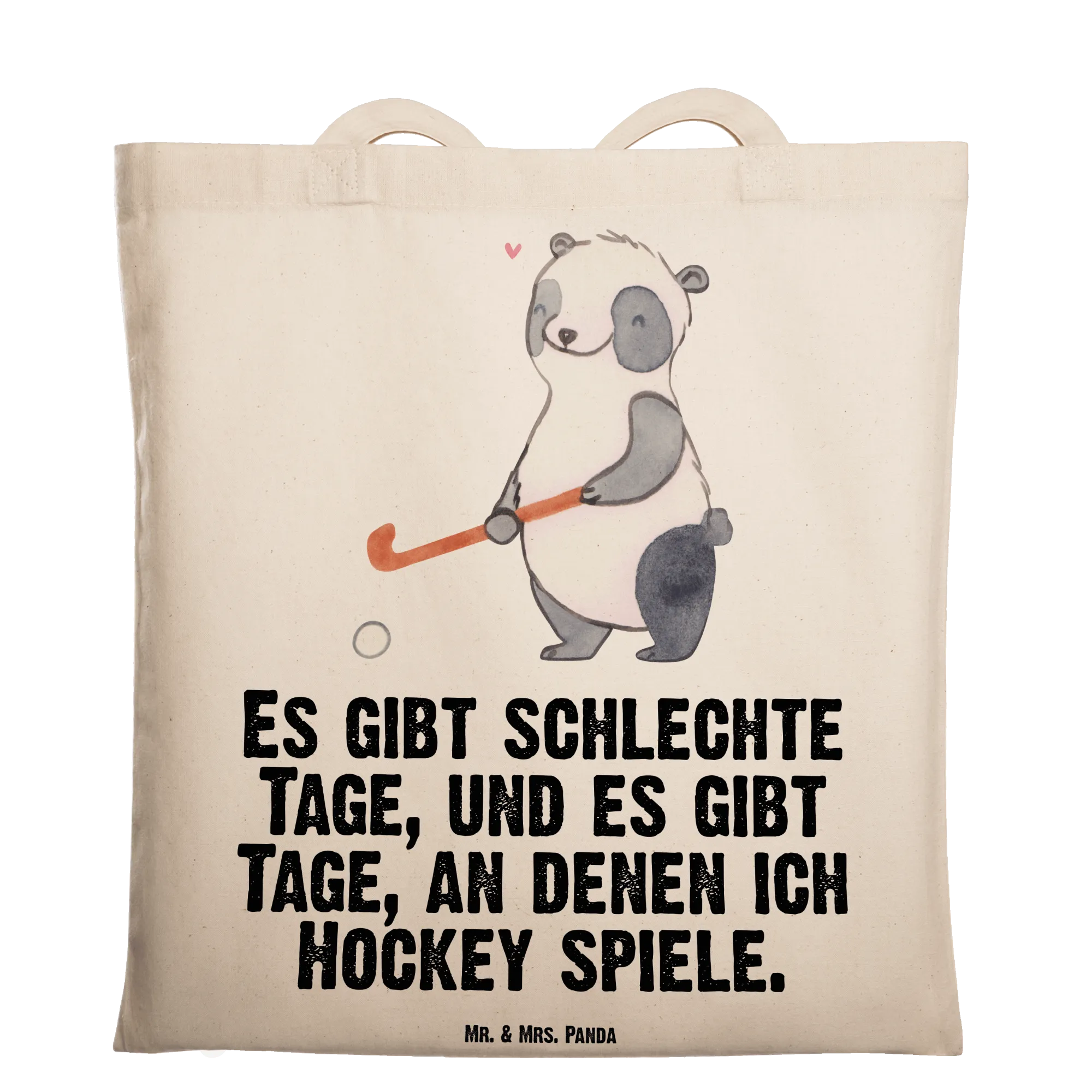 Tragetasche Panda Hockey spielen - mit Spruch - Transparent