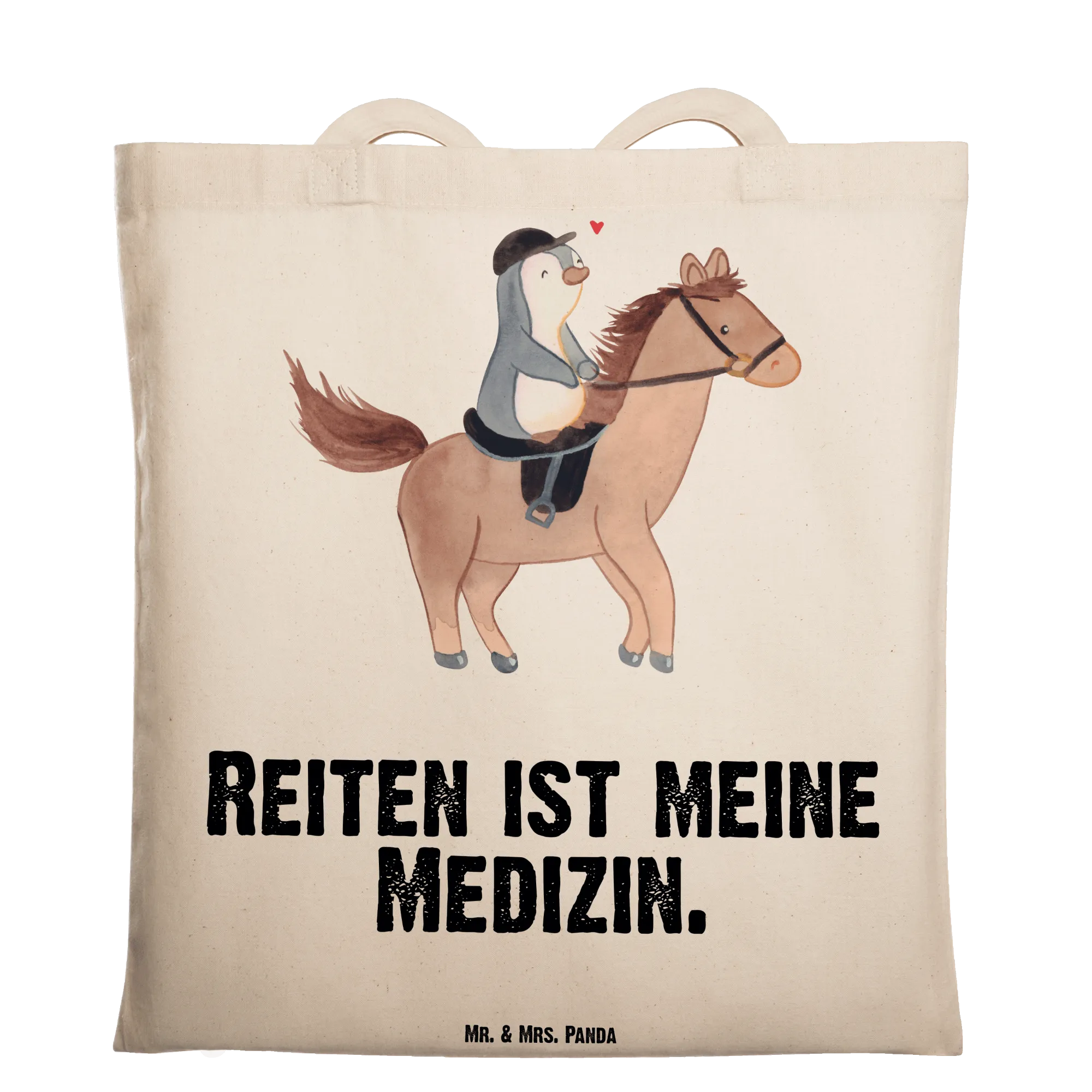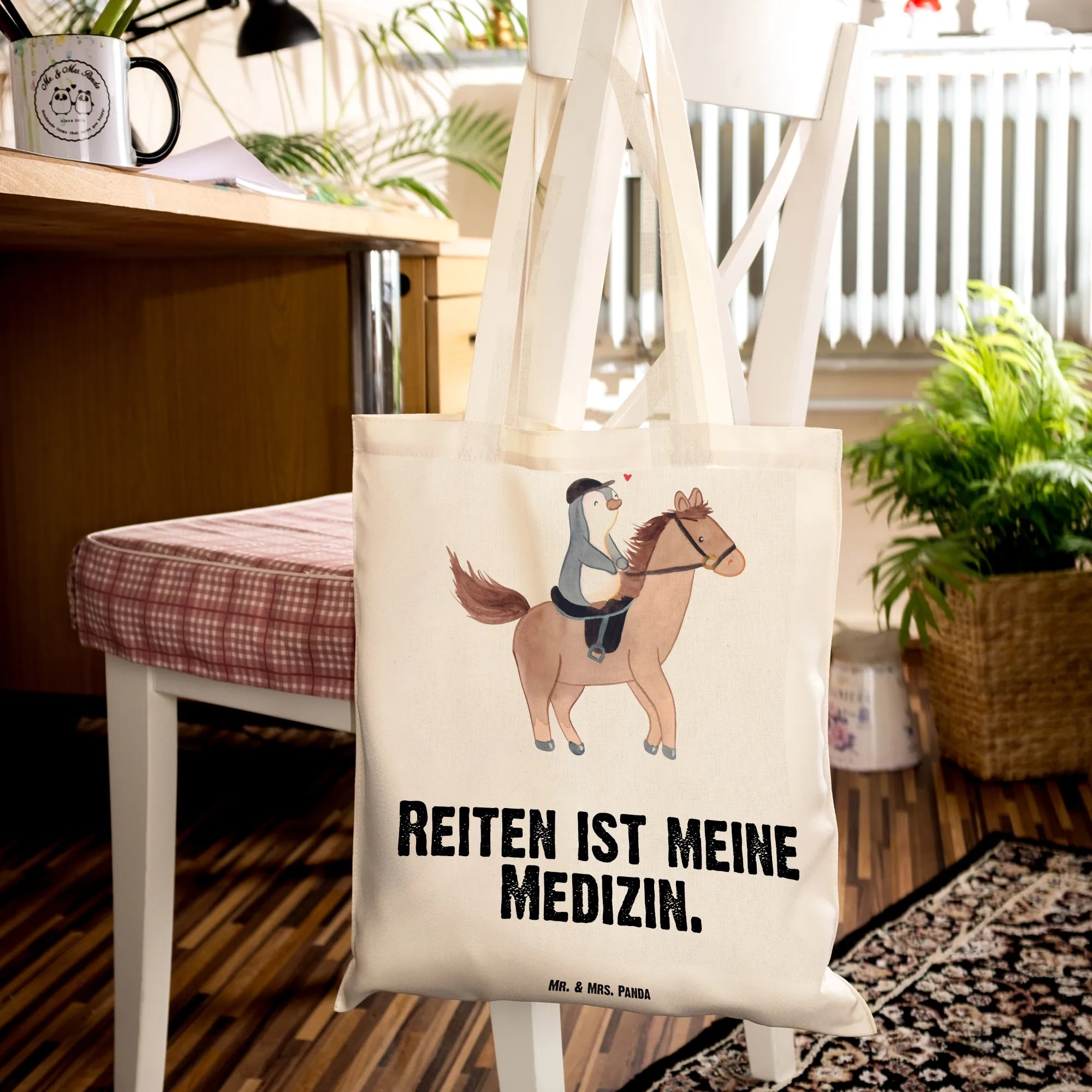 Suchst du nach dem perfekten Geschenk für einen Pferdeliebhaber? Dann ist die Tragetasche "Pferd Reiten Medizin" aus der Kollektion Hobby & Sport von Mr. & Mrs. Panda genau das Richtige für dich!