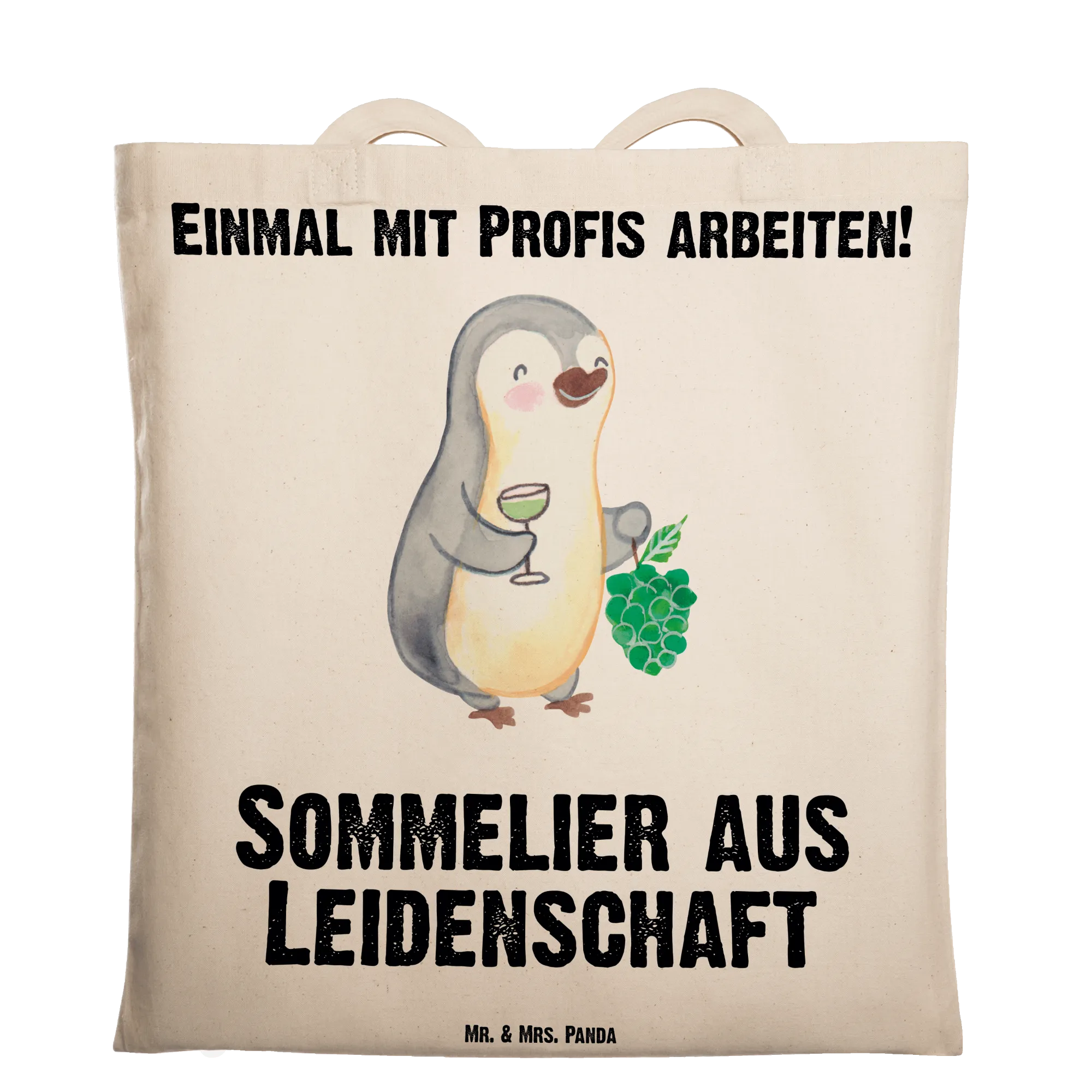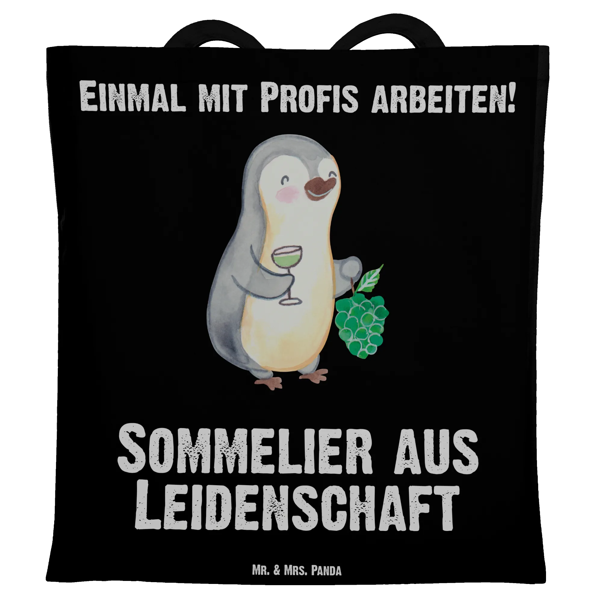 Mr. & Mrs. Panda Sommelier aus Leidenschaft Pinguin Motiv mit Weintrauben und Weinglas