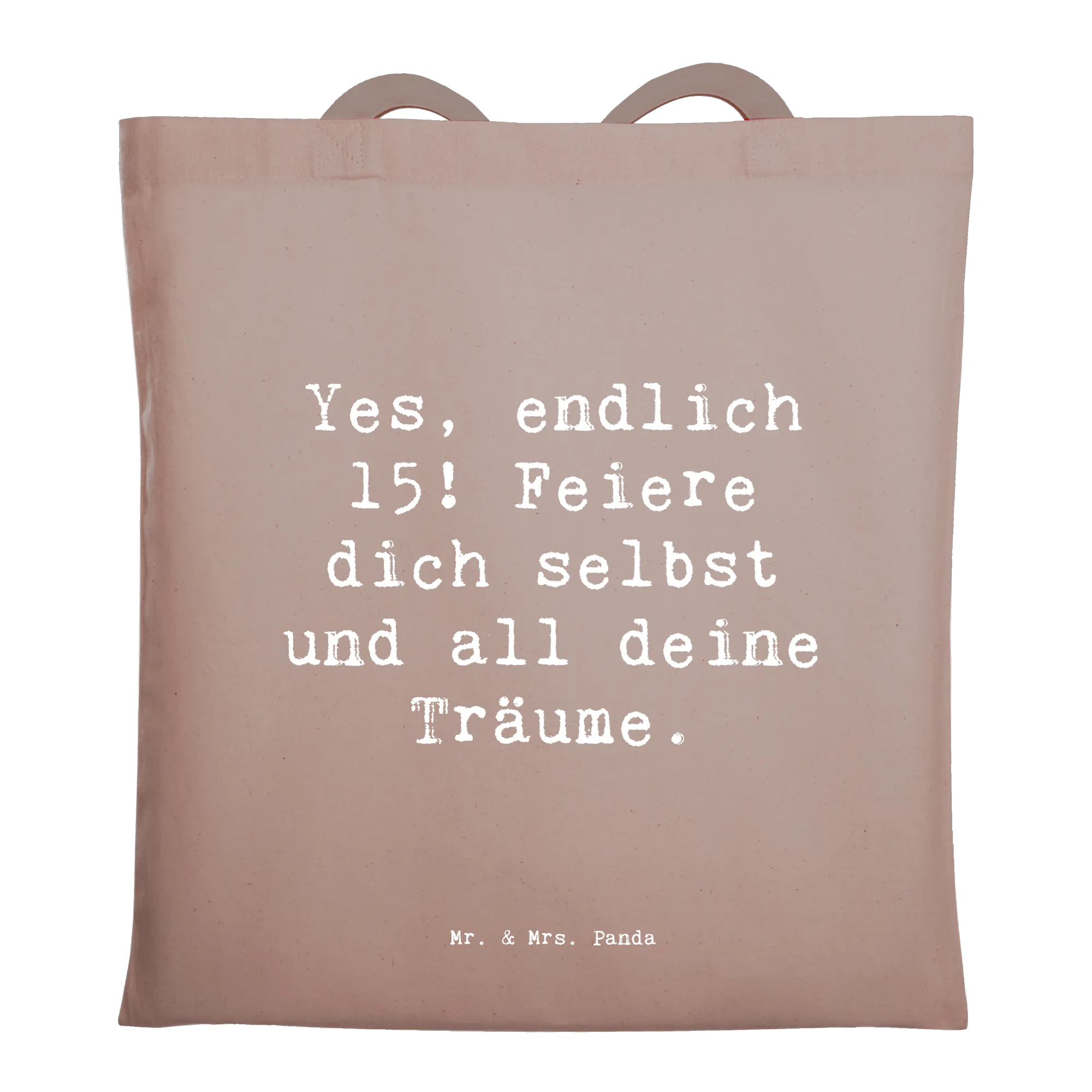 Hey du! Auf der Suche nach dem perfekten Geschenk für einen lebhaften 15. Geburtstag? Dann schau dir diese wunderschöne Tragetasche von Mr. & Mrs. Panda an! Mit dem fröhlichen Slogan "Yes, endlich 15! Feiere dich selbst und all deine Träume." wird sie zum absoluten Hingucker bei jeder Feier. Diese Tragetasche ist nicht nur praktisch, sondern auch super stilvoll und eignet sich perfekt, um all die tollen Geschenke und Überraschungen für den besonderen Tag zu transportieren.