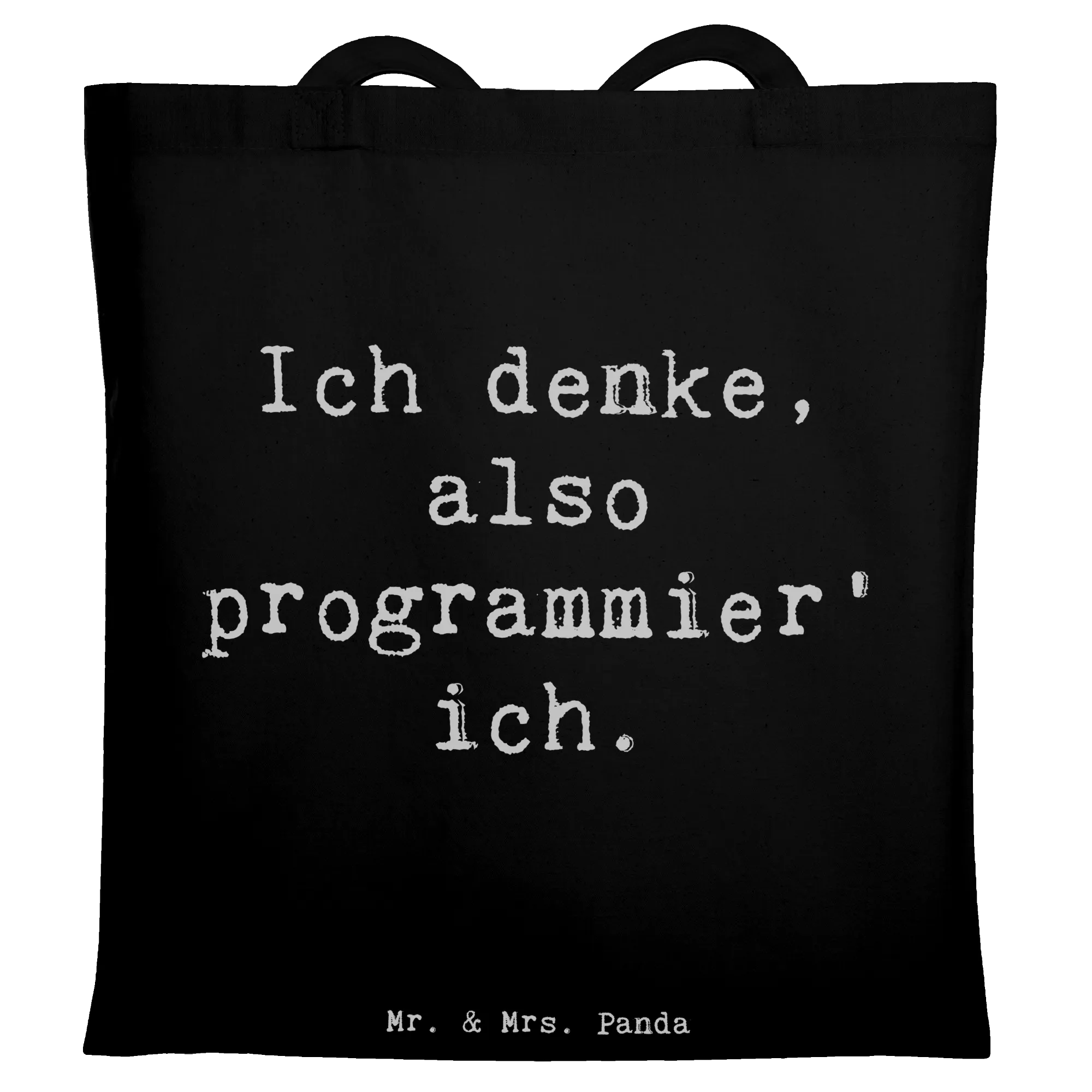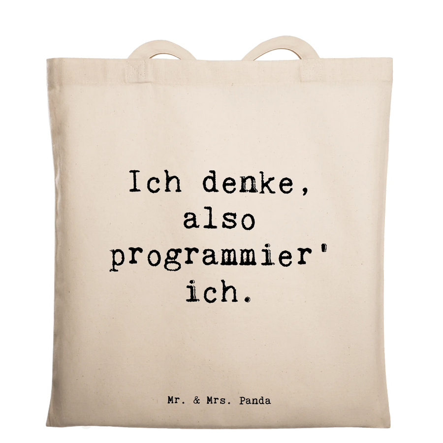 Perfekt für Programmierer & IT-Entwickler: Unsere Mr. & Mrs. Panda Tragetasche mit dem liebenswerten Spruch „Ich denke, also programmier' ich.“ ist das ideale Geschenk für alle, die Softwareentwicklung leben. Ob als Jutebeutel für den Einkauf, Shopper für die Uni oder treuer Begleiter zur Arbeit – diese Tasche passt einfach immer.