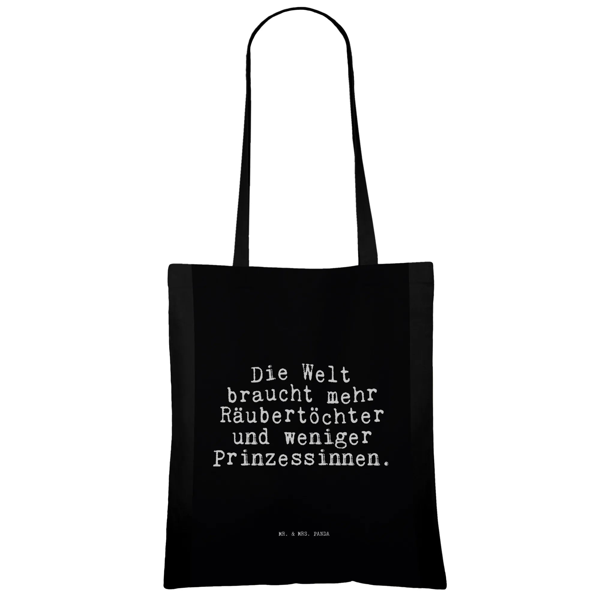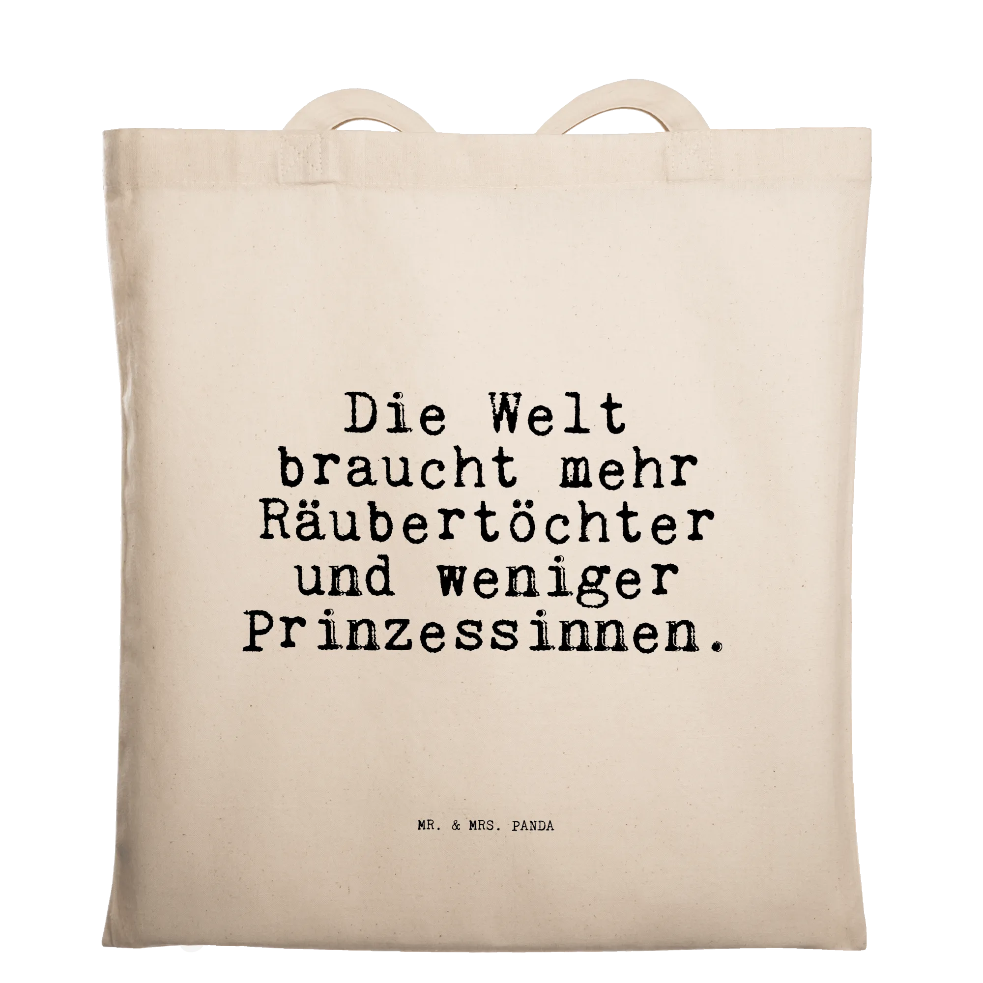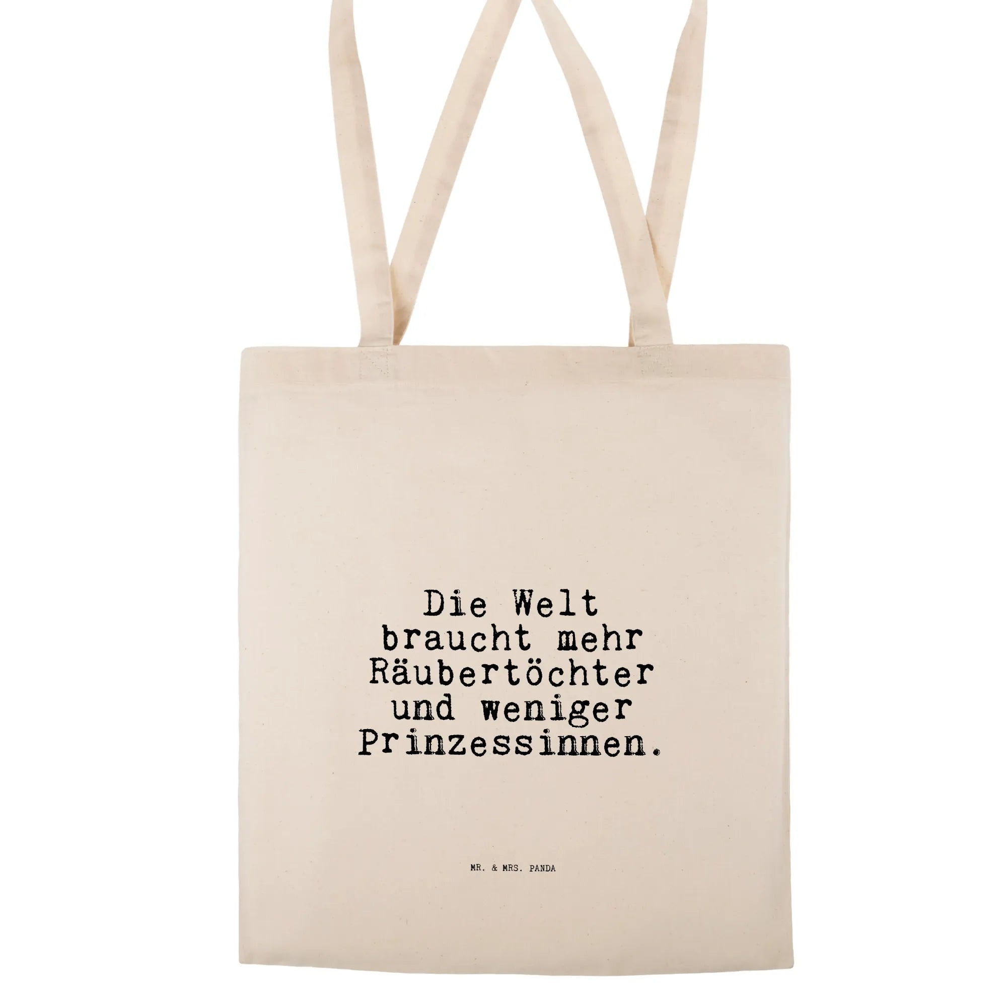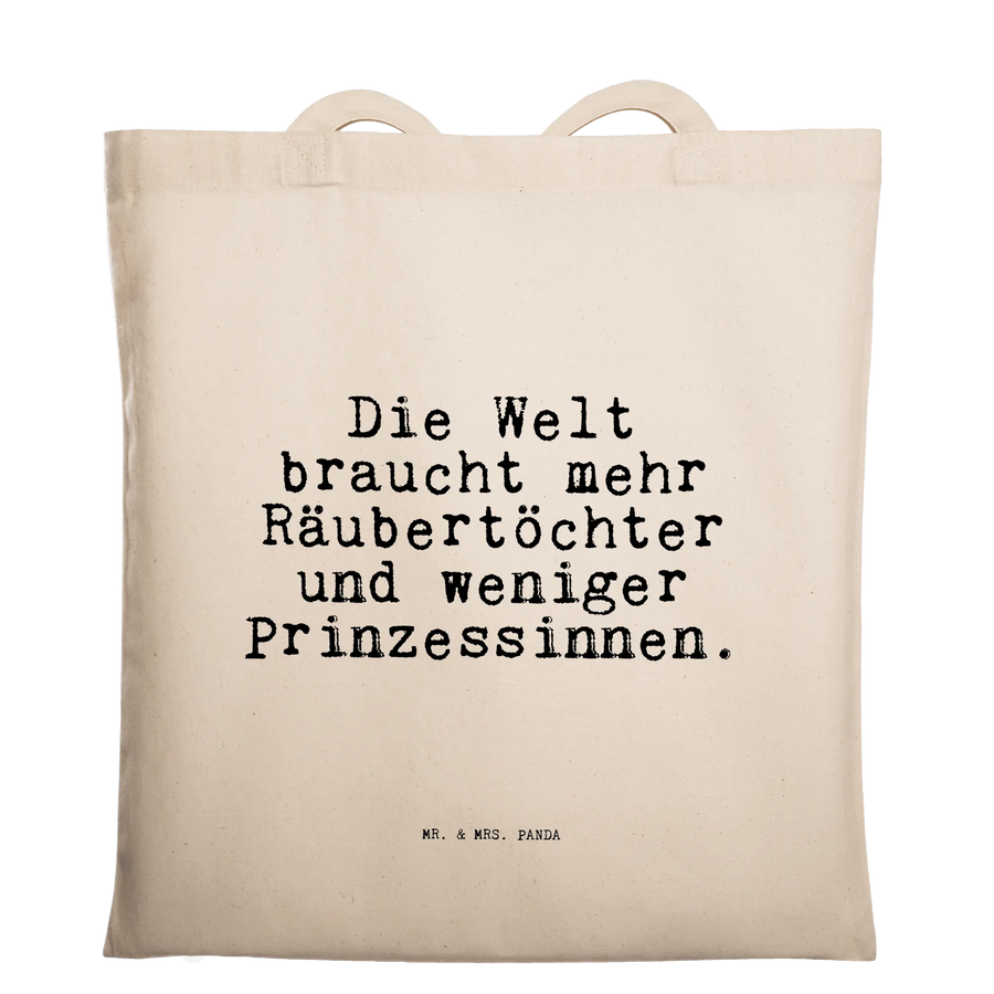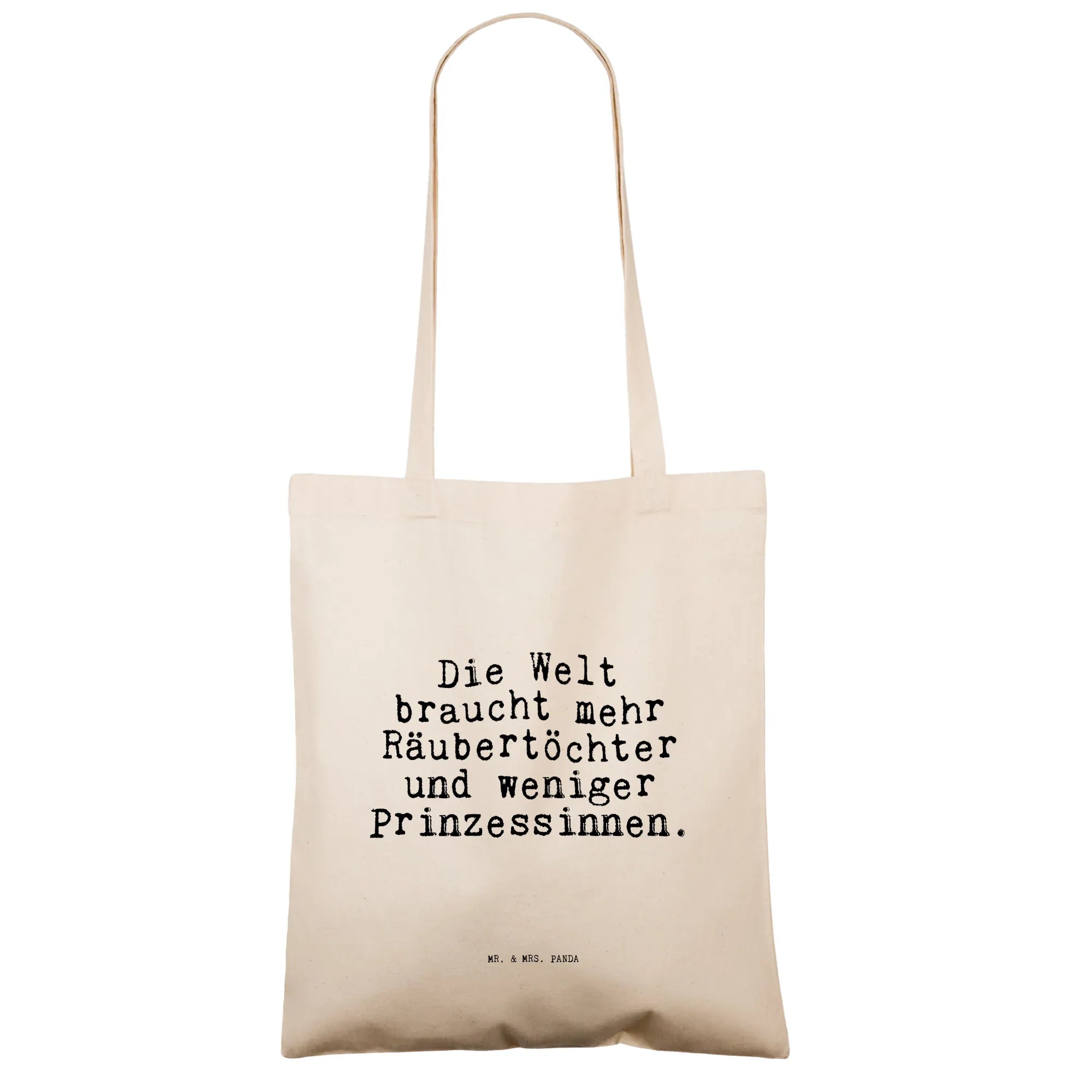 Die wunderschöne Tragetasche von Mr. & Mrs. Panda ist die perfekte Wahl für alle, die das Besondere lieben! Mit dem Spruch "Die Welt braucht mehr Räubertöchter und weniger Prinzessinnen" verleihst du deinem Alltag einen Hauch von Charme und Individualität. Perfekt für Abenteuerlustige und starke Frauen, die sich nicht auf die Rolle der Prinzessin beschränken lassen wollen! Jeder Blick auf diese Tasche wird dich und alle anderen zum Schmunzeln bringen.