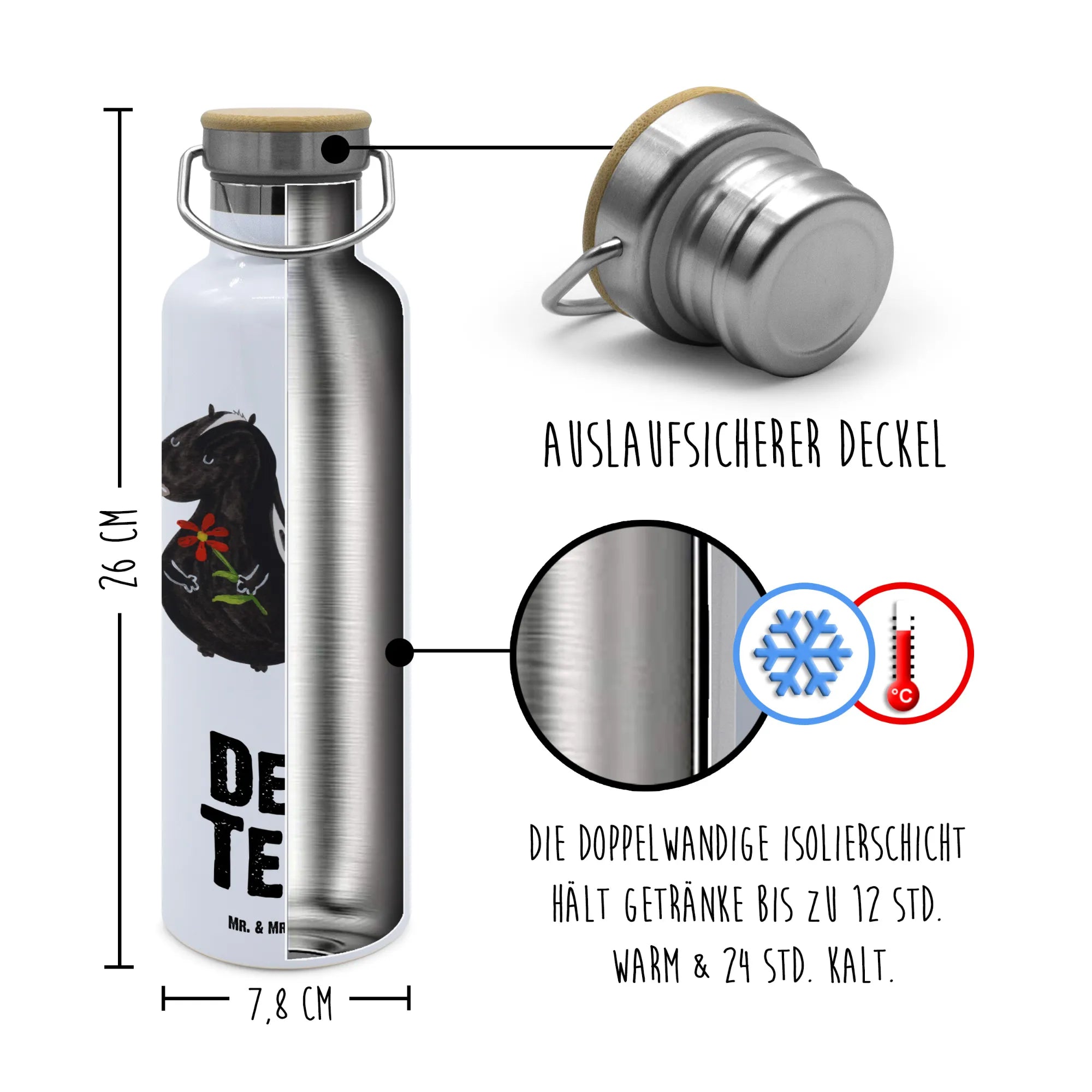 Die personalisierte Trinkflasche von Mr. & Mrs. Panda ist ein absolutes Must-Have für alle, die ihre Getränke stilvoll transportieren möchten. Mit den liebevollen Sprüchen und den süßen Motiven wird jedes Getränk zu einem besonderen Erlebnis. Du kannst sie ganz nach deinen Wünschen personalisieren – sei es mit deinem Namen oder einer speziellen Botschaft. Die Flasche misst 255 mm in der Höhe und hat einen Durchmesser von 78 mm, bei einem Gewicht von 385 g. Sie fasst bis zu 750 ml und besteht aus doppelwandigem Edelstahl sowie qualitativ hochwertigem Kunststoff. Der Deckel aus nachhaltigem Bambus rundet das elegante Design ab. Ob heiße Schokolade im Winter oder spritziges Mineralwasser im Sommer, diese Flasche hält deine Getränke perfekt temperiert. Außerdem ist sie robust und leicht – der ideale Begleiter für die Schule, Uni, das Büro oder beim Wandern. Beachte bitte, dass sie nicht spülmaschinenfest ist und eine sanfte Handwäsche empfohlen wird, um die Langlebigkeit zu garantieren. Mit dieser Flasche bist du immer bestens ausgestattet!