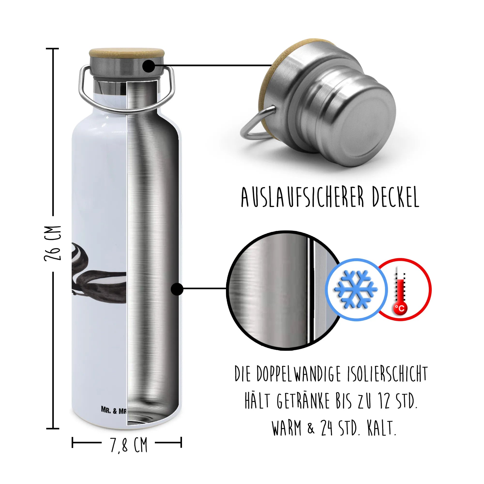 Die Trinkflasche von Mr. & Mrs. Panda ist das perfekte Accessoire für alle, die Wert auf Stil und Funktion legen! Ihre Abmessungen von 255 mm x 78 mm und das Volumen von 750 ml machen sie zum idealen Begleiter für alle Abenteuer. Hergestellt aus doppelwandigem Edelstahl hält sie deine heißen und kalten Getränke lange frisch. Der hübsche Bambusdeckel setzt einen tollen Akzent. Egal, ob du deinen Kaffee zur Arbeit mitnehmen möchtest oder Erfrischungsgetränke für einen Ausflug planst, diese Flasche ist die Antwort auf all deine Bedürfnisse. Ihre bezaubernden Sprüche und Designs bringen jeden dazu, ein Lächeln zu tragen. Bitte verwende bei der Pflege nur eine sanfte Handwäsche, um die Schönheit deiner Flasche zu bewahren.