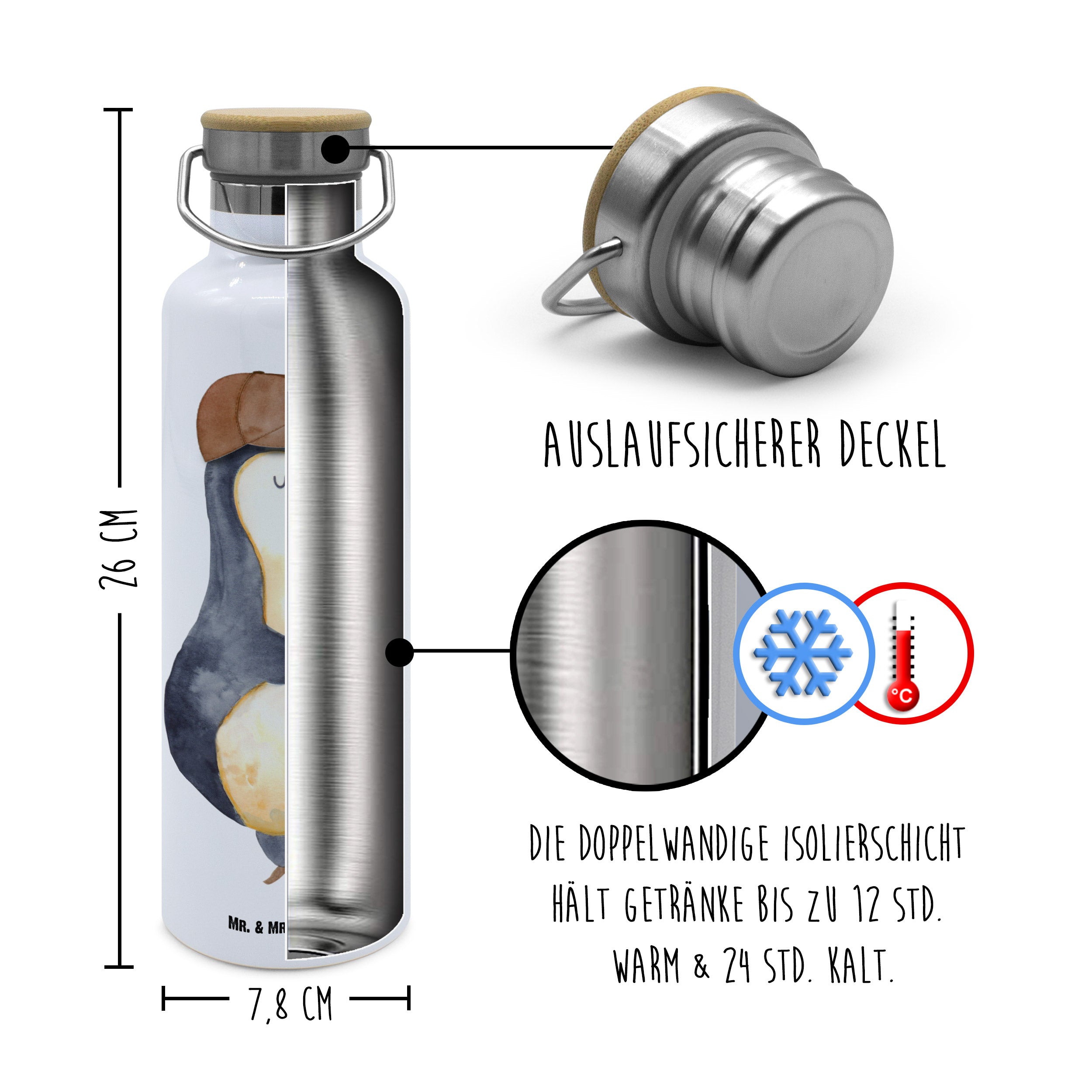 Die Trinkflasche von Mr. & Mrs. Panda ist das perfekte Accessoire für alle, die Wert auf Stil und Funktion legen! Ihre Abmessungen von 255 mm x 78 mm und das Volumen von 750 ml machen sie zum idealen Begleiter für alle Abenteuer. Hergestellt aus doppelwandigem Edelstahl hält sie deine heißen und kalten Getränke lange frisch. Der hübsche Bambusdeckel setzt einen tollen Akzent. Egal, ob du deinen Kaffee zur Arbeit mitnehmen möchtest oder Erfrischungsgetränke für einen Ausflug planst, diese Flasche ist die Antwort auf all deine Bedürfnisse. Ihre bezaubernden Sprüche und Designs bringen jeden dazu, ein Lächeln zu tragen. Bitte verwende bei der Pflege nur eine sanfte Handwäsche, um die Schönheit deiner Flasche zu bewahren.