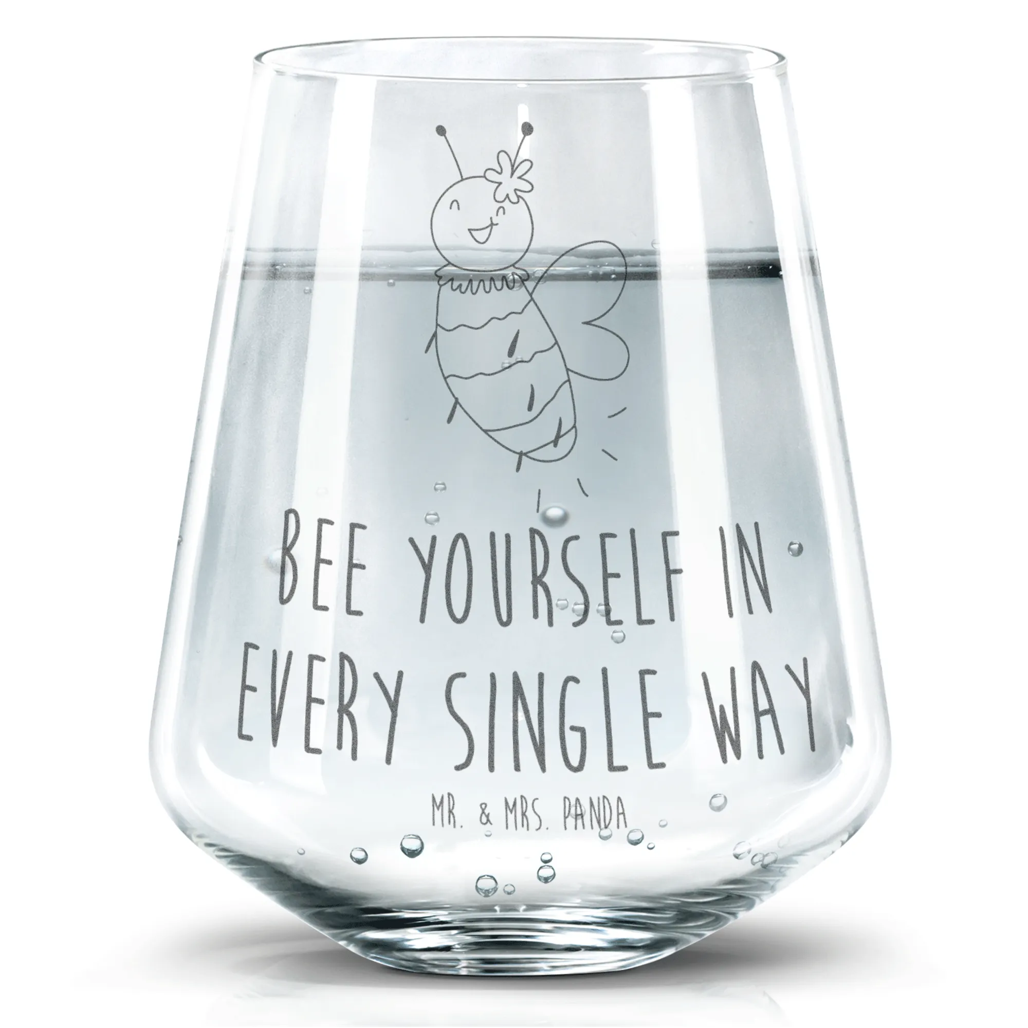 Egal ob zum Geburtstag, zur Einweihungsfeier oder einfach nur so, dieses Trinkglas ist ein liebevolles Geschenk für jeden Anlass. Die Bienen-Kollektion von Mr. & Mrs. Panda feiert die Süße des Lebens und verbreitet gute Laune.