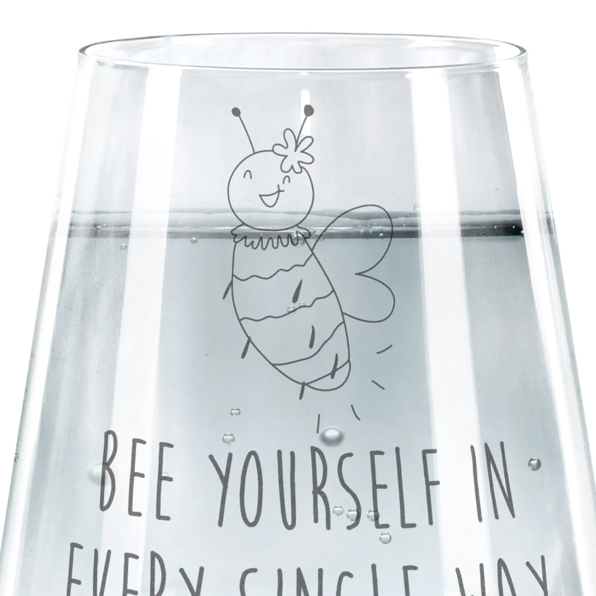 Das wunderschöne Trinkglas mit dem niedlichen Bienen-Blumen-Motiv von Mr. & Mrs. Panda ist die perfekte Wahl für alle, die fröhliche und praktische Geschenke suchen. Mit seiner hochwertigen Lasergravur, die durch Erhitzung ein mattes Finish erzeugt, kombiniert es Stil und Funktionalität.