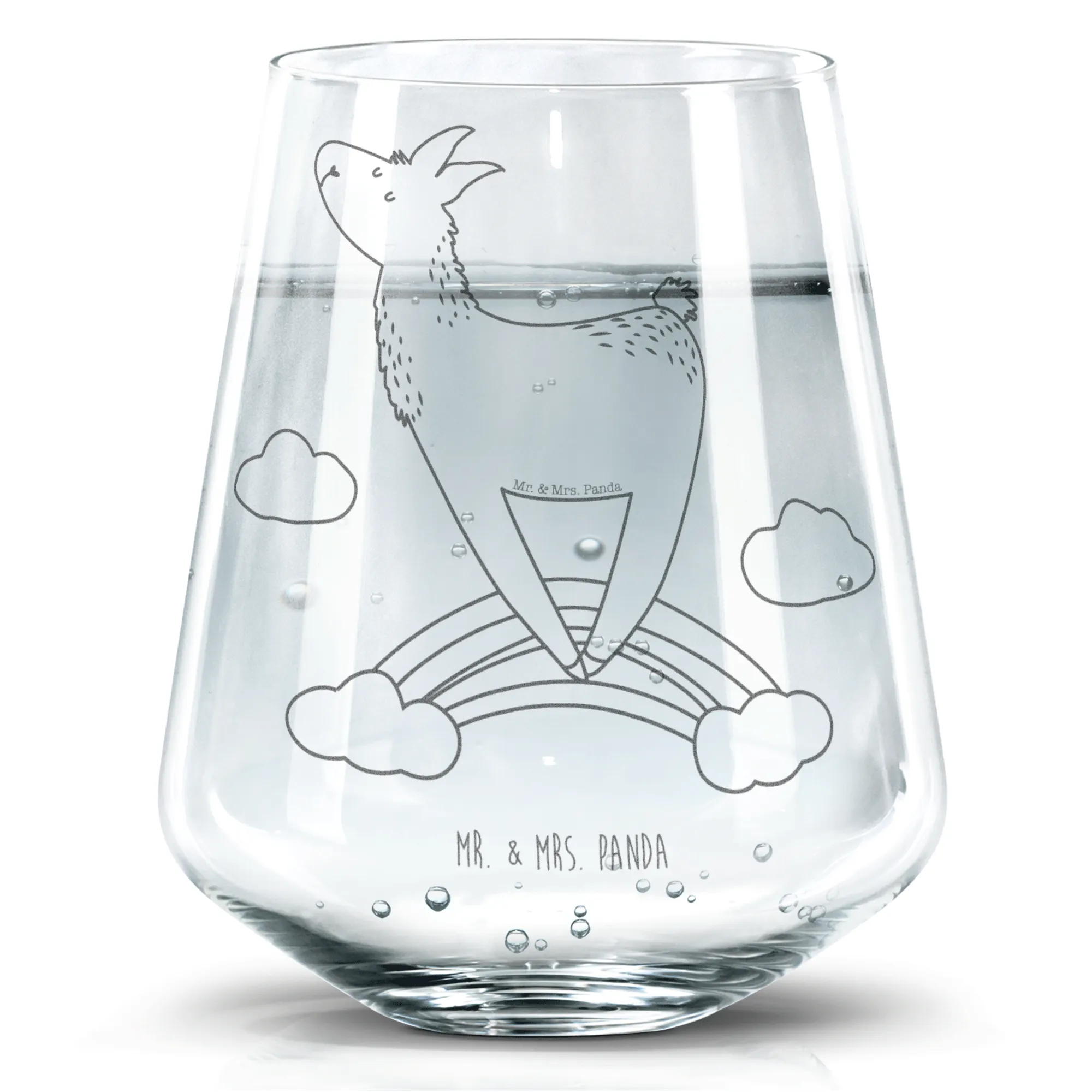 Entdecke unser wunderschönes Trinkglas mit dem süßen Lama-Regenbogen-Motiv aus der Lama-Kollektion von Mr. & Mrs. Panda! Dieses Trinkglas ist der perfekte Begleiter für jeden Anlass. Ob für ein erfrischendes Wasser, saftigen Orangensaft oder leckere Smoothies – unser robustes Glas mit der Höhe von 103 mm und einem Durchmesser von 88 mm bietet ausreichend Platz für 400 ml deiner Lieblingsgetränke. Das bezaubernde Lama-Motiv, das fröhlich über einen Regenbogen hüpft, zaubert jedem ein Lächeln ins Gesicht und bringt einen Hauch von Coolness in deinen Alltag.