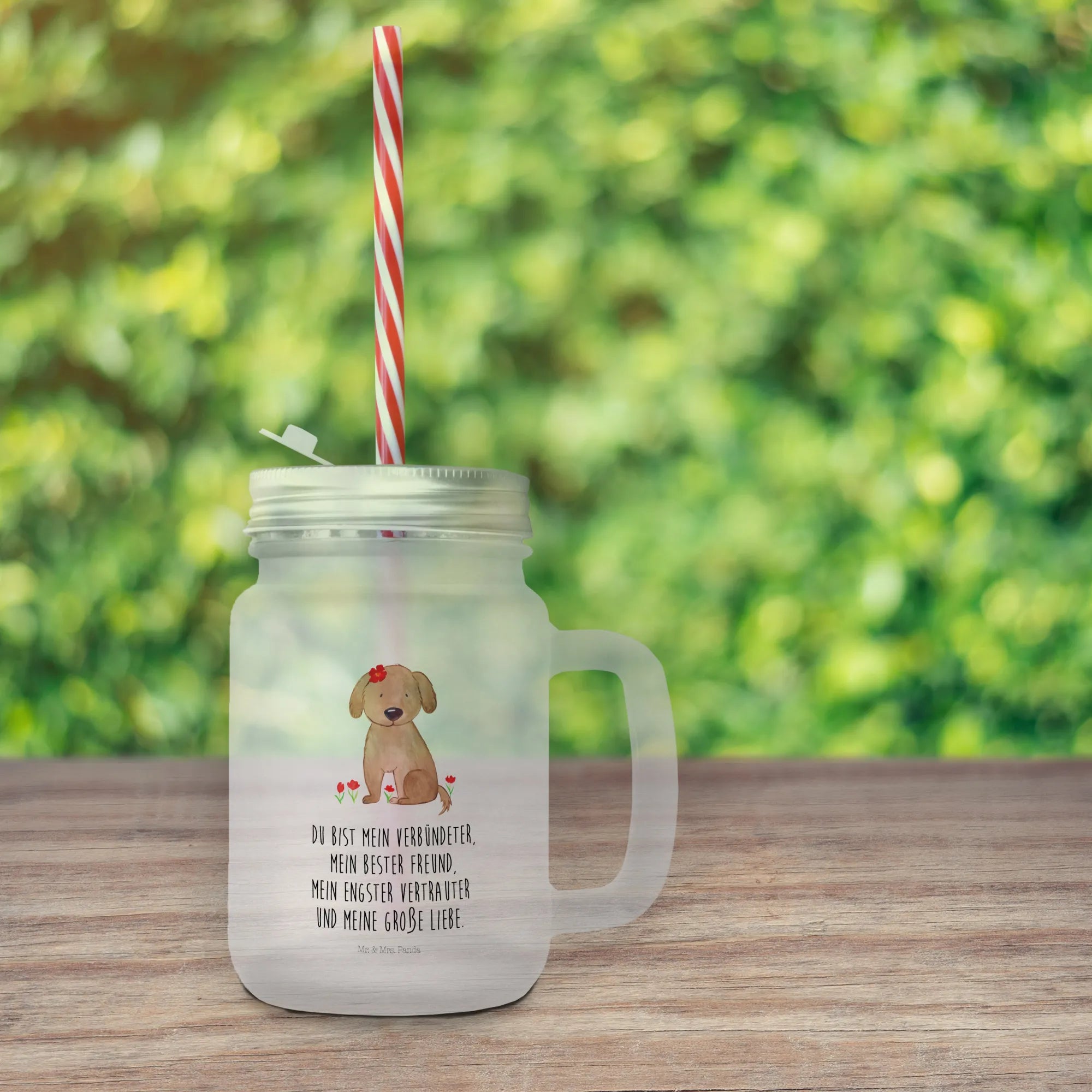 Das Trinkglas Mason Jar mit dem süßen Hundemotiv „Hundedame“ von Mr. & Mrs. Panda ist das perfekte Geschenk für alle Hundeliebhaber! Ob zum Geburtstag, zu einem Hundestammtisch oder einfach als kleine Aufmerksamkeit für einen lieben Freund - dieses Glas wird mit Sicherheit ein Lächeln auf das Gesicht des Beschenkten zaubern.