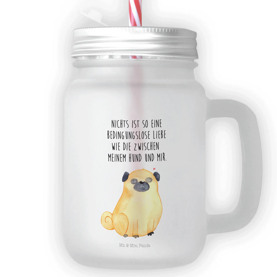Du bist auf der Suche nach dem perfekten Geschenk für einen Hundeliebhaber oder vielleicht sogar für dich selbst? Dann ist unser charmantes Trinkglas Mason Jar mit dem niedlichen Mops-Motiv aus der Hunde Kollektion von Mr. & Mrs. Panda genau das richtige für dich! Dieses Trinkglas ist nicht nur ein optisches Highlight, sondern auch unglaublich praktisch. Es eignet sich hervorragend für erfrischende Kaltgetränke, sei es für selbstgemachte Cocktails, Limonaden oder einfach nur für dein Lieblingseistee.