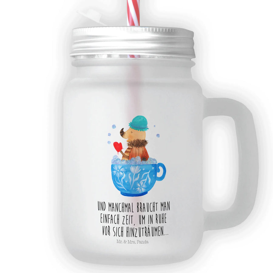 Unser edles Trinkglas Mason Jar von Mr. & Mrs. Panda bringt Sommer, Stil und Funktion in dein Zuhause. Dieses Mason Jar ist bedruckt mit liebevollen Sprüchen und niedlichen Motiven von Mr. & Mrs. Panda und ist nicht personalisierbar – dafür aber ein echter Hingucker. Das Trinkglas verfügt über einen praktischen Henkel, einen silberfarbenen Schraubdeckel und einen robusten, gestreiften Mehrweg-Trinkhalm, den du wiederverwenden kannst. Gefertigt aus satiniertem, dickwandigem Premiumglas ist das Glas besonders kratzfest und fühlt sich edel matt an. Maße: 130 mm x 80 mm, Durchmesser: 80 mm, Gewicht: 415 g. Der metallene Deckel schützt dein Getränk vor Insekten, Pollen und Schmutz – perfekt für Picknick, Balkon oder Garten. Dank der matten Oberfläche kommt das Motiv wunderbar zur Geltung; je nach Getränk wird das Motiv mit einer anderen Unterfarbe betont, was für einen tollen Effekt sorgt. Ideal für Kaltgetränke jeder Art: Cocktails, selbstgemachte Limonaden oder Eistees schmecken daraus besonders gut. Pflegehinweise: Zur schonenden Reinigung empfehlen wir sanfte Reinigungsmittel und Handwäsche. Besonderheiten: inklusive gestreiftem Mehrwegstrohhalm und Schraubdeckel. Mit diesem Trinkglas Mason Jar hast du ein praktisches, wiederverwendbares und zugleich stylishes Glas für heiße Sommermomente.