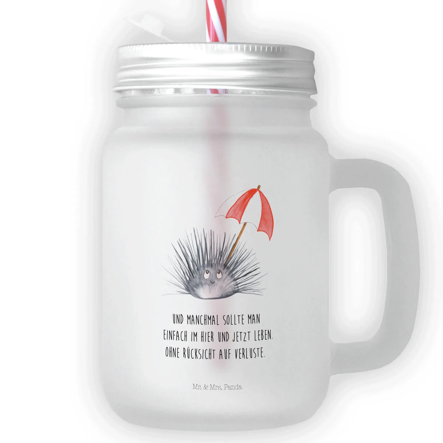 Das edle Trinkglas Mason Jar mit dem zauberhaften Seeigel-Motiv von Mr. & Mrs. Panda ist das perfekte Geschenk für jeden, der die Schönheit und die Leichtigkeit des Lebens liebt. Ob für entspannte Sommerabende im Garten, chillige Picknicks am See oder als Deko für die nächste Sommerparty – dieses Glas zieht alle Blicke auf sich!