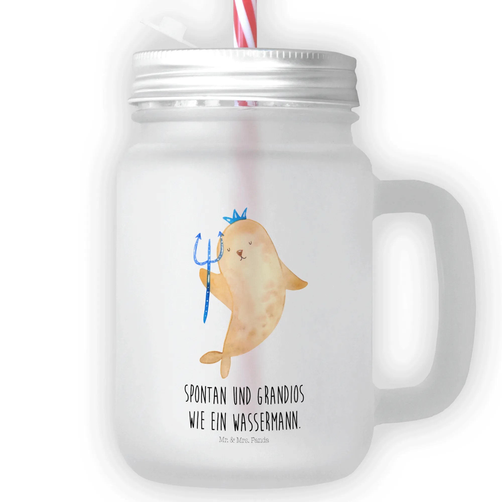 Entdecke das bezaubernde Trinkglas Mason Jar mit dem geheimnisvollen Motiv des Wassermanns von Mr. & Mrs. Panda. Dieses stilvolle Glas ist nicht nur ein praktisches Accessoire für deine sommerlichen Getränke, sondern auch ein echter Hingucker auf jeder Feier.